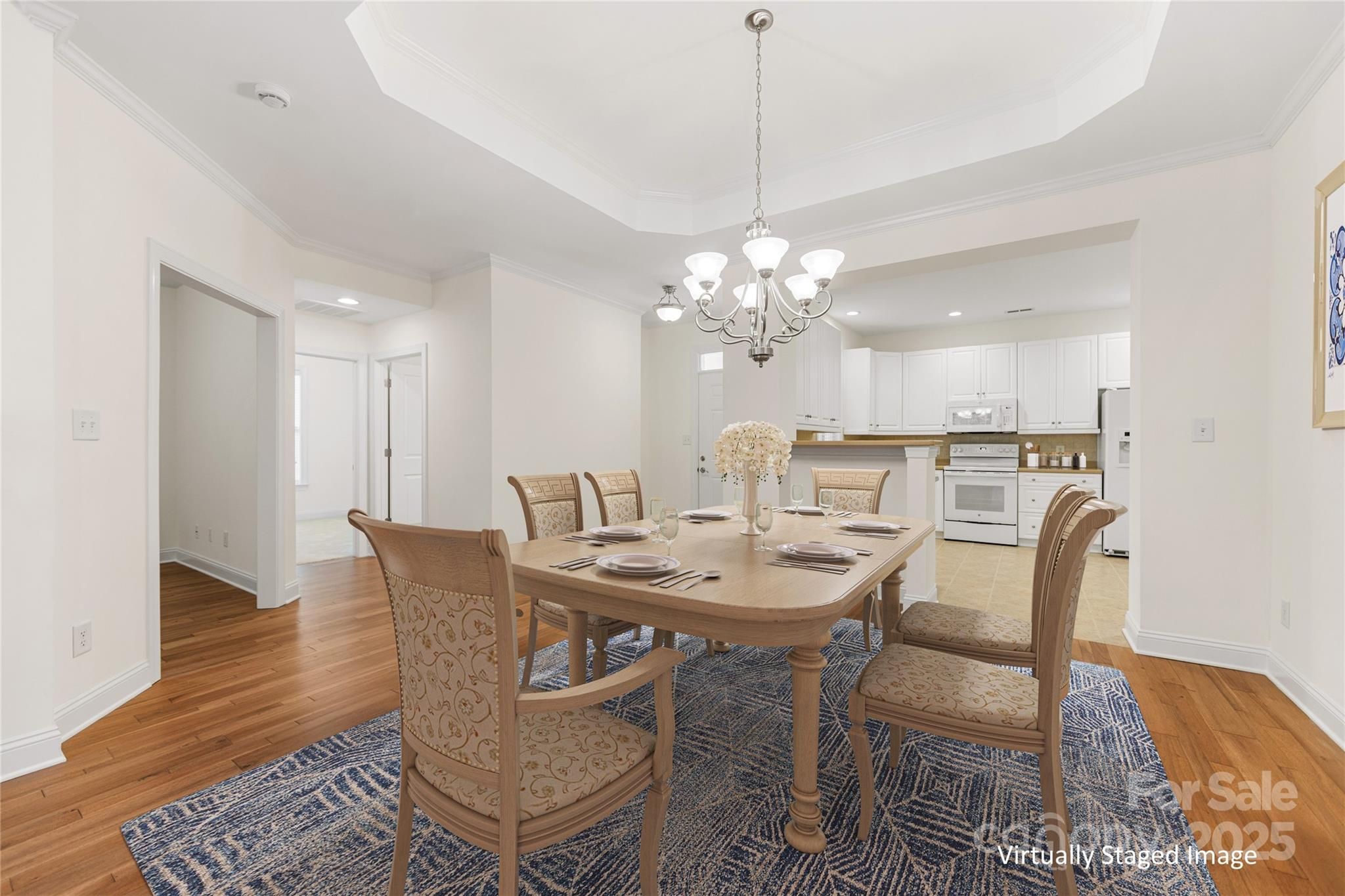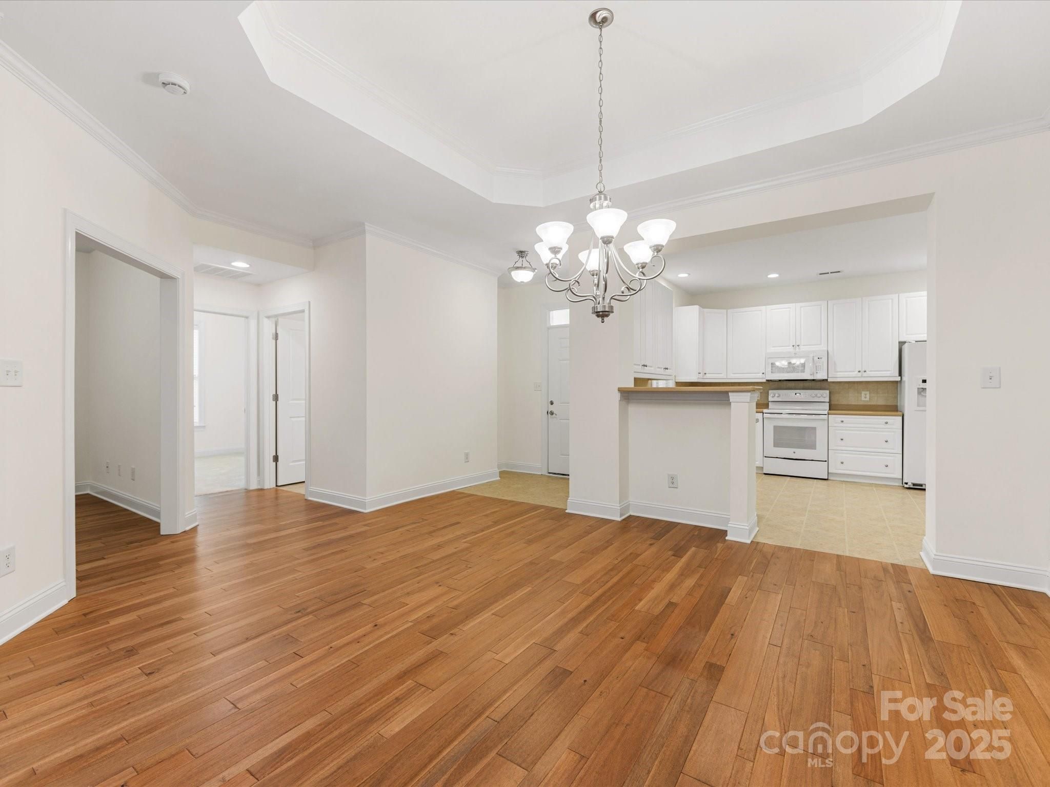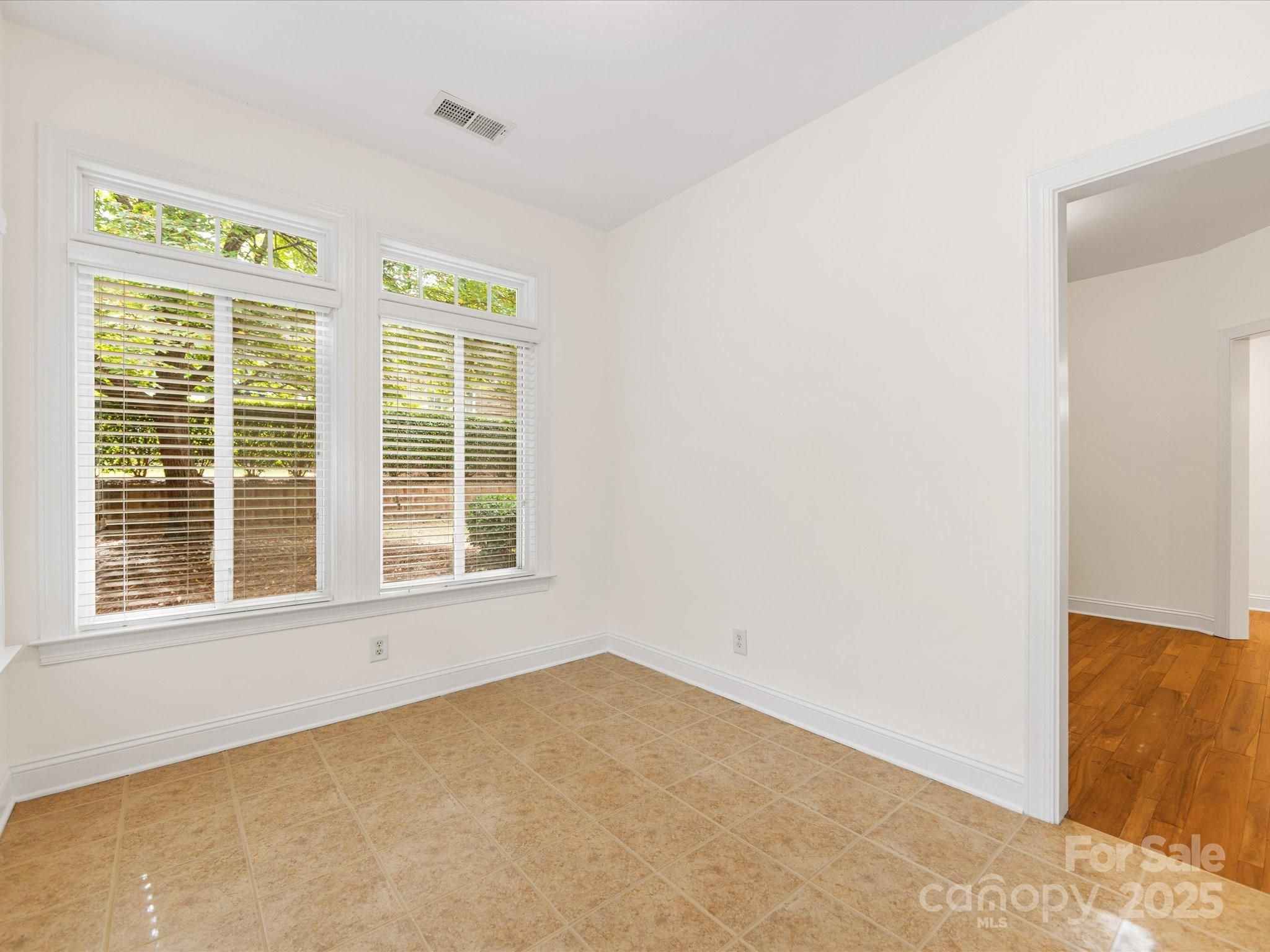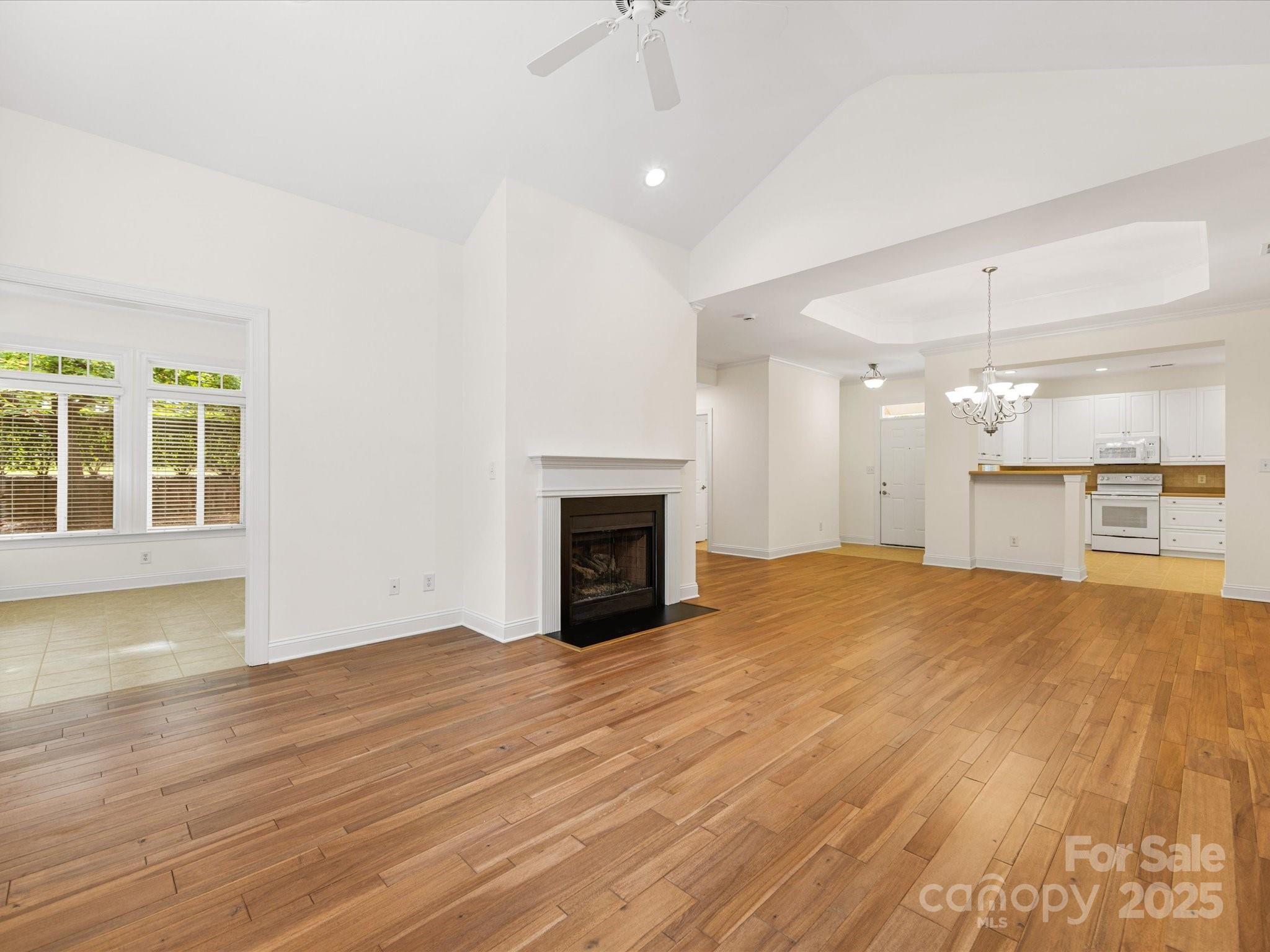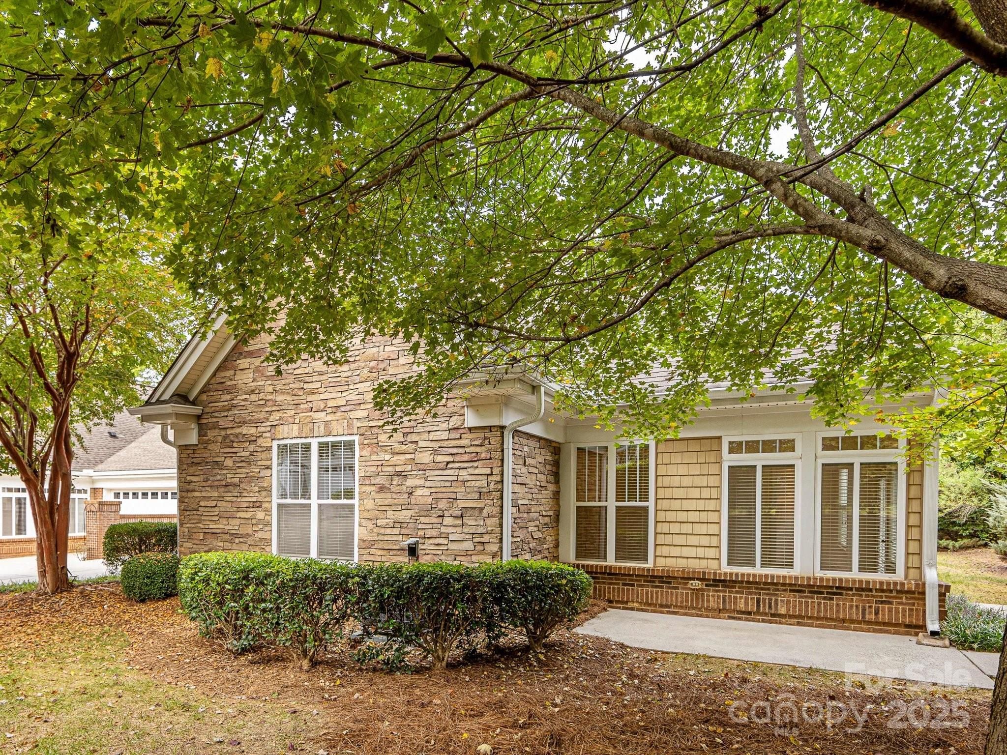 Welcome to Bella Sera Villas where comfort, style, and convenience come together! This charming patio home is ideally located near all Matthews has to offer with shopping, dining, and entertainment just minutes away. Move-in ready with fresh neutral paint, gleaming wood floors in the main living areas, and brand-new carpet in the bedrooms, this home shines from the start. The spacious, open kitchen boasts white cabinetry, a classic tile backsplash, recessed lighting, pantry storage, and a breakfast bar that flows seamlessly into the dining area with tray ceiling and crown molding. An adorable breakfast nook offers the perfect spot for morning coffee. The inviting great room features soaring cathedral ceilings and a cozy gas fireplace, while a wall of windows in the adjoining sunroom floods the space with natural light. Need extra space? A flexible room just off the great room is perfect for a home office or hobby retreat. The primary suite is a true gem with its tray ceiling, walk-in closet, and spa-like bath with dual vanities, soaking tub, and separate shower. A secondary bedroom with ceiling fan and a full bath offer comfort for family or guests. Enjoy the outdoors on your private wrap-around patio overlooking a tree-lined backdrop, ideal for relaxing or entertaining. Additional perks include a two-car garage with painted walls and floor as well as 2" blinds throughout the home. Bella Sera Villas offers fantastic community amenities: a clubhouse, outdoor pool, pond, bocce ball, and scenic walking trails. Join neighbors for activities or take a quiet stroll around the pond. Either way, you’ll love the lifestyle!