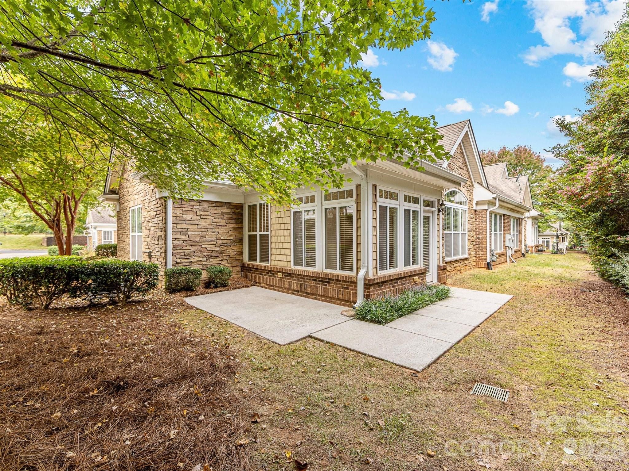 Welcome to Bella Sera Villas where comfort, style, and convenience come together! This charming patio home is ideally located near all Matthews has to offer with shopping, dining, and entertainment just minutes away. Move-in-ready with fresh neutral paint, many brand-new windows, gleaming wood floors in the main living areas, and brand-new carpet in the bedrooms, this home shines from the start. The spacious, open kitchen boasts white cabinetry, a classic tile backsplash, recessed lighting, pantry storage, and a breakfast bar that flows seamlessly into the dining area with tray ceiling and crown molding. An adorable breakfast nook offers the perfect spot for morning coffee. The inviting great room features soaring cathedral ceilings and a cozy gas fireplace, while a wall of windows in the adjoining sunroom floods the space with natural light. Need extra space? A flexible room just off the great room is perfect for a home office or hobby retreat. The primary suite is a true gem with its tray ceiling, walk-in closet, and spa-like bath with dual vanities, soaking tub, and separate shower. A secondary bedroom with ceiling fan and a full bath offer comfort for family or guests. Enjoy the outdoors on your private wrap-around patio overlooking a tree-lined backdrop, ideal for relaxing or entertaining. Additional perks include a two-car garage with painted walls and floor as well as 2" blinds throughout the home and a brand new roof December 2025. Bella Sera Villas offers fantastic community amenities: a clubhouse, outdoor pool, pond, bocce ball, and scenic walking trails. Join neighbors for activities or take a quiet stroll around the pond. Either way, you’ll love the lifestyle!