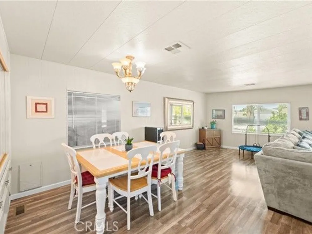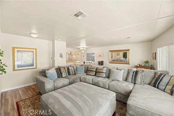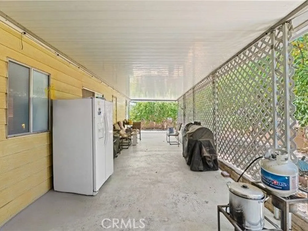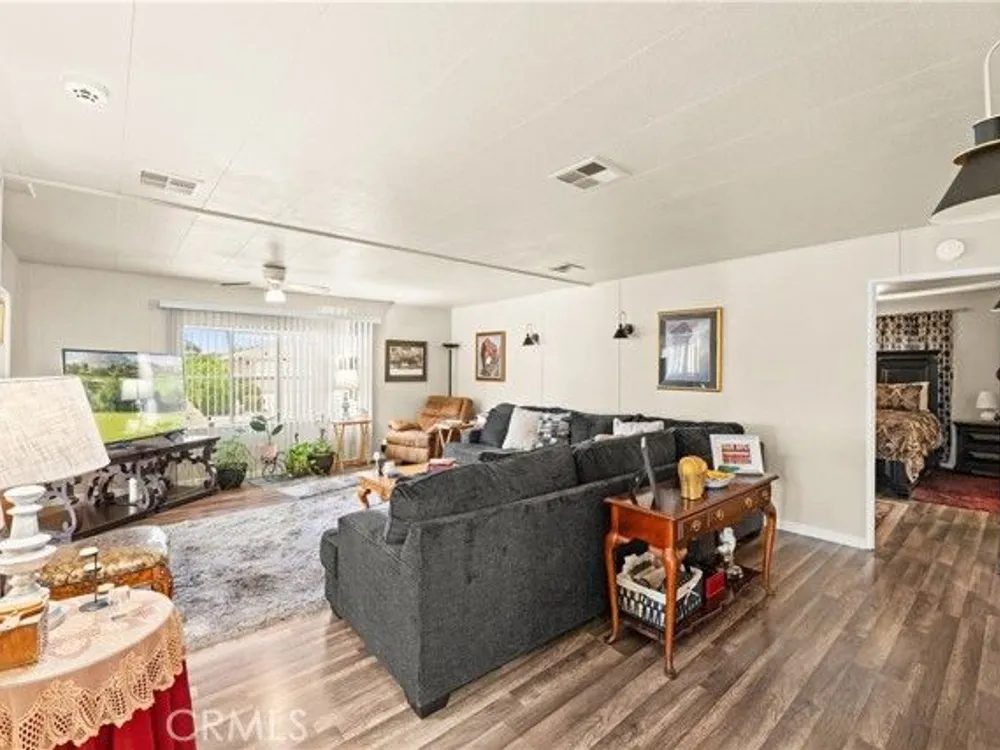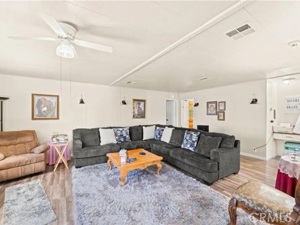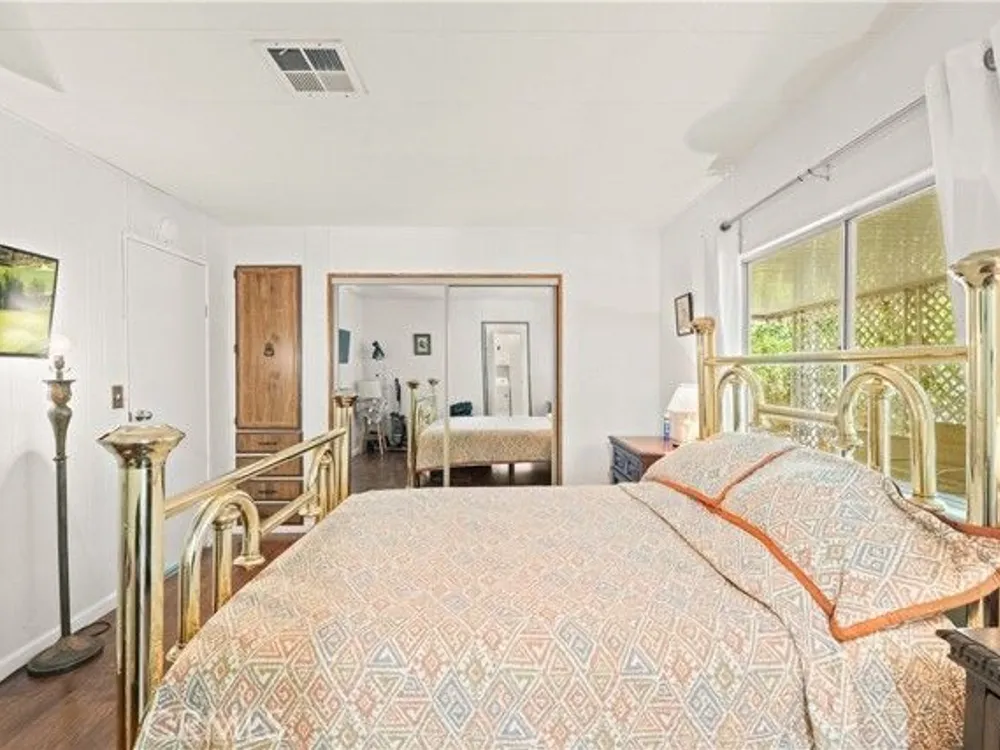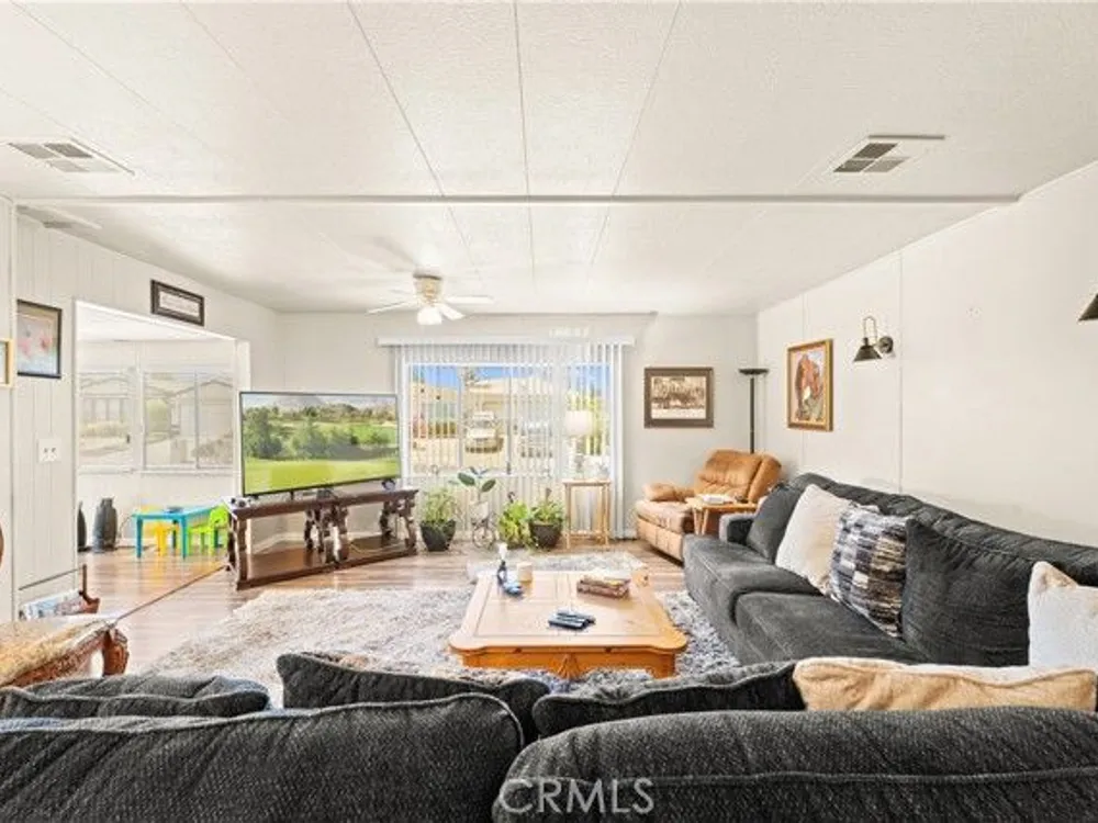 Beautiful corner lot home in a senior golf community with low HOA and county taxes access your home through the front or back! This home is a 3 bed, 2 bath with an office space! This home is on permanent foundation with a 433C. The layout includes a private third bedroom with a kitchenette behind the garage—perfect for a caregiver, guest, or multigenerational living. Beautiful updated kitchen with plenty of space that features a pot-filler above the stove for added convenience. Brand new roof, new flooring & paint. Enclosed porch opens with sliding doors to the family room & office space, offering extra living space and natural light. Master bedroom includes added closet space. Large, private patio overlooks a lush garden with a variety of fruit trees—ideal for relaxing or entertaining. A rare and flexible floor plan in a peaceful, amenity-filled community!