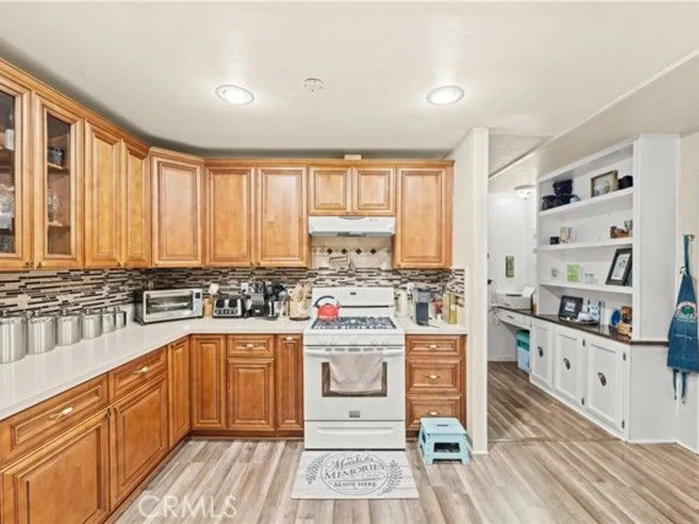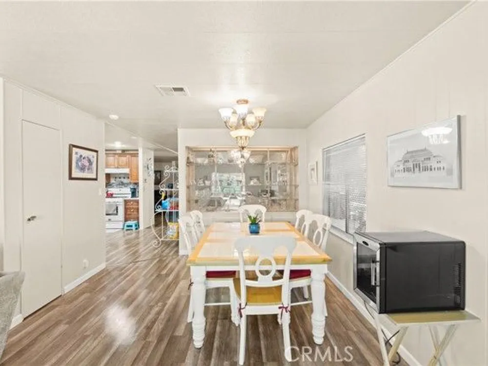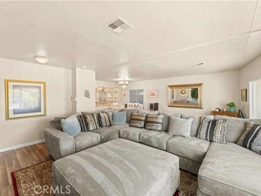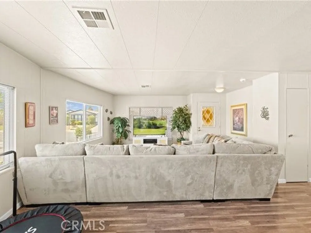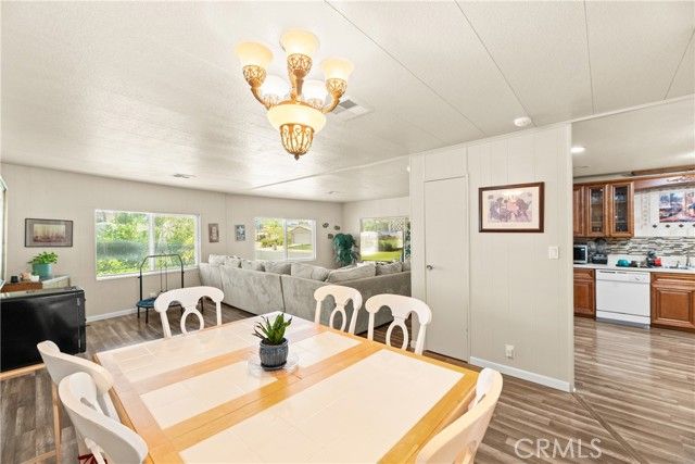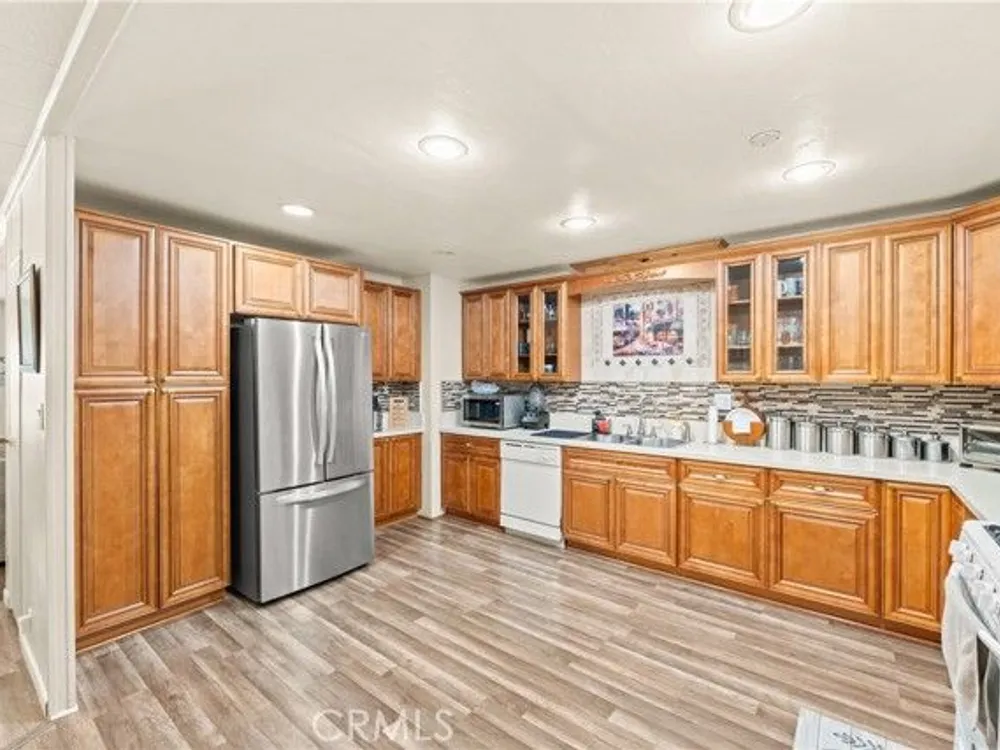 Beautiful corner lot home in a senior golf community with low HOA and county taxes access your home through the front or back! This home is a 3 bed, 2 bath with an office space! This home is on permanent foundation with a 433C. The layout includes a private third bedroom with a kitchenette behind the garage—perfect for a caregiver, guest, or multigenerational living. Beautiful updated kitchen with plenty of space that features a pot-filler above the stove for added convenience. Brand new roof, new flooring & paint. Enclosed porch opens with sliding doors to the family room & office space, offering extra living space and natural light. Master bedroom includes added closet space. Large, private patio overlooks a lush garden with a variety of fruit trees—ideal for relaxing or entertaining. A rare and flexible floor plan in a peaceful, amenity-filled community!