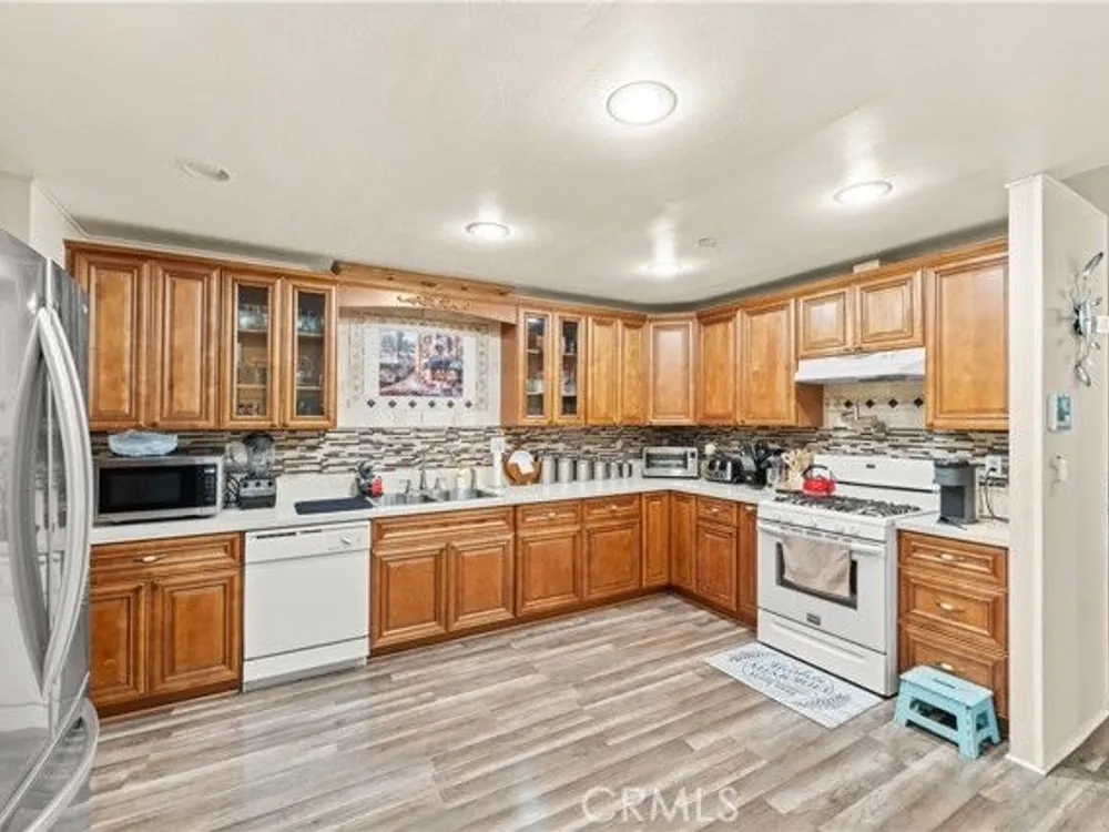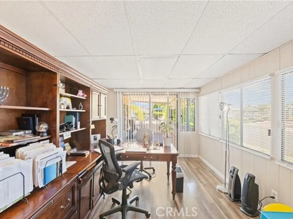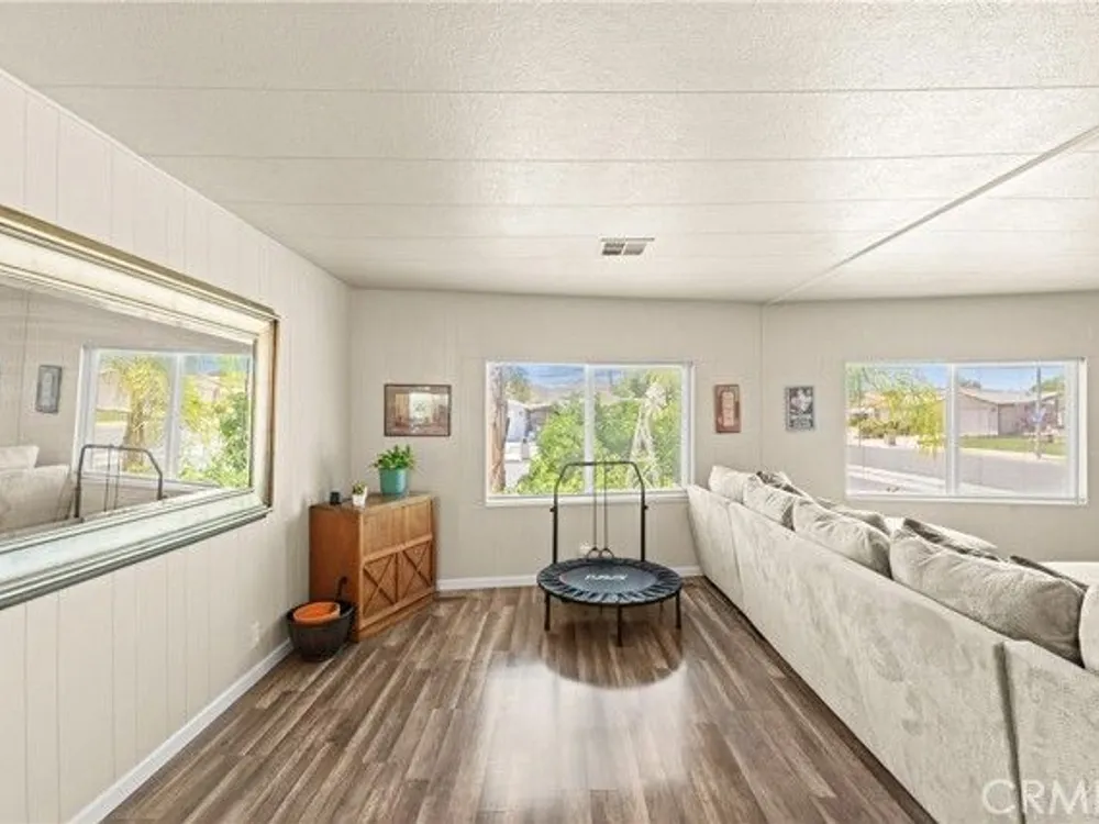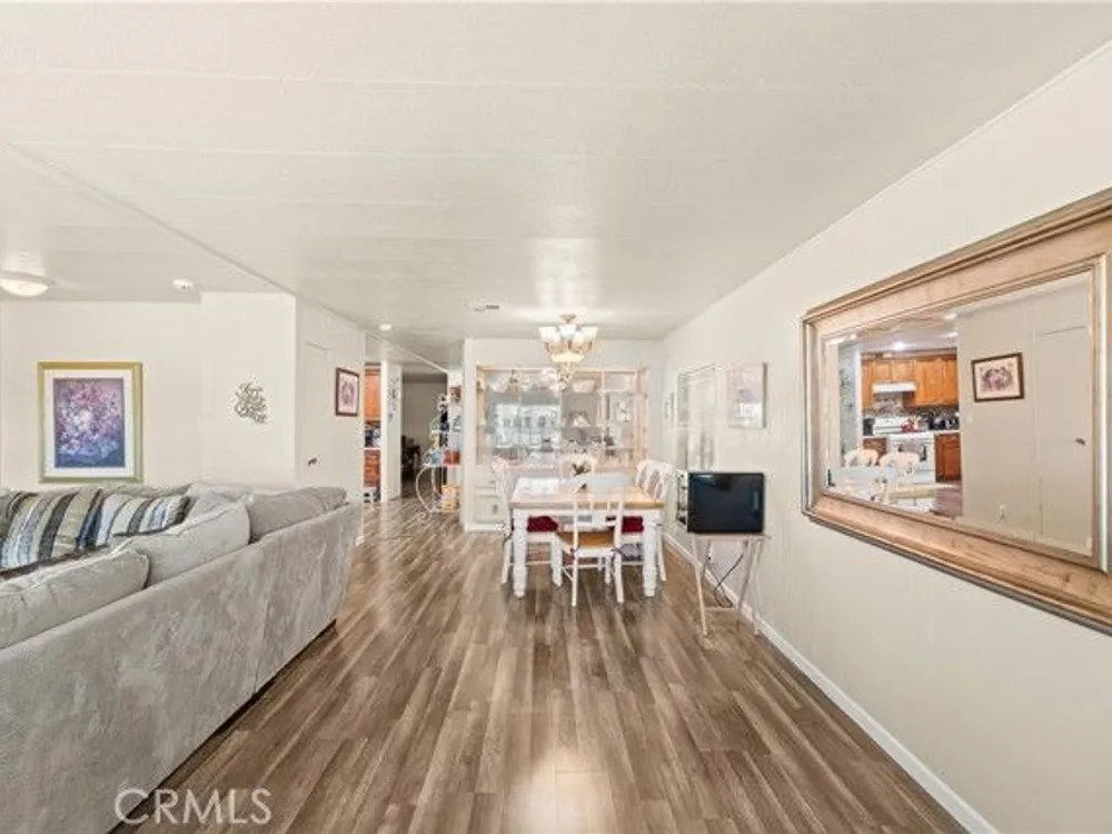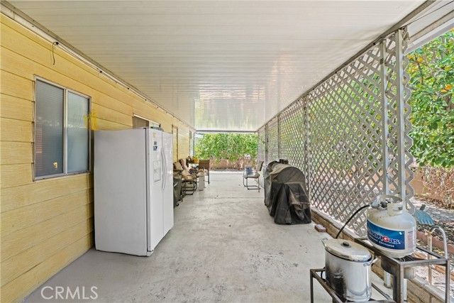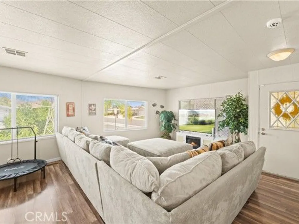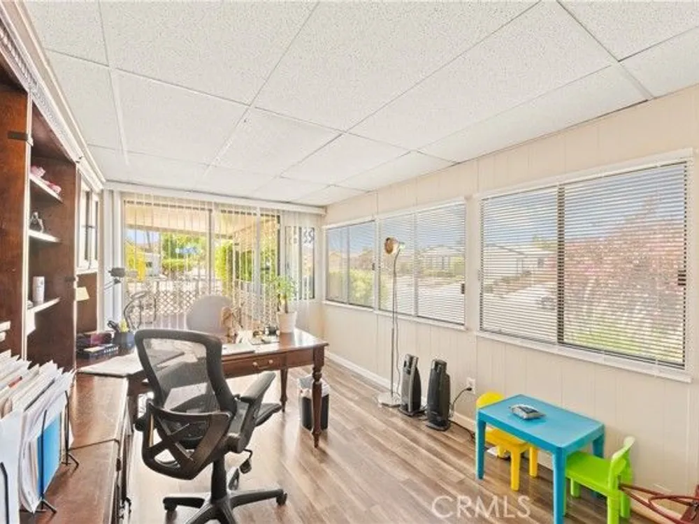 Beautiful corner lot home in a senior golf community with low HOA and county taxes access your home through the front or back! This home is a 3 bed, 2 bath with an office space! This home is on permanent foundation with a 433C. The layout includes a private third bedroom with a kitchenette behind the garage—perfect for a caregiver, guest, or multigenerational living. Beautiful updated kitchen with plenty of space that features a pot-filler above the stove for added convenience. Brand new roof, new flooring & paint. Enclosed porch opens with sliding doors to the family room & office space, offering extra living space and natural light. Master bedroom includes added closet space. Large, private patio overlooks a lush garden with a variety of fruit trees—ideal for relaxing or entertaining. A rare and flexible floor plan in a peaceful, amenity-filled community!