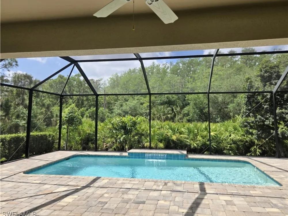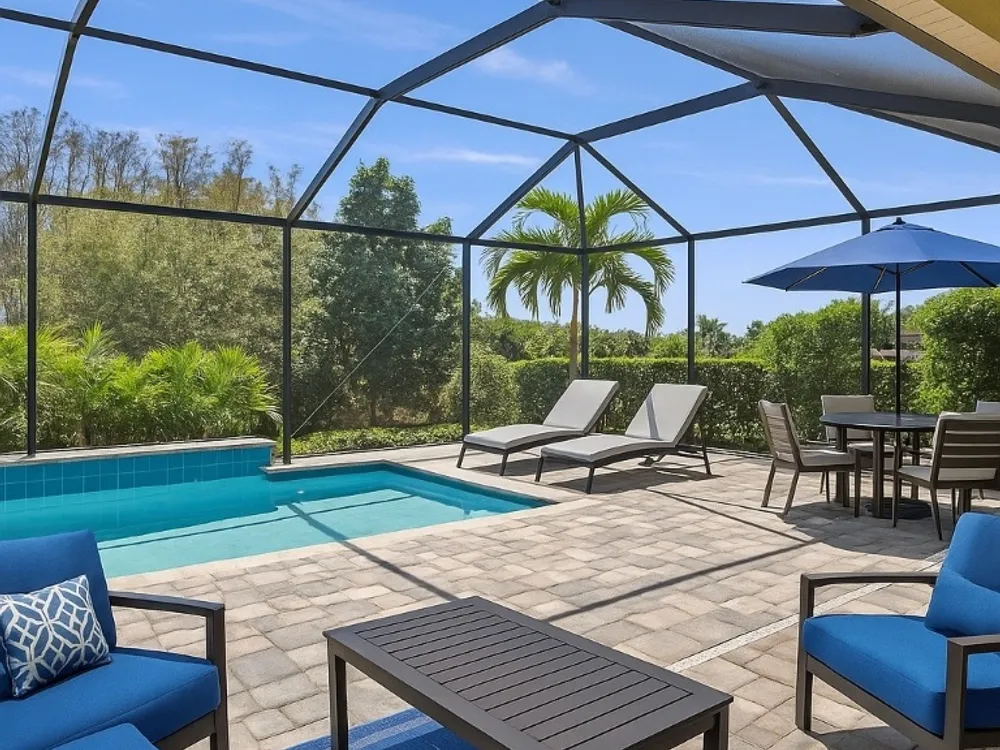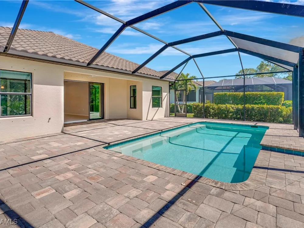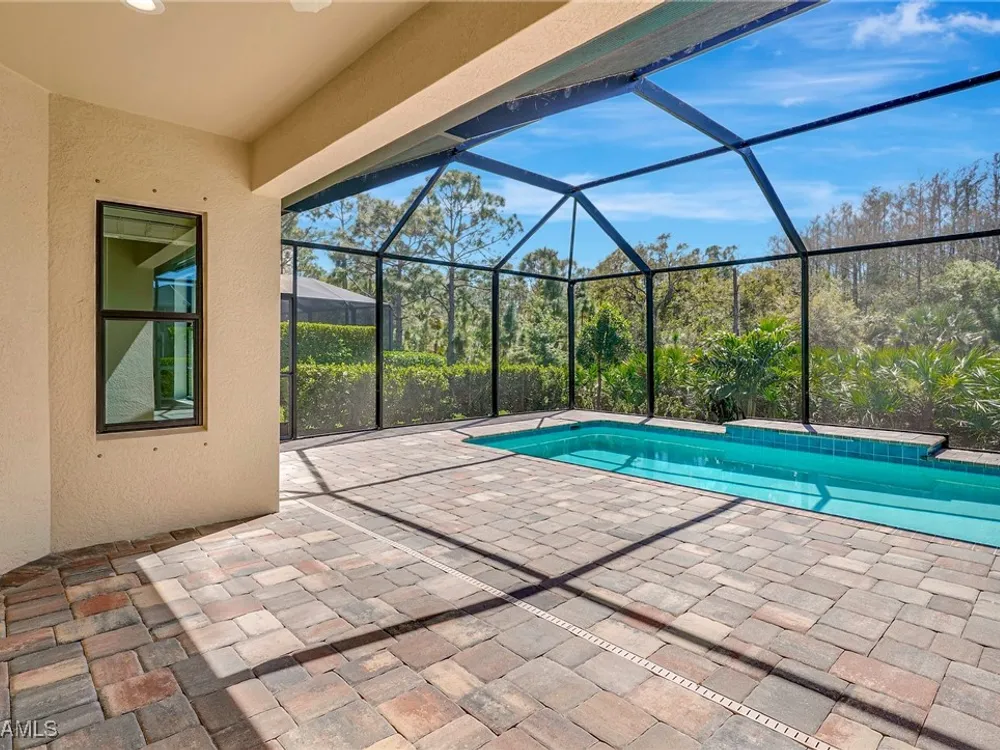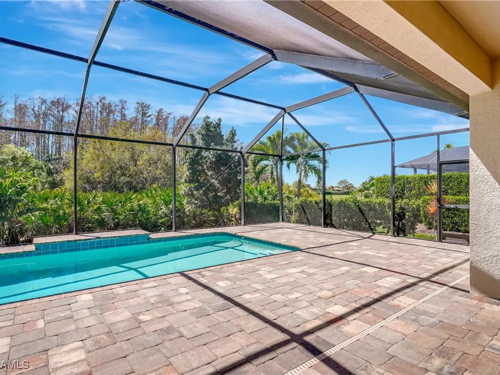 If you are dreaming of a resort-style lifestyle in the Florida sunshine, this home in one of Southwest Florida’s most sought-after gated communities—The Verandah—may be the one for you, this premier community combines natural beauty with world-class amenities and a strong sense of community. With a recent $20,00 price reduction, this home is aggressively priced to sell. Built in 2018 by Neal Communities, this elegant three-bedroom, three-bath, two-car garage residence with a heated saltwater pool offers magnificent preserve and lake views and feels like new, with thoughtful upgrades including crown molding, tray ceilings, recessed lighting, and a custom pocket door that connects the outdoor oasis directly to the interior living space. Perfectly positioned on a premium pie-shaped preserve lot in the Amblewind subdivision, the home offers a wider back view, extra space between neighbors, and enhanced privacy. With more than 2,100 square feet of open living space, soaring 10-foot ceilings, and light tile flooring, it has been freshly painted and is move-in ready. The open-concept layout creates the perfect setting for both everyday living and entertaining, with a spacious great room that flows into a gourmet kitchen. The kitchen features white cabinetry with pull-out shelving, granite countertops, a large center island, a gas range, a walk-in pantry, and sweeping views of the pool and surrounding nature. The pocket door opens to a covered lanai and an oversized screened pool deck with peaceful southern exposure. The primary suite is a true retreat, offering a sitting area, dual walk-in closets, an en-suite spacious bath with a large walk-in shower and private water closet. With a split bedroom design presenting two good sized guest bedrooms and two baths, one of them a private guest suite. A versatile room near the entry provides the flexibility to serve as an office, study, or formal living space. The residence also includes a spacious laundry room with sink and cabinetry, as well as an epoxy-coated two-car garage with extra storage. Located in the X500 flood zone, no federal flood insurance is required. The Verandah community offers a lifestyle unlike any other, with lush landscaping, beautifully maintained grounds, and a wealth of amenities that cater to every interest. The HOA fees include internet, cable, and landscaping. A one-time membership fee grants access to all community amenities with limited golf; a full golf membership is optional for those seeking unlimited play. Residents enjoy two professionally designed 18-hole golf courses, a resort-style and lap pools, tennis, pickleball, and bocce courts, as well as a state-of-the-art fitness center with classes and a massage room. Social and dining opportunities abound with two on-site restaurants and bars, while nine miles of walking and biking trails, a dog park, and kayaking on the Orange River provide endless ways to enjoy the outdoors. Just minutes from Fort Myers International Airport.