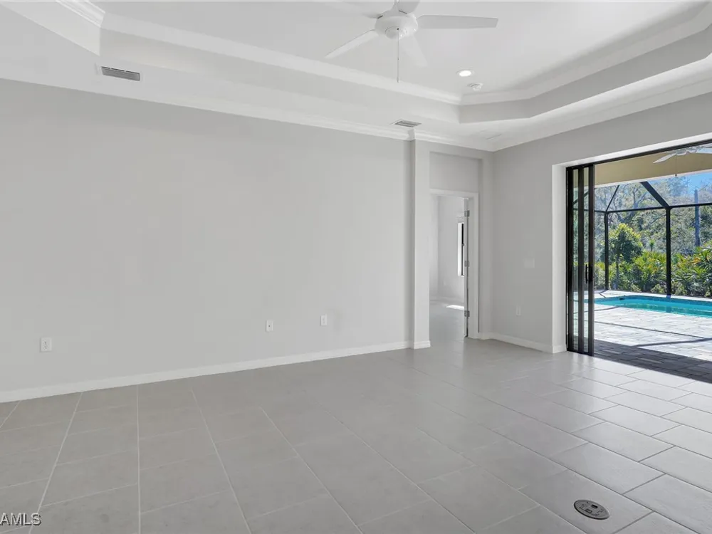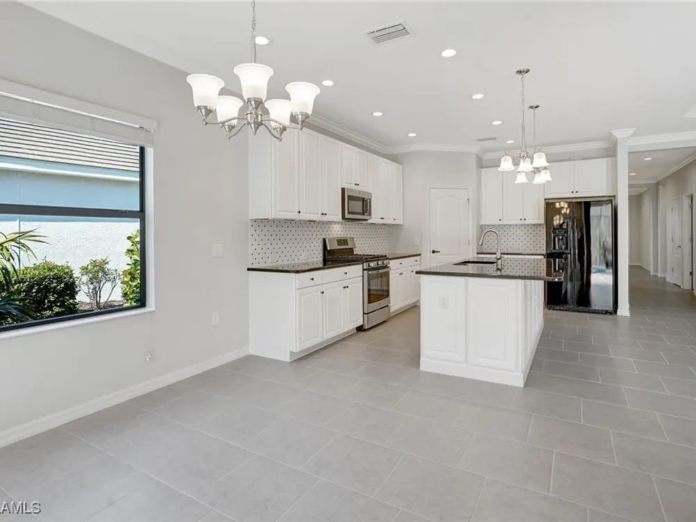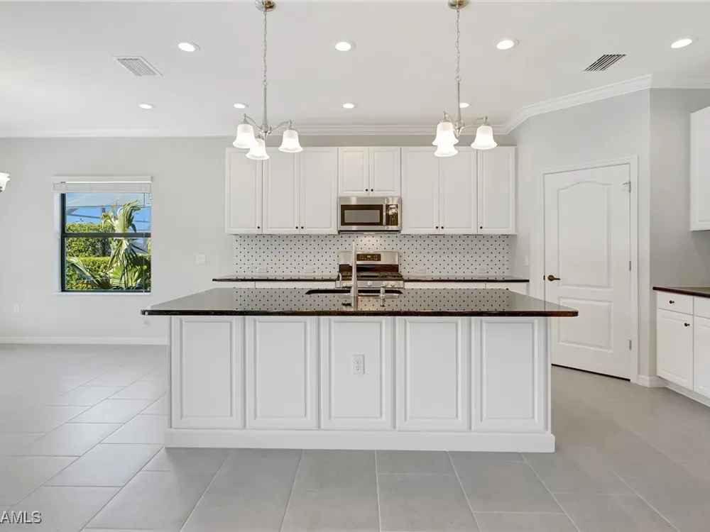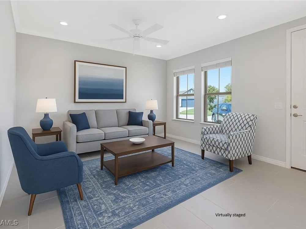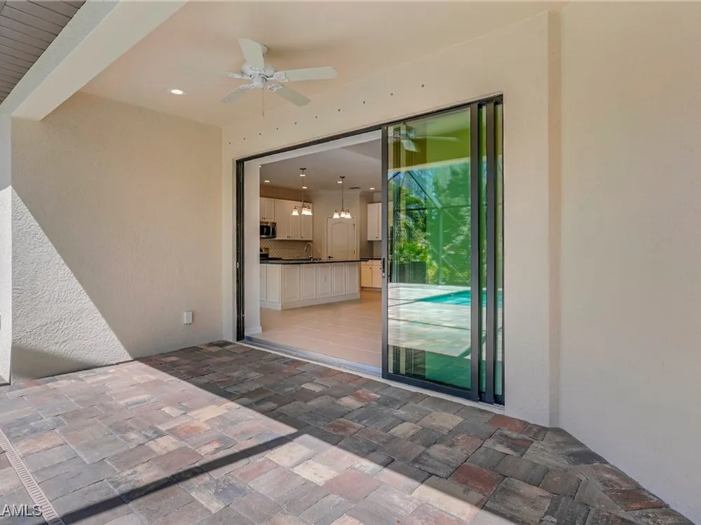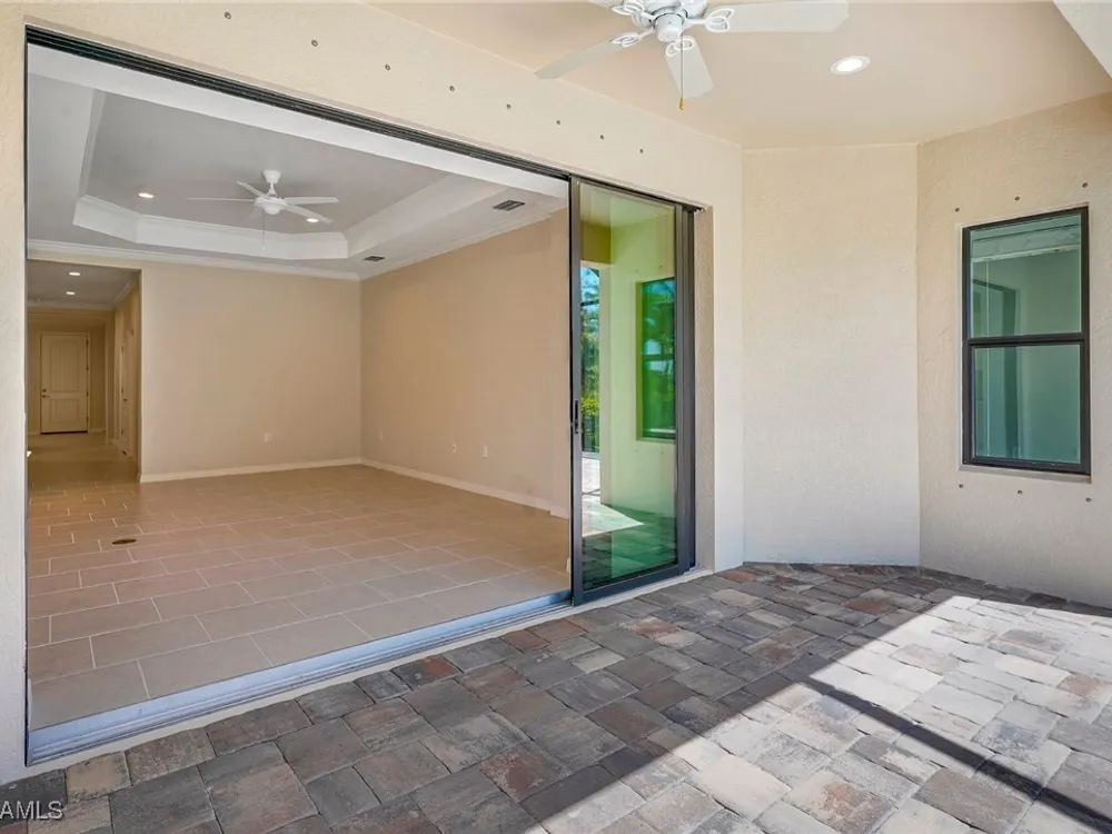 If you are dreaming of a resort-style lifestyle in the Florida sunshine, this home in one of Southwest Florida’s most sought-after gated communities—The Verandah—may be the one for you, this premier community combines natural beauty with world-class amenities and a strong sense of community. With a recent $20,00 price reduction, this home is aggressively priced to sell. Built in 2018 by Neal Communities, this elegant three-bedroom, three-bath, two-car garage residence with a heated saltwater pool offers magnificent preserve and lake views and feels like new, with thoughtful upgrades including crown molding, tray ceilings, recessed lighting, and a custom pocket door that connects the outdoor oasis directly to the interior living space. Perfectly positioned on a premium pie-shaped preserve lot in the Amblewind subdivision, the home offers a wider back view, extra space between neighbors, and enhanced privacy. With more than 2,100 square feet of open living space, soaring 10-foot ceilings, and light tile flooring, it has been freshly painted and is move-in ready. The open-concept layout creates the perfect setting for both everyday living and entertaining, with a spacious great room that flows into a gourmet kitchen. The kitchen features white cabinetry with pull-out shelving, granite countertops, a large center island, a gas range, a walk-in pantry, and sweeping views of the pool and surrounding nature. The pocket door opens to a covered lanai and an oversized screened pool deck with peaceful southern exposure. The primary suite is a true retreat, offering a sitting area, dual walk-in closets, an en-suite spacious bath with a large walk-in shower and private water closet. With a split bedroom design presenting two good sized guest bedrooms and two baths, one of them a private guest suite. A versatile room near the entry provides the flexibility to serve as an office, study, or formal living space. The residence also includes a spacious laundry room with sink and cabinetry, as well as an epoxy-coated two-car garage with extra storage. Located in the X500 flood zone, no federal flood insurance is required. The Verandah community offers a lifestyle unlike any other, with lush landscaping, beautifully maintained grounds, and a wealth of amenities that cater to every interest. The HOA fees include internet, cable, and landscaping. A one-time membership fee grants access to all community amenities with limited golf; a full golf membership is optional for those seeking unlimited play. Residents enjoy two professionally designed 18-hole golf courses, a resort-style and lap pools, tennis, pickleball, and bocce courts, as well as a state-of-the-art fitness center with classes and a massage room. Social and dining opportunities abound with two on-site restaurants and bars, while nine miles of walking and biking trails, a dog park, and kayaking on the Orange River provide endless ways to enjoy the outdoors. Just minutes from Fort Myers International Airport.