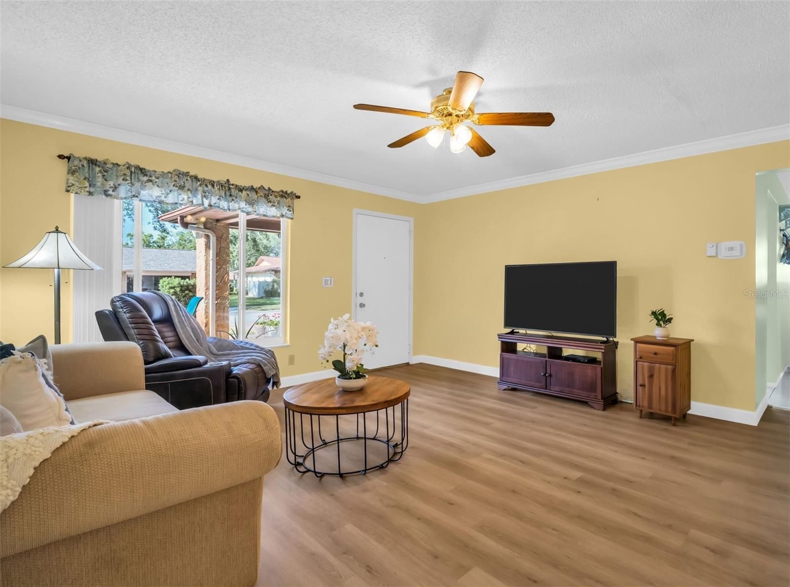 - Ceiling Fan(s), Chair Rail, Crown Molding, Kitchen/Family Room Combo, Living/Dining Room, Main Level Primary, Tray Ceiling(s)