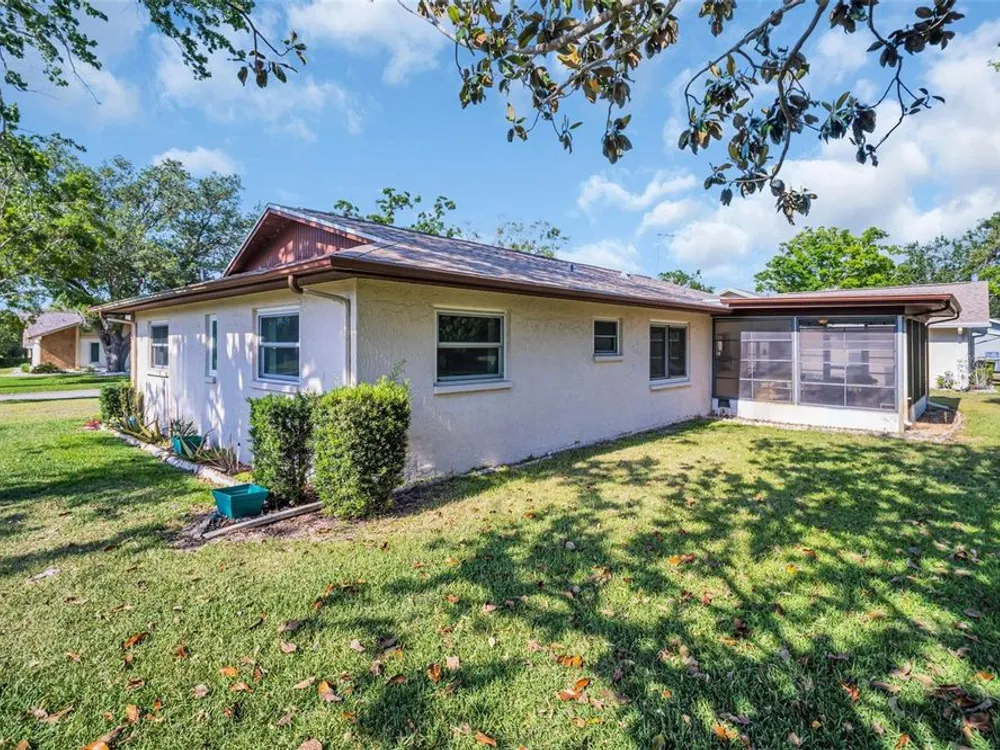 Welcome to this beautiful and spacious 2-bedroom, 2-bathroom home with a bonus enclosed lanai, perfectly situated on a large corner lot in Palm Harbor’s highly sought-after 55+ golf community of Highland Lakes. This move-in ready home features BRAND new luxury vinyl flooring, elegant crown molding, and an abundance of natural light flowing through updated hurricane-impact windows. The thoughtfully designed kitchen is centrally located between the family and dining rooms and features a convenient pass-through window to the lanai—making entertaining and everyday living a breeze. A large INDOOR laundry room is ideally placed between the garage and main living area, and includes a versatile closet for extra storage or a coat closet.The oversized master suite is a relaxing retreat with two closets, charming chair rail accents, and an en-suite bath featuring a walk-in shower. Enjoy peace of mind with a BRAND new hot water heater (2025), updated electrical panel (2023), roof (2018), deep irrigation well, newer HVAC system, and hurricane-impact windows throughout. The home recently passed a 4-point inspection with excellent results—report available and transferrable to the buyer. Highland Lakes is Palm Harbor’s premier 55+ golf and lakefront community, nestled high and dry above the flood plain and offering unmatched amenities including free green fees on three private executive courses. Enjoy an active lifestyle with water aerobics, yoga, pickleball, tennis, and more. The clubhouse is a lively hub for social events, while the arts and crafts center offers studios, classes, and a wood shop. The Lake Tarpon Lodge provides a rustic retreat with a second heated pool, fishing pier, party pavilion, community pontoon boats, and free RV or boat storage. Located just minutes from the Gulf beaches, Pinellas Trail, top-tier shopping and dining, major airports, and world-class medical and cultural attractions—this is the Florida lifestyle you’ve been waiting for. Don’t miss your opportunity to call this exceptional home your own!