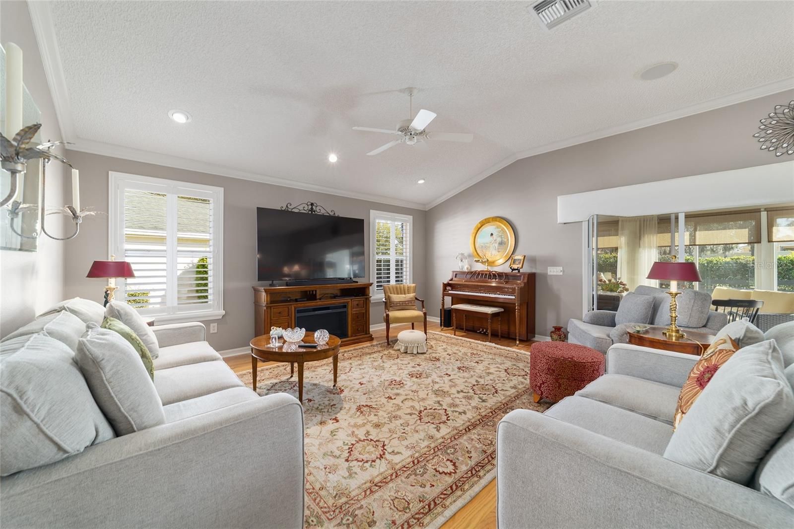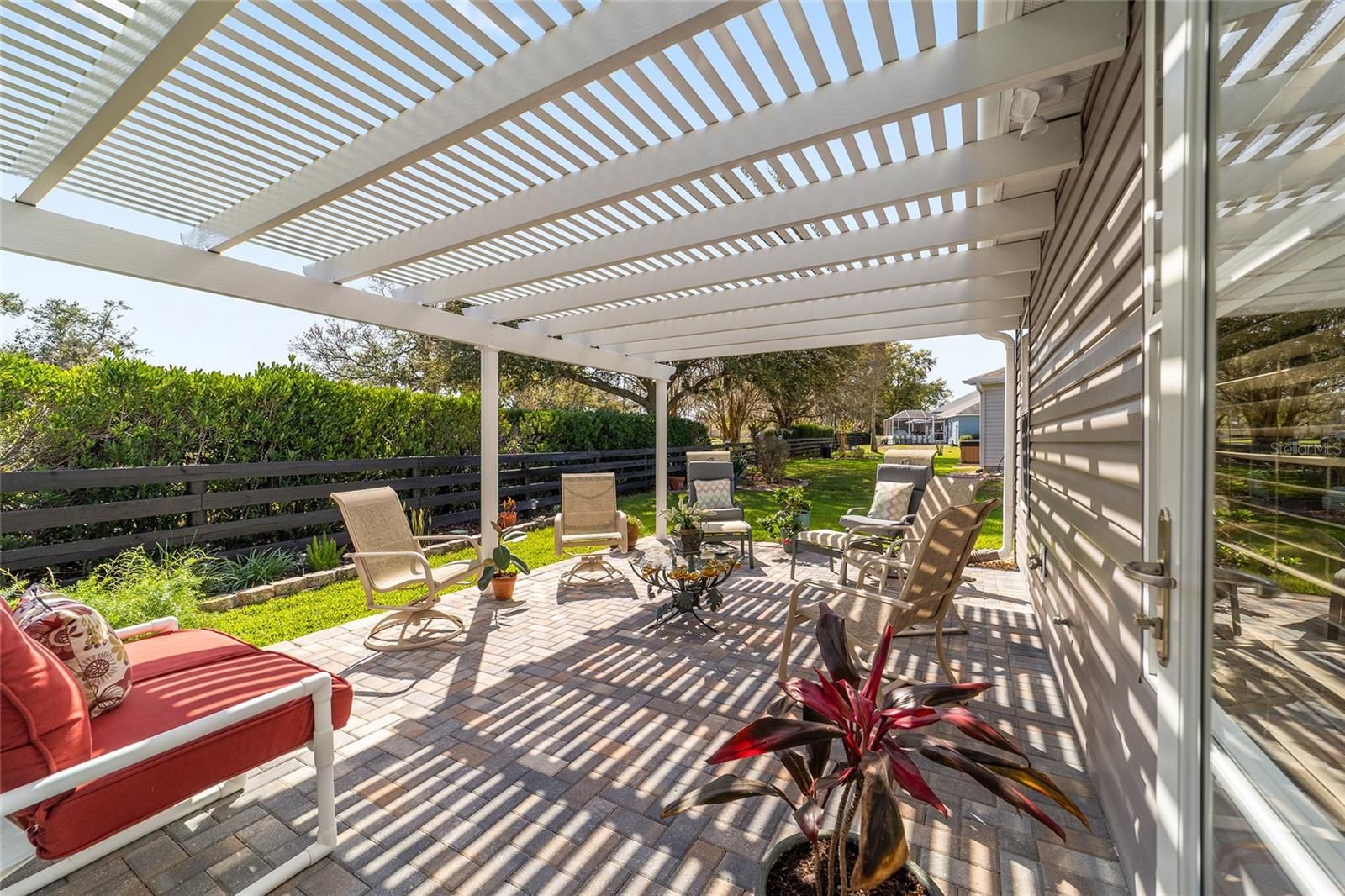 Beautiful EXPANDED CAMELLIA DESIGNER MODEL with BOND PAID, PARTIALLY FURNISHED in the Highly Sought-After VILLAGE OF GLENBROOK! Ideally located near Glenview Country Club and the Southern Trace Shopping Center, this well-maintained home offers both comfort and convenience in one of The Villages’ most desirable locations. Major updates include a NEW ROOF (2019), HVAC (2023), ADDED HURRICANE RESISTANT WINDOWS TO CLIMATE CONTROLLED LANAI (2021), PERGOLA INSTALLED TO REAR PAVER PATIO( 2023 ) and WATER HEATER (2023) EXTERIOR PAINTED (2024), PLANTATION SHUTTERS (2025) providing peace of mind for years to come. From the moment you arrive to this Private Cul-De-Sac , you’ll notice the gorgeous upgraded landscaping, featuring easy-care plantings, rock-lined fieldstone beds, and enhanced curb appeal. The property also features an expanded rear patio with pergola, creating a wonderful outdoor retreat. Inside, the popular Camellia Designer Model welcomes you with a foyer entry and open floor plan designed for both everyday living and entertaining. The home features beautiful WOOD FLOORING throughout the main living areas and bedrooms, creating a warm, cohesive look that is both stylish and easy to maintain. Also notice the Plantation Shutters and Crown Molding. The Kitchen is well appointed with White cabinetry, Granite Countertops, Stainless Appliances, Breakfast Nook, and bar seating, making it both functional and stylish. Step through the Sliders to the EXPANDED ENCLOSED LANAI, WITH CLIMATE CONTROL, featuring CONCRETE FLOORING, Ceiling Fans, and HURRICANE RESISTANT TINTED GLASS, that provides the perfect space to relax or entertain friends and family. Or head out to the Brick Paver Patio with Pergola to enjoy the Florida Weather. The Primary suite offers a Vaulted ceiling and dual closets, along with a spacious en-suite bath featuring a Step In Shower and vanities. A pocket door provides privacy to the guest wing, which includes a guest bedroom and bathroom with tub/shower combination. The third bedroom (no closet) is ideal for a home office, den, or hobby room. Additional features include an INSIDE LAUNDRY Room with Washer and Dryer included, along with storage cabinets, plus a Garage with Repainted Walls, and decorative and Functional “Black Dog” Tile Accents, and Attic Access . This home has been thoughtfully and lovingly maintained and improved over the years. The EXPANDED rear lanai was enclosed with hurricane-resistant tinted glass, creating a comfortable year-round living space. A Pergola was added over the rear patio in 2023, and the Patio and rear Planting Wall were added in 2022. Additional improvements include the driveway and entryway repainted and sealed in 2024, the homes EXTERIOR WAS REPAINTED in 2024, and PLANTATION SHUTTERS added in 2025. The Front and Side Landscaping were upgraded with several tons of decorative rock and curbing, further enhancing the home’s curb appeal. This beautiful home offers the perfect blend of privacy, thoughtful upgrades, and an outstanding Glenbrook location. Nearby you'll see the Savannah Regional Rec. Center with Concerts and Pool, The Harold S. Schwartz Wildlife Preserve, The Saddlebrook Softball Complex and Pool. THE GLENVIEW COUNTRY CLUB AND CHAMPUIONSHIP GOLF COURSES Along with Multiple executive Golf Courses. Please Review the Pictures and Virtual Tour and Schedule your private showing today and start enjoying The Villages lifestyle! Thank you.