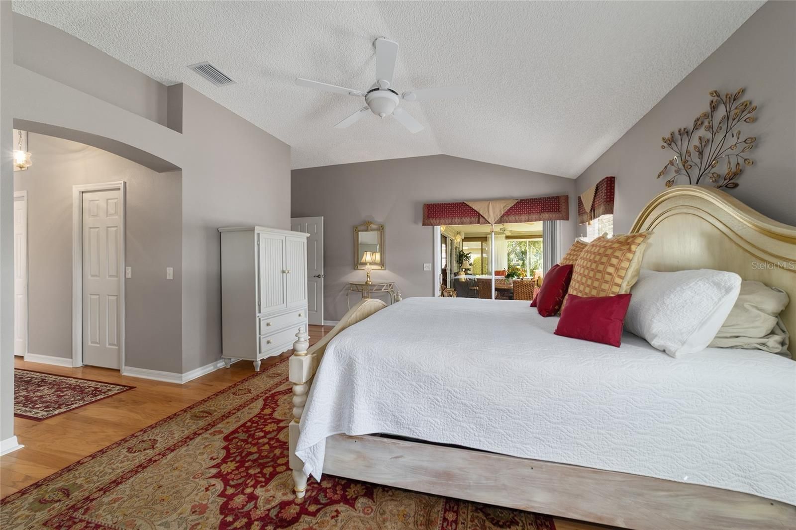 - Ceiling Fan(s), Crown Molding, Living/Dining Room, Open Floorplan, Main Level Primary, Split Bedrooms, Stone Counters, Thermostat, Vaulted Ceiling(s), Walk-In Closet(s), Window Treatments