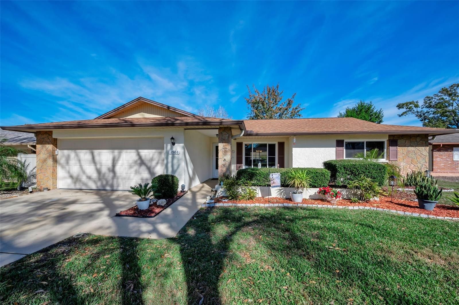 Looking for exceptional value in Palm Harbor’s premier 55+ golf community? This charming Highland Lakes home is tucked away on a quiet cul-de-sac. Money-saving and value-enhancing updates include hurricane windows throughout, upgraded electrical panel, new 2025 water softener, 2023 complete kitchen remodel, bathrooms renovated in 2024, new floors throughout, except for the lovely original oak wood floors, fresh interior paint in 2022, new W/D in 2022 and more! The popular Concord floor plan features open living spaces, while offering just enough separation. The generous Living Room and Dining Room flow into the Beautifully updated kitchen featuring new white cabinets, granite counters, lovely backsplash and set of stainless-steel appliances. The cook/baker can visit with guests in the Dining Room, Family Room and Florida Room while creating delicious food. The light-filled Florida room—bonus space not included in the interior square footage—is a true 4 season room with real windows, adding flexibility for relaxing or entertaining. The spacious Primary Suite features a comfortable, renovated en-suite bathroom and generous closet space. There is a second versatile bedroom and second refreshed bathroom, as well. The huge convenient interior laundry room offers plenty of storage space, too. The 2015 roof and all components passed a recent 4-point inspection, which the sellers are happy to share. Enjoy outdoor living on both front and back patios, with options for grilling, dining or just hanging out! An oversized two-car garage offers room for vehicles plus a golf cart, and the sprinkler system new irrigation system has a rain sensor for further cost-savings on reclaimed water usage. ***Highland Lakes residents enjoy an unparalleled lifestyle for just $164 per month. Amenities include unlimited free golf on three private executive courses, heated pools and spa, tennis, pickleball, bocce, shuffleboard, bowling leagues, fitness classes, arts and crafts studios, woodworking, clubs, and a vibrant calendar of social events at the expansive clubhouse. The Lake Tarpon Lodge offers even more, with a second heated pool, private boat ramp, fishing pier, picnic facilities, community pontoon boats, and secure free RV or boat storage. Located safely above the floodplain in a non-evacuation zone, yet just minutes from award-winning Gulf beaches, this community is also convenient to two international airports, shopping, dining, cultural attractions, professional sports, and top medical facilities. Make this your year to relax and enjoy the best of Florida living in Highland Lakes.