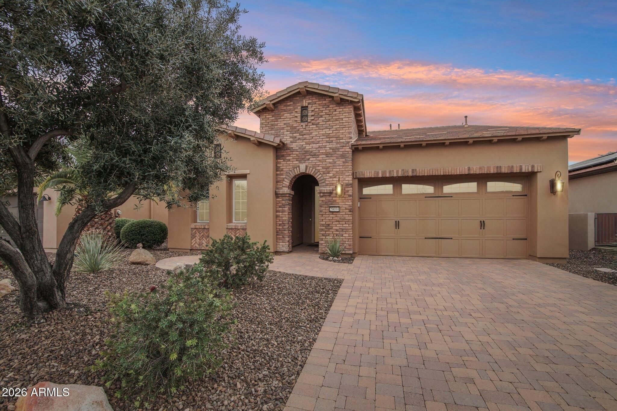 RARE FIND - Stunning NICE floorplan with MOUNTAIN VIEWS and NO HOMES BEHIND. The EXPANSIVE DESERT VIEWS are Impressive - the Setting on this OVERSIZED LOT is one-of-a-kind!! The STONE facade, PAVER DRIVE & Walkway & lush landscape makes a remarkable first impression!! Enjoy a PREPAID SOLAR lease - AVG Bills are less than $8/month! Step inside & notice the pride in ownership - this home is PRISTINE!! The Gourmet kitch features high-end cabinets that are staggered w/larger crown, DRAMATIC GRANITE slab w/ designer backsplash & built-in SS GAS APPL. Gorgeous tile floors in all the right areas!! Floor plan features separate den w/ DOUBLE DOORS & SMART SPACE w/tons of cabinets & workspace. Bathrooms are highly upgraded w/ CUSTOM tiled showers, stone c-tops & framed mirrors. The extremely PRIVATE BACKYARD w/ an Extended PAVER PATIO & PERGOLA is a show-stopper! Add'l upgrades: CROWN MOLDING, Water Heater new in 2024, water softener, RO, Epoxy Floors in the garage, surround sound in the great room, central vac & So Much More - Don't Miss the incredible opportunity to call this home!!