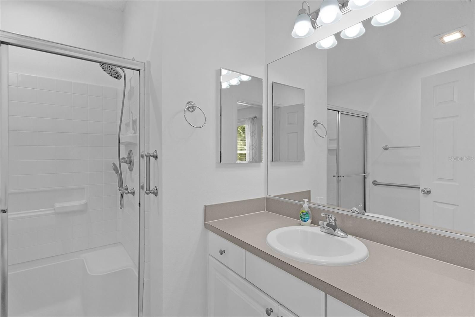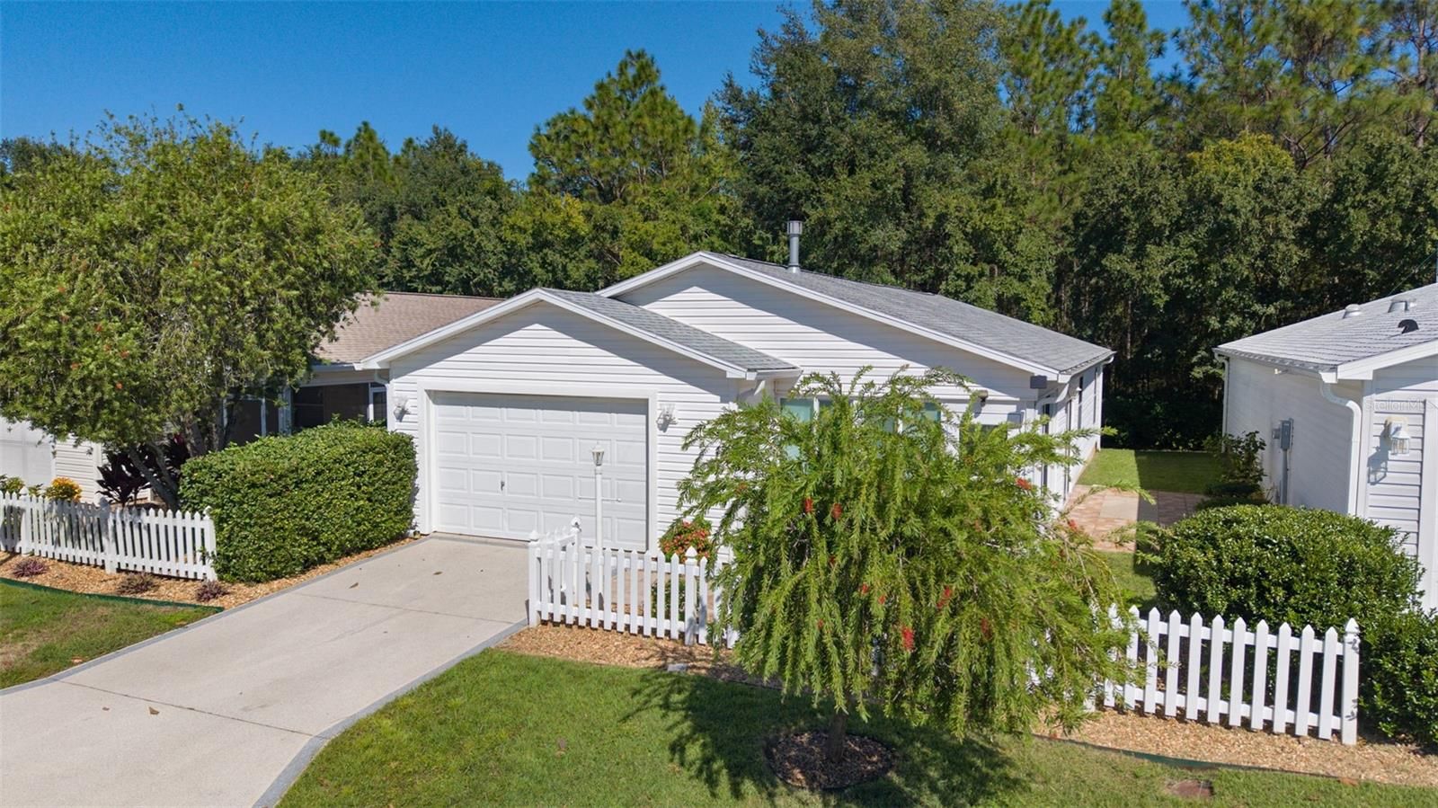 ~2023 ROOF, HVAC & 2006 HOT WATER HEATER~ ~NO CARPET~ ~PINE TREE FARM VIEW~ ~ENCLOSED LANAI~~This inviting 2/2 COLONY PATIO VILLA in EMMALEE VILLAS of the Village of MALLORY SQUARE, A super clean home, it is ideally situated with a serene, PRIVATE BACKDROP OF TREES partnered with appealing landscaping featuring rocks, shrubbery, and grass. Step inside to VAULTED CEILINGS and luxury vinyl plank flooring throughout the living and dining areas, enhanced by UPDATED LIGHTING and CEILING FAN. The kitchen features many upgrades: ceramic tile flooring, UPGRADED CABINETS, stylish BACKSPLASH, gas range, new dishwasher. The primary bedroom boasts a vaulted ceiling, laminate flooring, ceiling fan, and spacious WALK-IN CLOSET. The ensuite primary bath offers ceramic tile flooring, shower insert with tile look, laminate countertops. The guest bedroom includes view of the pine tree farm, laminate flooring, ceiling fan, built-in closet. Guest bath features a tiled shower/tub combo, ceramic tile flooring, laminate counters. Relax year-round in the ENCLOSED LANAI UNDER HEAT AND AIR, with ceramic tile flooring, sliding GLASS windows, blinds, and ceiling fan. The 1-1/2 car garage includes a PAINTED CONCRETE FLOOR and laundry area with shelving over the washer and gas dryer. Furniture available separately. This home combines comfort, updates, and an ideal location near Mallory Hill Country Club, Lake Sumter Landing, Coconut Grove Rec Center and all The Villages lifestyle amenities! Even plentiful shopping at Colony and Sarasota Plazas is just a few minutes away!