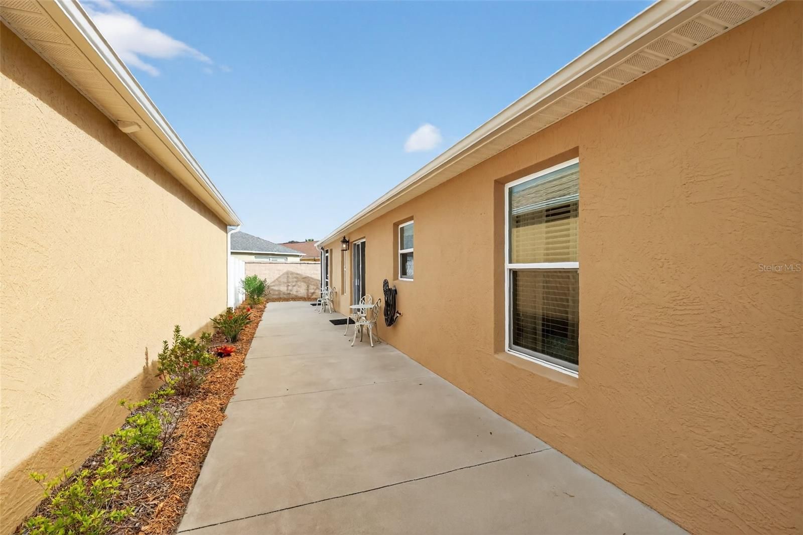 FABULOUS, TURNKEY, BLOCK and STUCCO 3/2 Anaheim Courtyard Villa with SCREENED LANAI and EXTENDED BIRDCAGE featuring LOW-MAINTENANCE, STONED front, side, and rear yards - NO GRASS! - in the Jackson Villas of the highly desirable Village of Pine Ridge! MOVE IN READY - Just bring your toothbrush! A COVERED ENTRY door with sidelight welcome you into the well-lit and SPACIOUS foyer. GORGEOUS, LIGHT WOOD-GRAIN, LUXURY VINYL PLANK flooring grace the foyer, kitchen, and main living areas. The magnificent kitchen features WOOD cabinetry, NEUTRAL countertops, and an EAT-IN breakfast bar. Soaring VAULTED ceilings and the OPEN CONCEPT design of the living, dining and kitchen create an EXPANSIVE central living space. Step through sliding glass doors, at the rear of the living room, into the FABULOUS OUTDOOR RETREAT of the SCREENED LANAI with an EXTENDED BIRDCAGE. This TRANQUIL space offers the perfect spot to ENTERTAIN family and friends or simply RELAX and ENJOY the BEAUTIFUL Florida weather! From the dining room, another set of sliding glass doors lead to the EXPANSIVE SIDE COURTYARD for additional outdoor enjoyment all within a PRIVATE, FULLY FENCED yard! Back inside, the primary bedroom features a TRAY ceiling and a GENEROUS WALK-IN closet. Its en-suite bathroom has WOOD cabinetry, WALK-IN TILED shower, and a separate water closet. The second bedroom and bathroom are conveniently hidden behind a POCKET DOOR ensuring plenty of PRIVACY for guests or a QUIET home office. Bedroom two features a VAULTED ceiling and a built-in closet. The second bathroom has a WOOD vanity, tub-shower combo, and a hallway linen closet. Centrally located, just outside of the second bed and bathrooms, is an INTERIOR laundry room with a utility sink. A third bedroom is near the foyer and also features a VAULTED CEILING and built-in closet. The 23’x17’ garage offers plenty of space for a car and a GOLF CART! DON’T MISS the OPPORTUNITY to make this INCREDIBLE COURTYARD VILLA YOUR OWN! The Village of Pine Ridge is IDEALLY LOCATED near both Lake Sumter Landing and Brownwood Paddock Squares. Close to Belle Glade Country Club and Championship Golf Course; Colony Cottage Regional Recreation Center; Sarasota Golf Practice Facility; Sharon Rose Wiechens Nature Walk and Preserve; Atlas Dog Park; and Colony Plaza and CR 466A with an abundance of shopping, dining, banking, medical, and more! PLEASE WATCH OUR WALKTHROUGH VIDEO OF THIS FABULOUS, TURNKEY HOME IN AN AMAZING LOCATION and call today to schedule your Private Showing or Virtual Tour!
