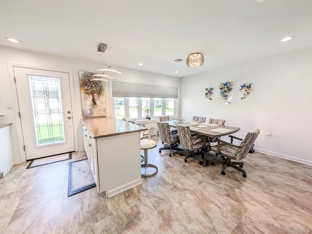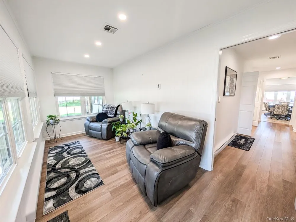 Spacious, Updated Condo in Leisure Village – 55+ and older Community with Resort-Style Amenities! Welcome to the largest Regency model in Leisure Village, offering Approximate 1,767 living square feet with a long driveway! and garage, also an enclosed all-season patio—perfect for relaxing or entertaining year-round. This beautifully updated home has it All! Combines comfort and style with top-quality upgrades throughout The modern kitchen features stainless steel appliances, upgraded cabinetry with pull-outs, and sleek finishes. Both bathrooms have been tastefully renovated, including a walk-in shower with seat. Other highlights include custom doors, stylish lighting and plumbing fixtures, neutral paint, upgraded flooring, newer windows and window coverings, baseboards, thermostats, and a charming brick paver patio. Enjoy easy, low-maintenance living with exceptional amenities: golf course, clubhouse, fitness center, pools, woodworking shop, billiards, social clubs, and more. Cabinets in the garage provide extra storage—and yes, they stay! This is a Must See! Just bring your toothbrush and start enjoying the lifestyle you deserve!