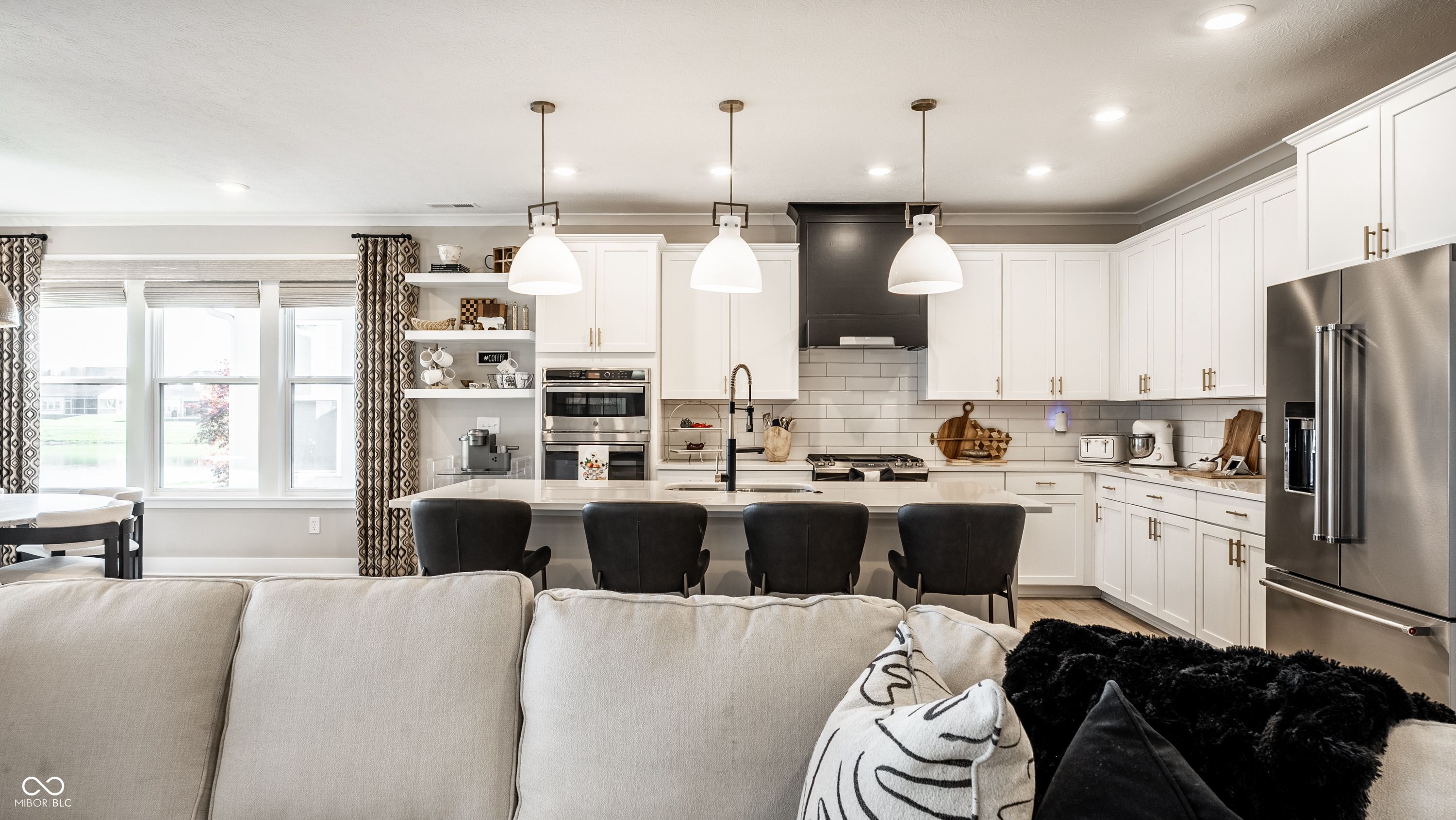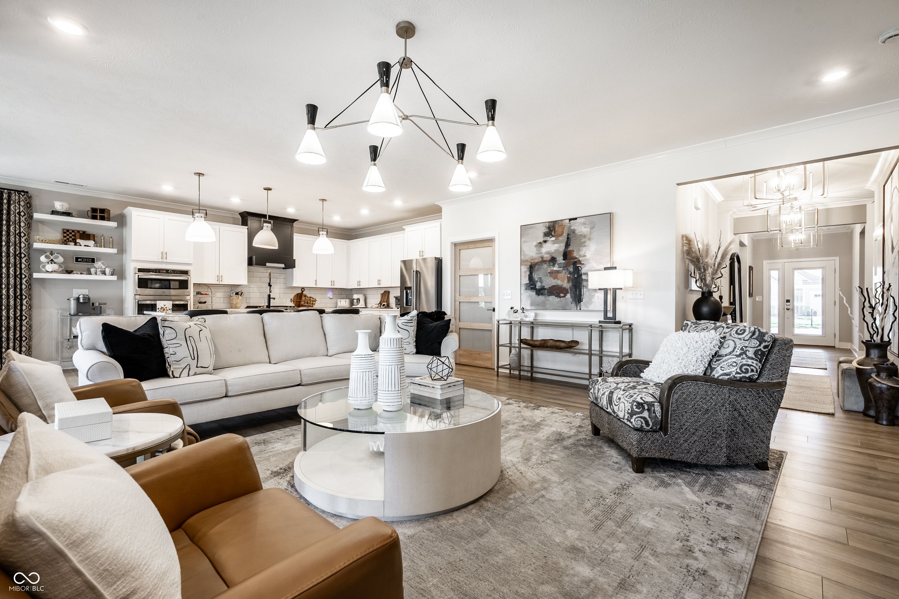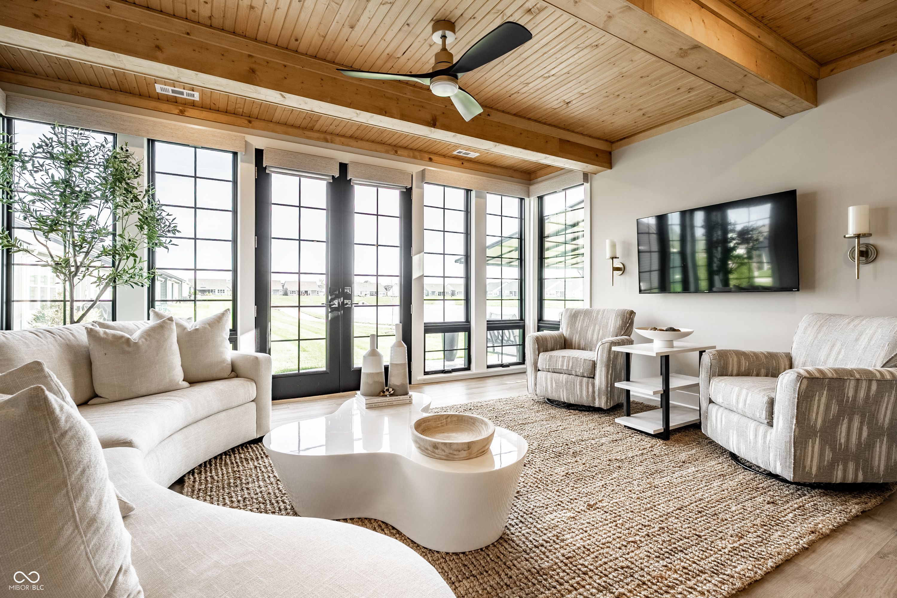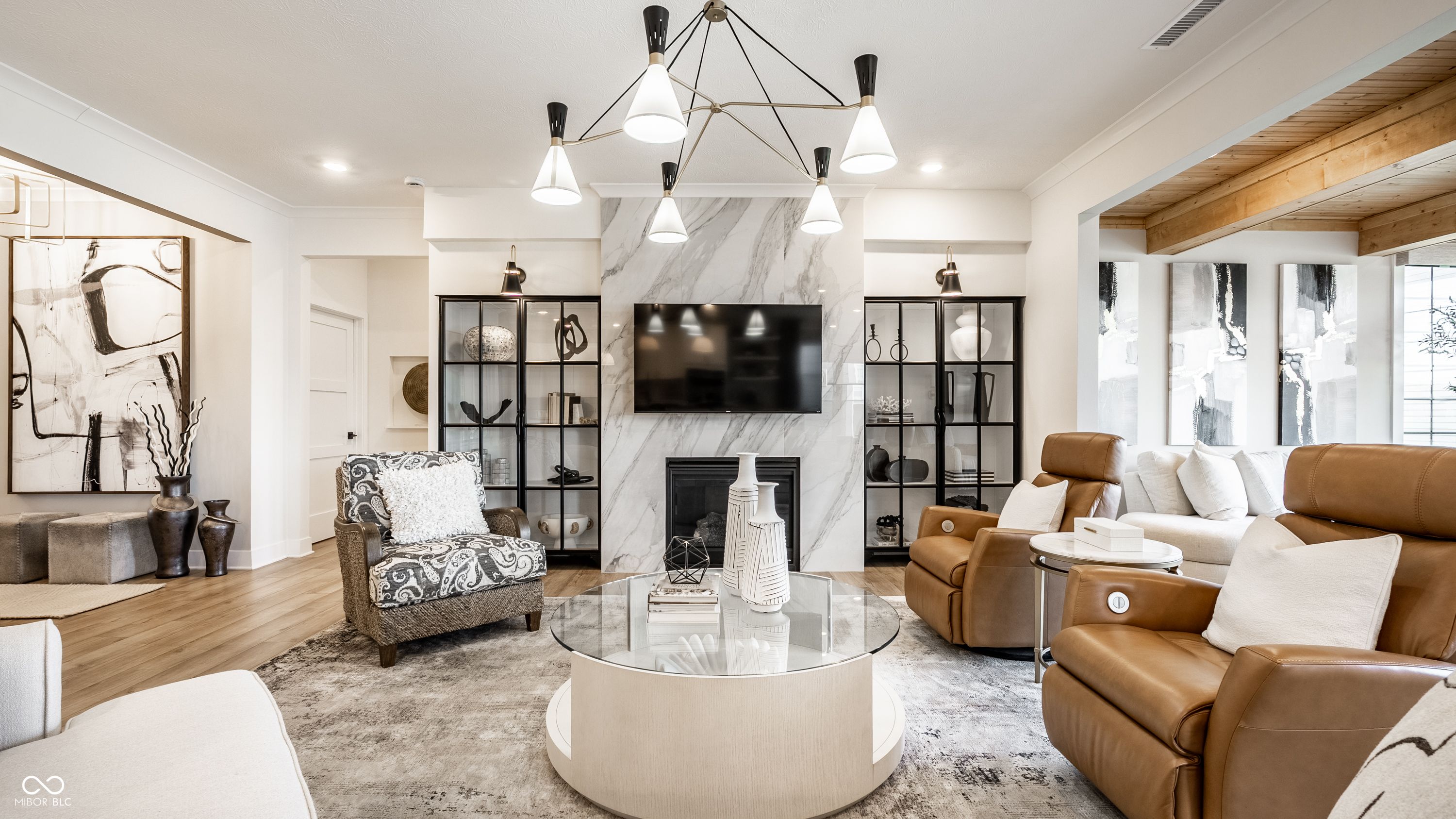 Set within Osborne Trails, Westfield's premier 55+ community, this exceptional residence offers a resort-inspired lifestyle paired with a level of design and finish rarely found within the neighborhood. For those seeking something beyond the expected, this thoughtfully reimagined Sullivan plan stands apart with curated enhancements, elevated materials, and one-of-a-kind details throughout. A formal dining room welcomes you inside, leading to a private den with custom built-ins-ideal for a refined workspace or retreat. The main living space centers around a chef's kitchen with an expansive island, decorative hood & custom pantry door, opening to a great room anchored by a dramatic floor-to-ceiling marble fireplace and flanked by striking glass-front cabinetry. A custom sunroom addition with wood-beamed ceilings brings warmth and character, seamlessly connecting to a spacious stamped concrete patio with both covered and open-air areas overlooking serene pond views-creating an effortless indoor-outdoor living experience. The primary suite offers a private escape with spa-inspired finishes and a fully customized walk-in closet. A second main-level bedroom adds flexibility, while the upper level provides a true guest retreat with a generous loft, bedroom, and full bath. Designer lighting, custom window treatments, solid-core doors, and detailed trim work throughout reflect a level of craftsmanship commonly found in fully custom homes. Residents enjoy access to two resort-style clubhouses, including The Retreat-a 9,000 sq. ft. amenity center with fitness, pickleball and tennis courts, outdoor pool, walking trails, and a full calendar of social events-along with a second clubhouse offering an additional pool, bocce courts & expanded gathering spaces. Just minutes from Downtown Westfield with convenient access to US-31, Meridian, and Keystone, this home delivers a distinctive opportunity to enjoy elevated living within one of the area's most sought-after communities.