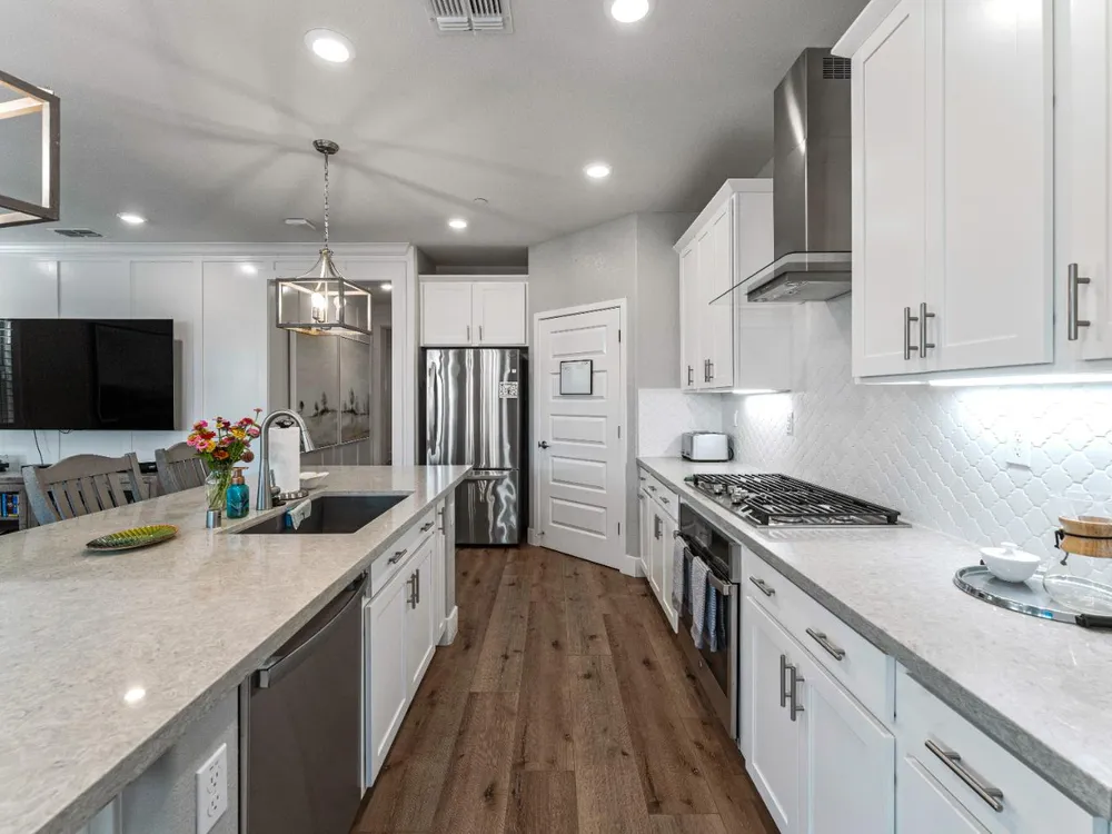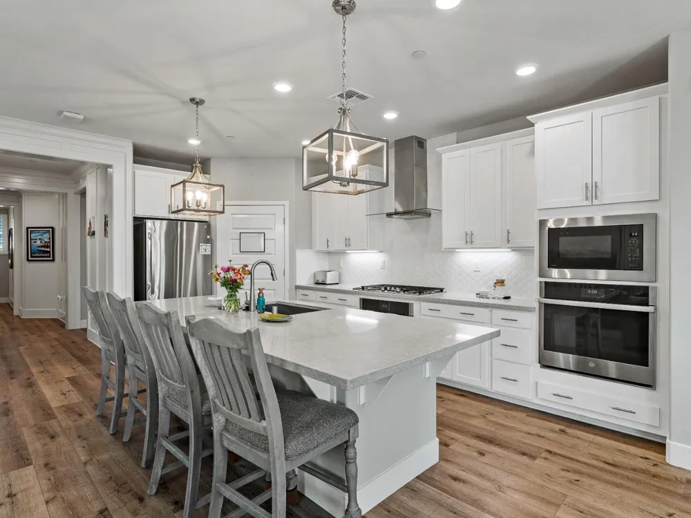- Gas Cooktop, Gas Water Heater, Range Hood, Dishwasher, Disposal, Microwave, Double Oven, Plumbed For Ice Maker, Tankless Water Heater