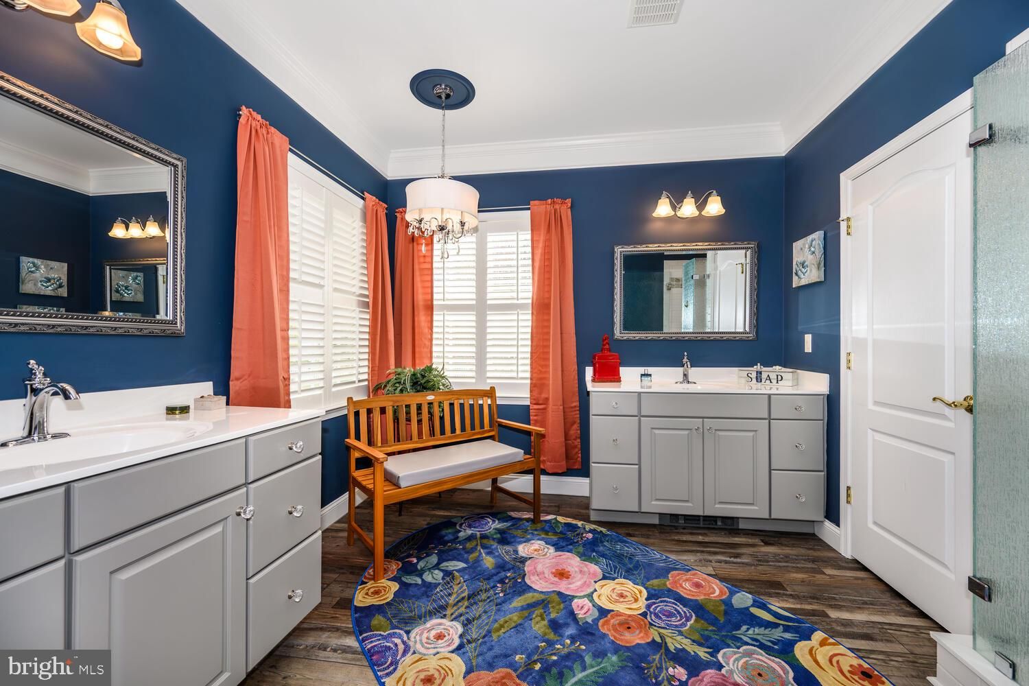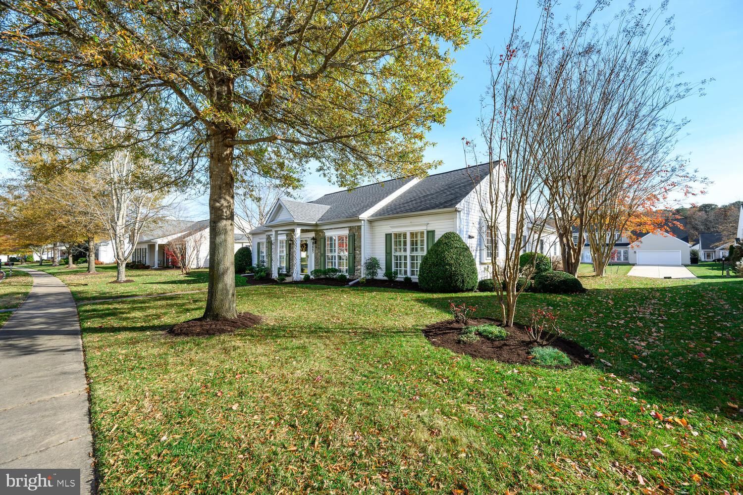 Chesapeake By Del Webb. Immaculate and beautiful one-story Wittman model. Great room with shiplap, cathedral ceiling with wood beams, solar light and gas fireplace. Renovated kitchen with top of the line stainless appliances and Silestone countertops, breakfast nook, center island and LVP flooring. Remodeled primary bath with new vanities and large shower, primary bedroom , guest bedroom, office/den, dining room, sunroom with LVP flooring. Garage has epoxy coated flooring. Rear patio with awning, nicely landscaped with irrigation system and fenced backyard. Roof and HVAC system have been replaced. This home has all the upgrades and is in move-in condition. 55+ age-restricted section. Community clubhouse, exercise rooms, ballroom, meeting room, library, card and craft rooms, outdoor pool, tennis and pickleball courts, bocce ball, horse shoes, exercise paths, picnic areas and putting green. Just minutes to downtown Easton shopping, restaurants, churches and medical facilities. Seller is building new home and prefers a February 1, 2026 occupancy date.