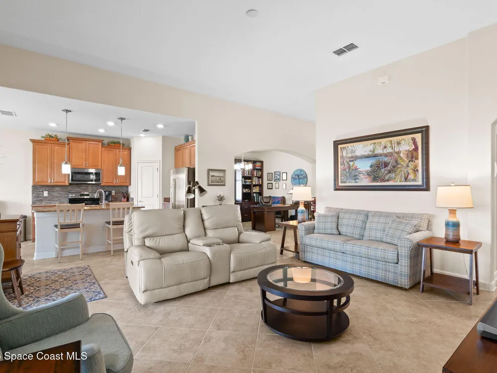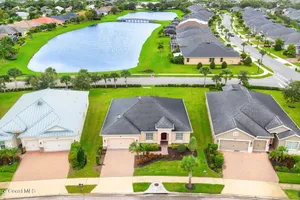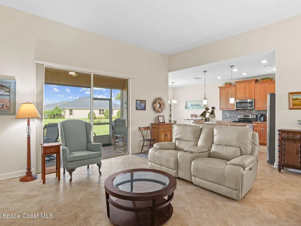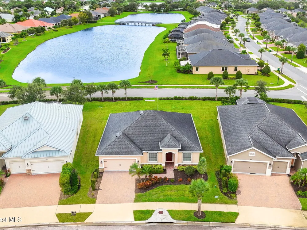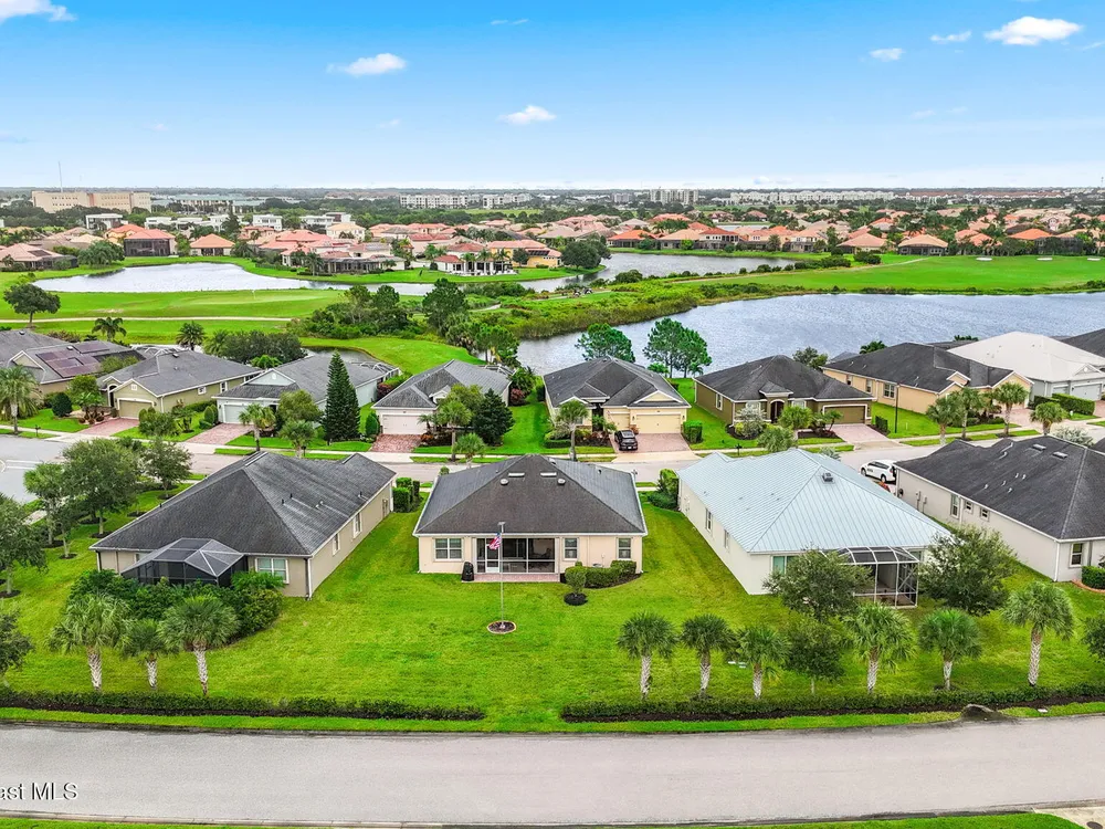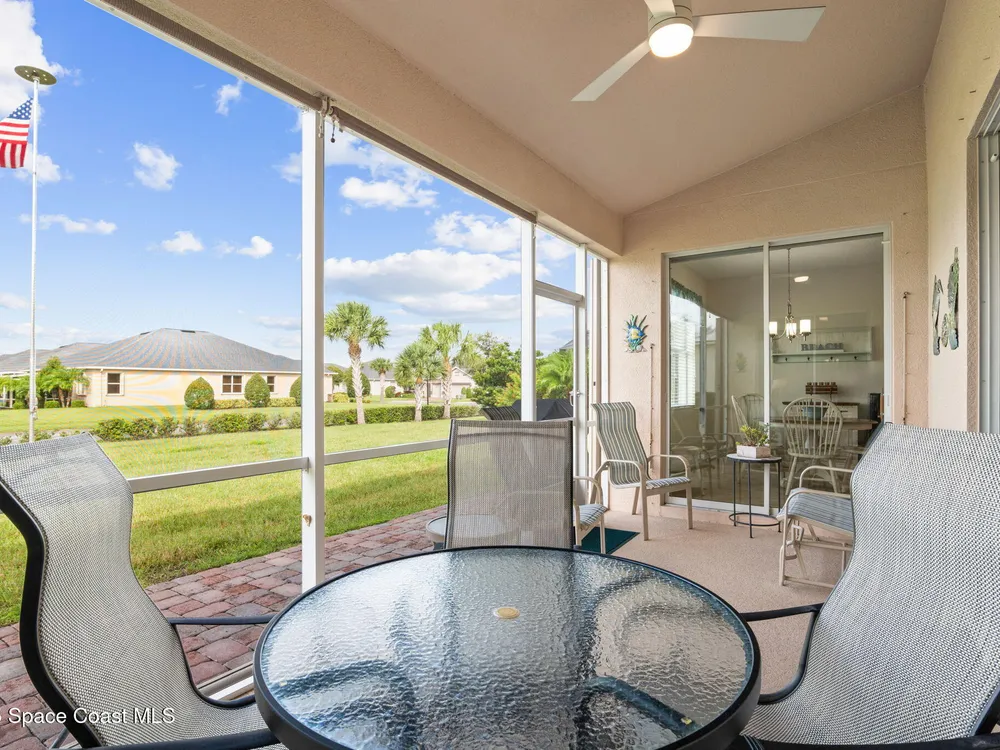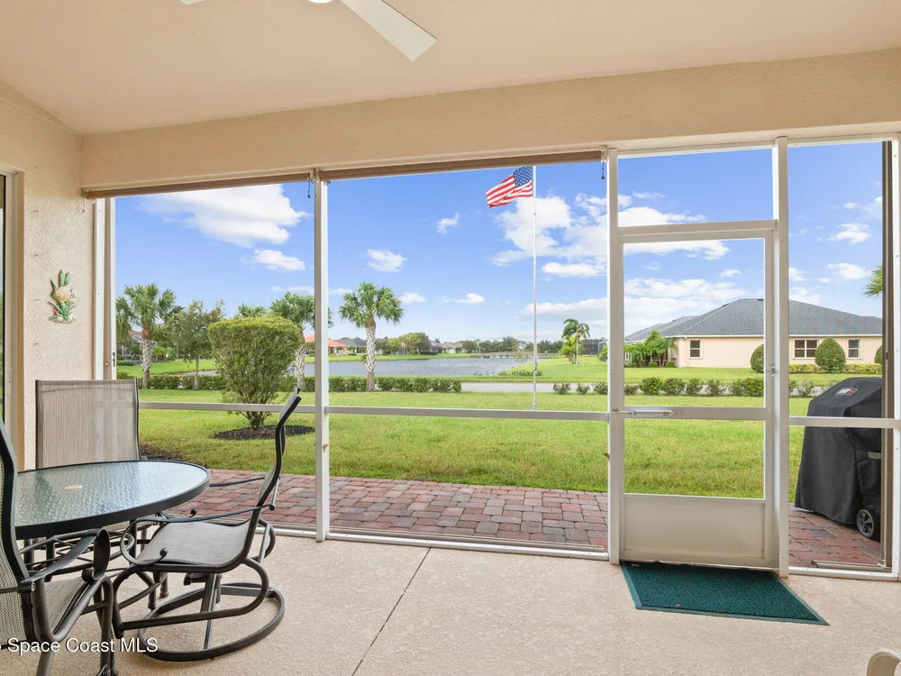 Meticulously maintained 3-bedroom, 2-bath, 2-car garage home, perfectly positioned on a premium lakefront lot with no rear neighbors and breathtaking sunset views. Built in 2016 and owned by only one proud homeowner, this home radiates tremendous pride of ownership. Impeccable landscaping and striking curb appeal. Step inside to find a modern open-concept design with a split-bedroom floor plan. The gourmet kitchen is complete with maple shaker-style cabinetry, granite countertops, and a beautifully coordinated mosaic-tile backsplash. A center island with seating makes it perfect for casual gatherings, while stainless steel appliances complement the overall design. You'll also find a cozy breakfast nook overlooking the lake and a separate dining room currently used as an office—offering flexibility for your lifestyle. The spacious primary suite is a retreat of its own with luxury vinyl plank flooring, a tray ceiling extending the full length of the room, and sliding glass doors that open to the screened-in lanai overlooking the water. You will notice immediately all of the light coming into this room. The walk-in closet includes built-in organizers, while the en-suite bath impresses with dual granite vanities and a massive walk-in shower designed without a tub for a more open, spa-like feel. Additional updates include a 2023 water heater, a new A/C evaporator coil, upgraded attic insulation, and two solar-powered roof exhaust fans for enhanced energy efficiency. As well as maximum resistance storm shutters. The laundry room includes upper cabinets for extra storage, and the garage offers an under-air bonus room, ideal as an office, hobby space, man cave, or she-shed. Located in the award-winning 55+ community of Heritage Isle, you'll enjoy resort-style amenities, a vibrant clubhouse, fitness center, pickleball, tennis, bocce, a large pool, and full lawn and exterior maintenance included.