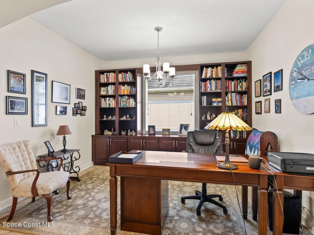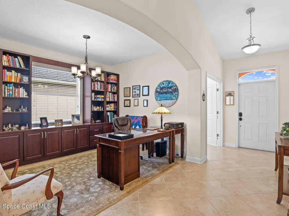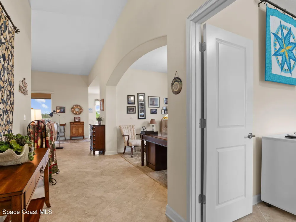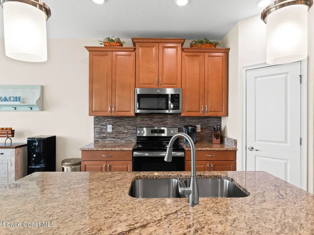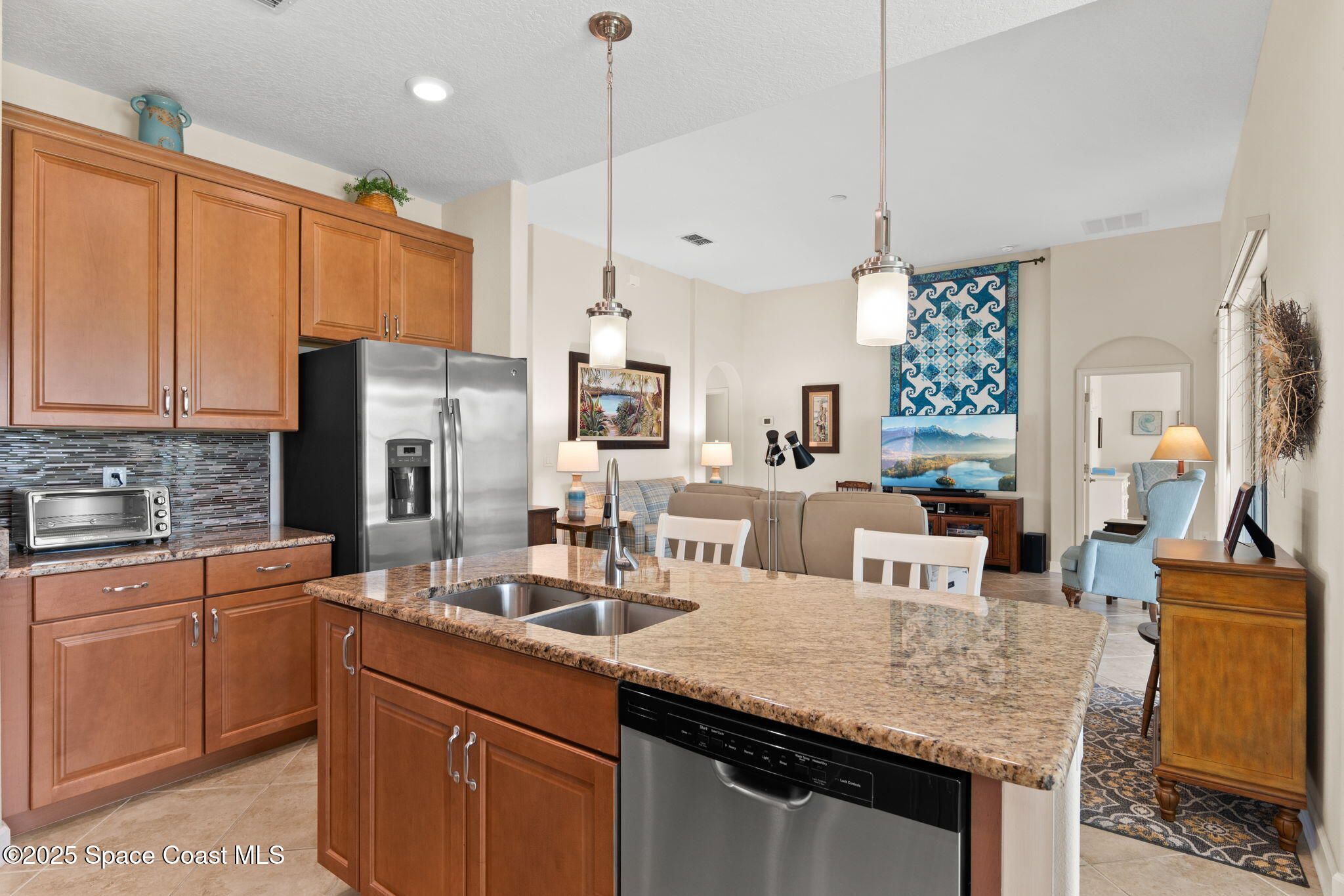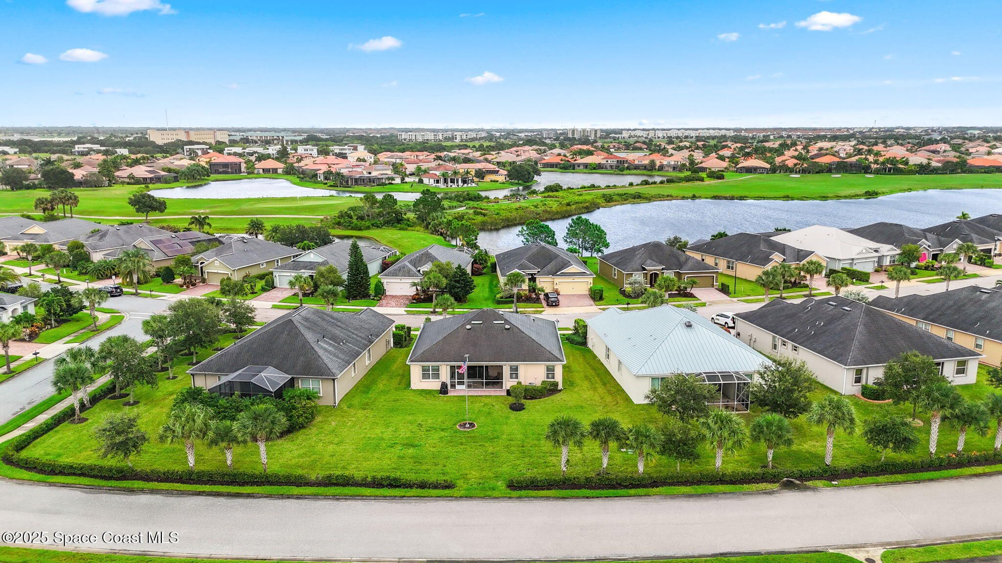 Meticulously maintained 3-bedroom, 2-bath, 2-car garage home, perfectly positioned on a premium lakefront lot with no rear neighbors and breathtaking sunset views. Built in 2016 and owned by only one proud homeowner, this home radiates tremendous pride of ownership. Impeccable landscaping and striking curb appeal. Step inside to find a modern open-concept design with a split-bedroom floor plan. The gourmet kitchen is complete with maple shaker-style cabinetry, granite countertops, and a beautifully coordinated mosaic-tile backsplash. A center island with seating makes it perfect for casual gatherings, while stainless steel appliances complement the overall design. You'll also find a cozy breakfast nook overlooking the lake and a separate dining room currently used as an office—offering flexibility for your lifestyle. The spacious primary suite is a retreat of its own with luxury vinyl plank flooring, a tray ceiling extending the full length of the room, and sliding glass doors that open to the screened-in lanai overlooking the water. You will notice immediately all of the light coming into this room. The walk-in closet includes built-in organizers, while the en-suite bath impresses with dual granite vanities and a massive walk-in shower designed without a tub for a more open, spa-like feel. Additional updates include a 2023 water heater, a new A/C evaporator coil, upgraded attic insulation, and two solar-powered roof exhaust fans for enhanced energy efficiency. As well as maximum resistance storm shutters. The laundry room includes upper cabinets for extra storage, and the garage offers an under-air bonus room, ideal as an office, hobby space, man cave, or she-shed. Located in the award-winning 55+ community of Heritage Isle, you'll enjoy resort-style amenities, a vibrant clubhouse, fitness center, pickleball, tennis, bocce, a large pool, and full lawn and exterior maintenance included.