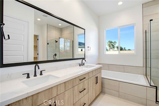 Located in the Prestigious Escena Golf Community in the Palm Springs area. All of our homes include a custom Pool and Spa and many custom designer features. This home, the beautiful Delaney floor plan boasts an open floorplan with 3 bedrooms, a formal dining room, great room and luxurious chefs kitchen with stylish bronze faucets. Quartz kitchen counters including a large kitchen island perfect for entertaining. Amazing GE Monogram appliances including the Built in Refrigerators. Two and a half baths including the primary bedroom with gorgeous ensuite bath, shower and soaking tub. Indoor laundry room with cabinets and sink. Great room has double sliding doors that leads to your expansive covered patio where you can enjoy the fabulous views of the Palm Springs mountains. Gated community, with walking paths, and pet friendly