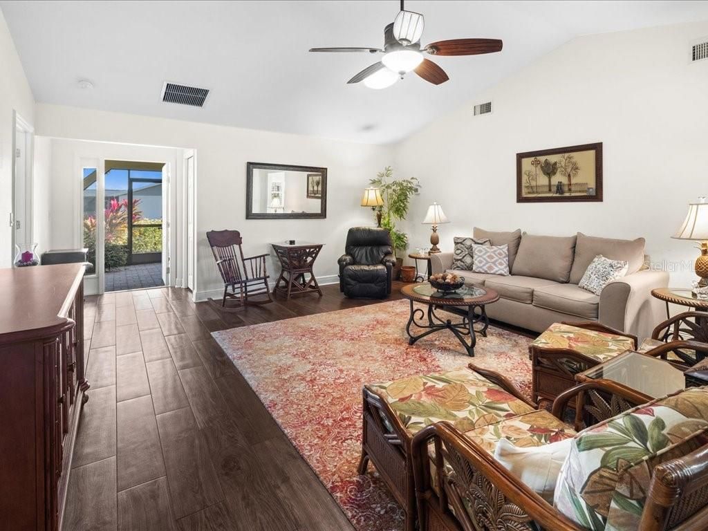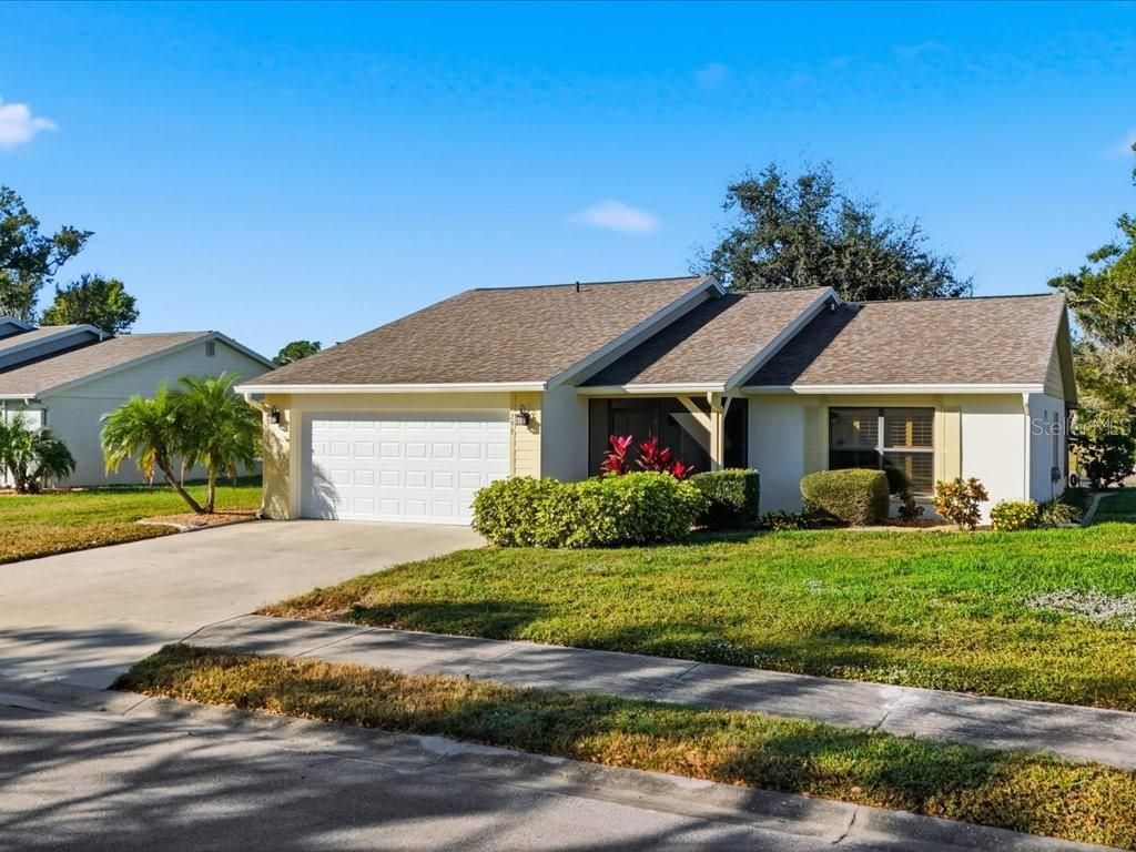 Welcome to your own private slice of paradise! This turnkey home captures the essence of Florida living with a serene water view and a thoughtfully designed, open floor plan. Step inside to relaxing coastal colors, vaulted ceilings, crown molding, upgraded baseboards, wood-grain porcelain tile flooring, and plantation shutters throughout. The updated kitchen blends style and functionality, featuring modern cabinetry, quartz countertops, a decorative backsplash, breakfast bar, and a cozy dinette area—perfect for casual dining and entertaining. Enjoy seamless indoor-outdoor living from the Florida room, your ideal retreat for savoring colorful sunsets or watching wildlife by the pond. Step outside to a separate patio and screened lanai, offering even more space for relaxing or hosting guests. For peace of mind, this home is equipped with impact windows, a hurricane-rated garage door, front door, and shutters. The spacious primary suite is a peaceful escape with a walk-in closet and a beautifully updated ensuite bath featuring an extended vanity with granite countertop and a ceramic tile walk-in shower with glass enclosure. A comfortable guest bedroom suite includes another updated bath with a ceramic tile walk-in shower and glass enclosure, providing ample space and privacy for visitors. As part of an active HOA community, residents enjoy year-round activities including pickleball, tennis, and shuffleboard courts, water aerobics, and a clubhouse for social gatherings. The HOA covers lawn care, exterior painting every seven years, and roof replacement every seventeen years, offering a truly carefree lifestyle. Perfectly located just minutes from several Gulf beaches, shopping, dining, and vibrant Dearborn Street, this home blends comfort, convenience, and coastal charm in one exceptional package.