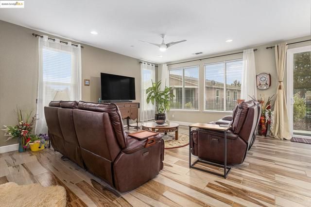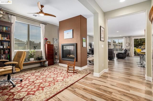 Price Reduced and Ready to Sell! A light and open Reflect plan gives you room to live and entertain with friends and family. The spacious great room concept provides many options for relaxing either by the double-sided gas fireplace or just watching tv. Wood look tile is carried throughout the main living areas with carpet in the bedrooms. The well-appointed kitchen has a large granite island for barstools and informal dining as well as plenty of room for your formal dining space. Kitchen includes a beautiful custom backsplash, custom cabinet pull outs, Touch-Faucet and stainless appliances. The secluded primary bedroom enjoys a slider out to the patio and the bathroom area has a large shower with glass doors and separate vanities with remodeled granite countertops. This home enjoys one of Trilogy’s larger lots with a big side yard with raised beds for more room for the gardener in the family. It has an energy efficient pre-paid solar lease to keep utility bills low. Trilogy is a 55+ active adult community with many activities and clubs to be as busy as you like, or you can choose to relax at home.