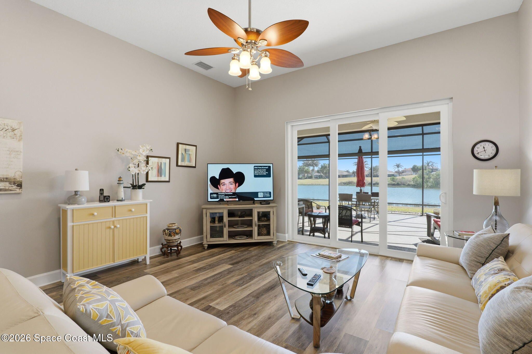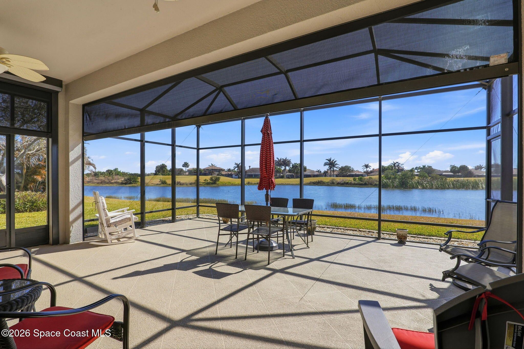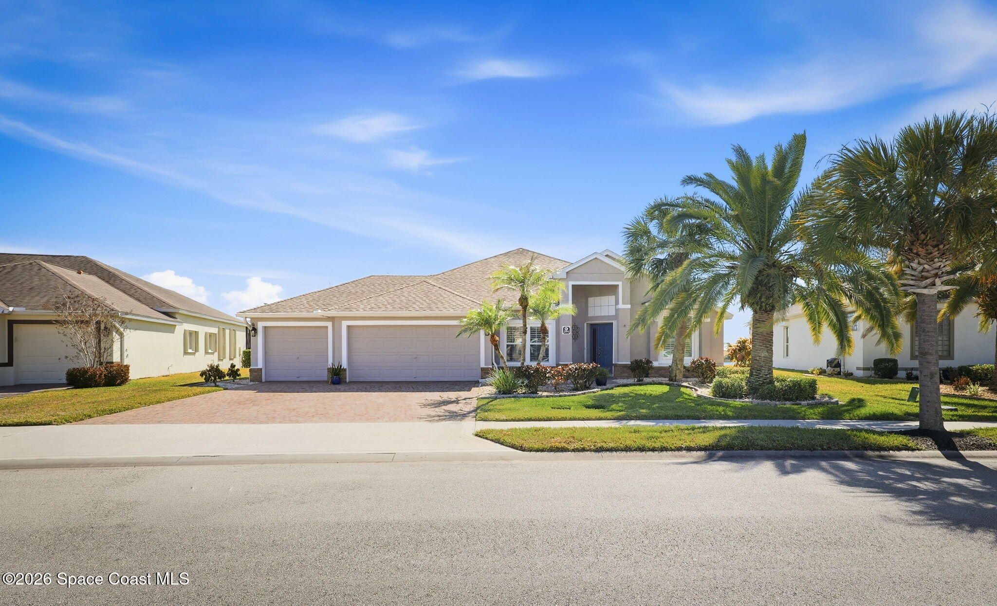 Welcome to this beautifully maintained one of a kind 3-bedroom, 2-bath Estate home located in sought after 55+ Heritage Isle Community. Enjoy serene waterfront and golf course views from your backyard and abundant natural light throughout the home. The updated kitchen and bathrooms feature modern finishes such as quartz countertops, under cabinet lighting and soft close cabinet doors. Tile and laminate flooring throughout home complemented by impact glass windows enhanced with thoughtfully appointed plantation shutters for peace of mind and energy efficiency. Spacious three car garage offers ample storage and convenience. Gain the confidence you deserve with professionally installed hurricane screens, offering quick and convenient storm protection with a touch of a button while enjoying shade and privacy the rest of the year. This home combines comfort, style, and low maintenance living in a prime location perfect for relaxing and entertaining. Located in a premier 55+ guard -gated, golf cart friendly community with lawn care included. Enjoy a 20,000 sq. ft. clubhouse with a restaurant, bar, gym, ballroom, spa, pool, pickleball, tennis and more. Minutes from hospitals, shopping, dinning & close to Duran's championship 18 hole golf course.