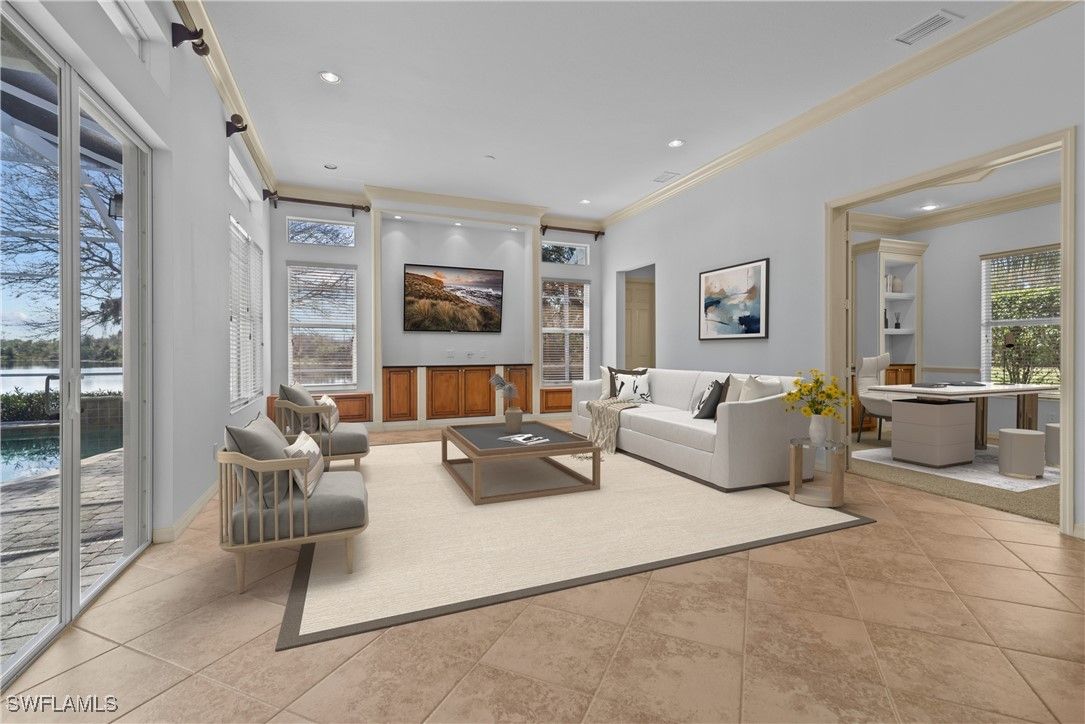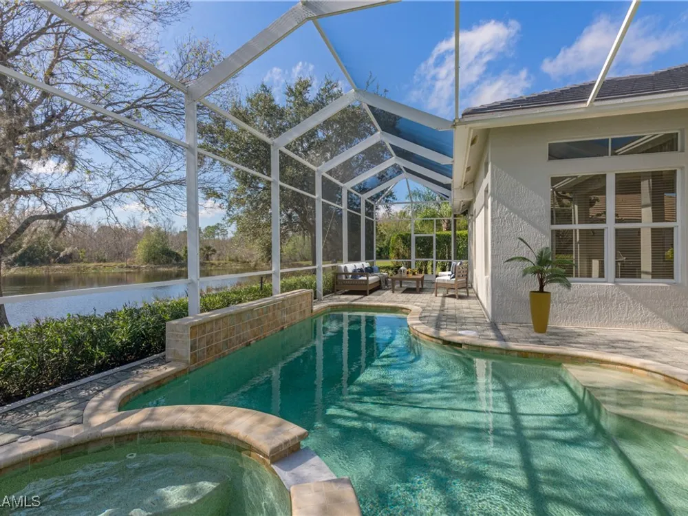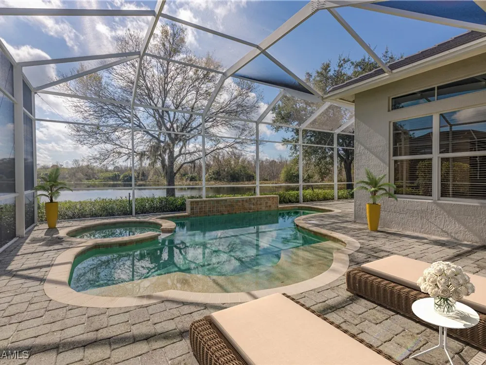 NEW ROOF NEW AC Welcome to Paradise - Cascades at River Hall – a 55+ Gated Community! This stunning single-family home was a former builder model (largest model offered) and boasts multiple upgrades throughout, including 3 bedrooms, plus den, 3 full bathrooms, 2-car garage, 11’ ceiling height, and sits on the best lot in the entire subdivision – with both large lake and preserve views. Enjoy the best of Florida with the existing pool, spa and outdoor kitchen! The home features a beautifully appointed office with built-in cabinetry, granite countertops, upgraded GE Profile appliances, and hurricane resistant impact windows. The home also includes upgraded lighting fixtures, a TV accent wall capable of accommodating a large format TV, and decorative wallpaper and custom carpentry / trim work for added luxury and sophistication. SOME OF THE PICTURES ARE VIRTUALLY STAGED WITH FURNITURE The home is not located in a flood zone, sustained no damage from any storms, and has low CDD fees ($507.24). The home has a brand-new roof (installed in late 2024), was recently repainted (2024), the garage door motor was replaced (2024), has two new air conditioning units (installed in 2023), and the patio was recently rescreened (2023). The Amenities center features a community pool, fitness center, yoga studio, tennis, bocce and pickleball courts.