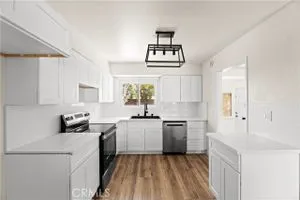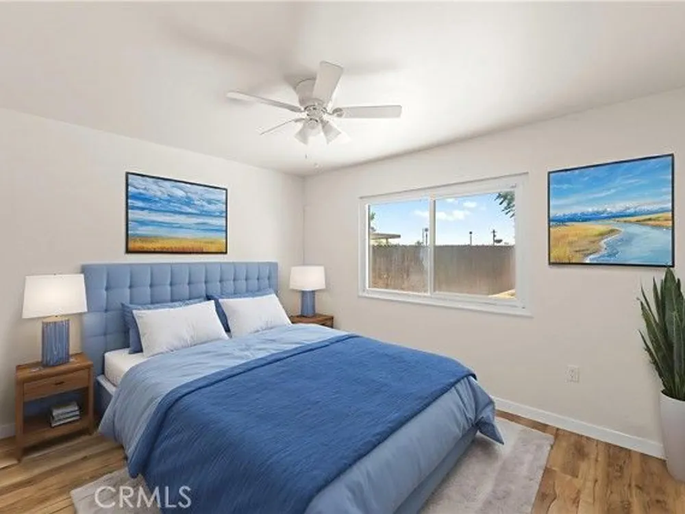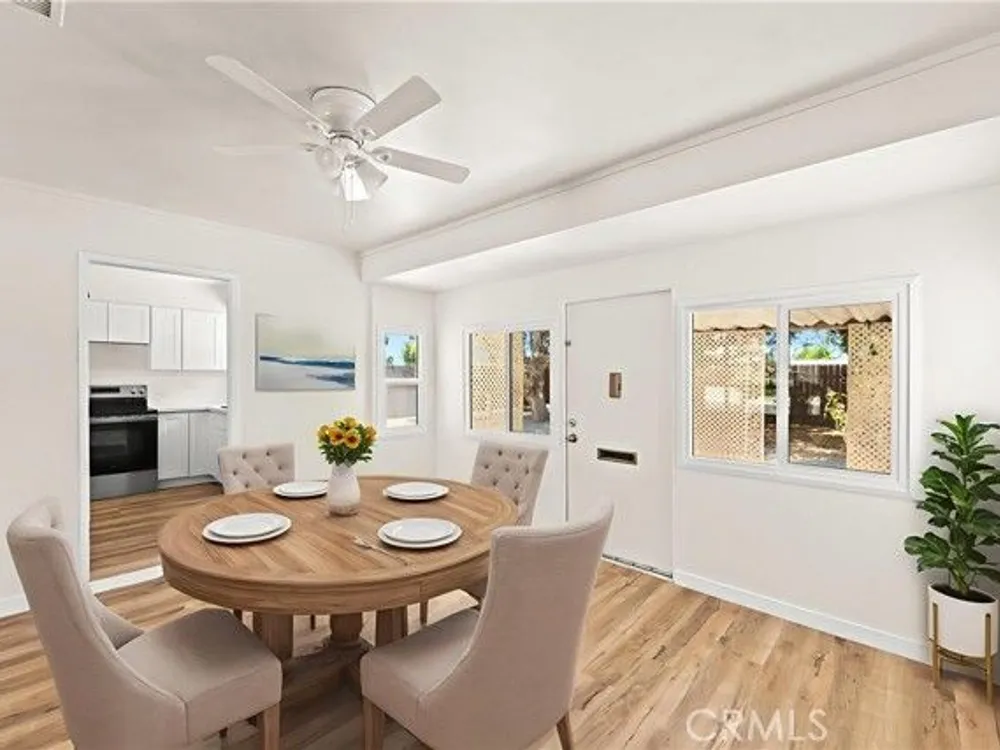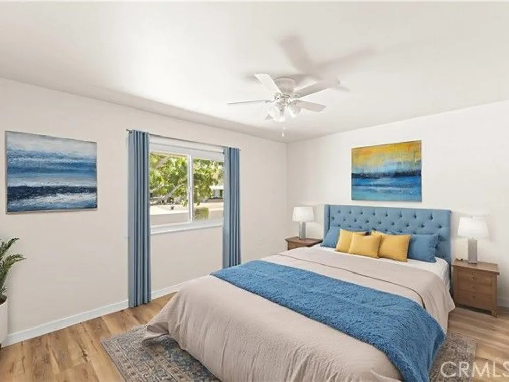 Remodeled and upgraded! A charming single-family home located in a tranquil 55+ community. This cozy residence offers 2 bedrooms and 1 bathroom within a 992 sq ft floor plan, situated on a 6,534 sq ft lot. Built in 1964, the home features a well-maintained interior with new flooring throughout and an enclosed patio. The front yard is beautifully landscaped with a variety of fruit trees, including a navel orange tree, lemon tree, fig tree, and magnolia tree. The backyard is enclosed with a 6-foot wooden fence, providing privacy and a peaceful outdoor space. Residents of this community enjoy amenities such as a clubhouse and a year-round pool, fostering a social and active lifestyle. All appliances included: refrigerator, dishwasher, stove, washer/dryer.