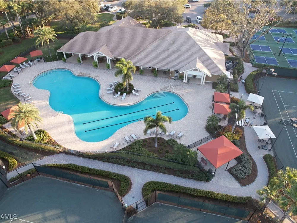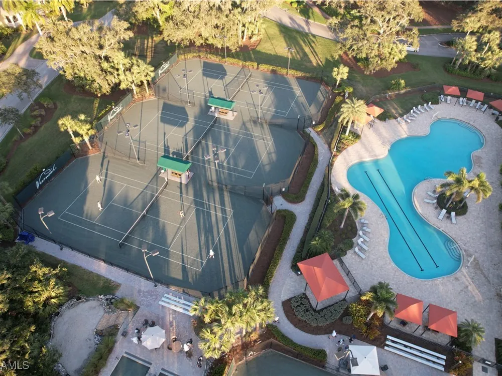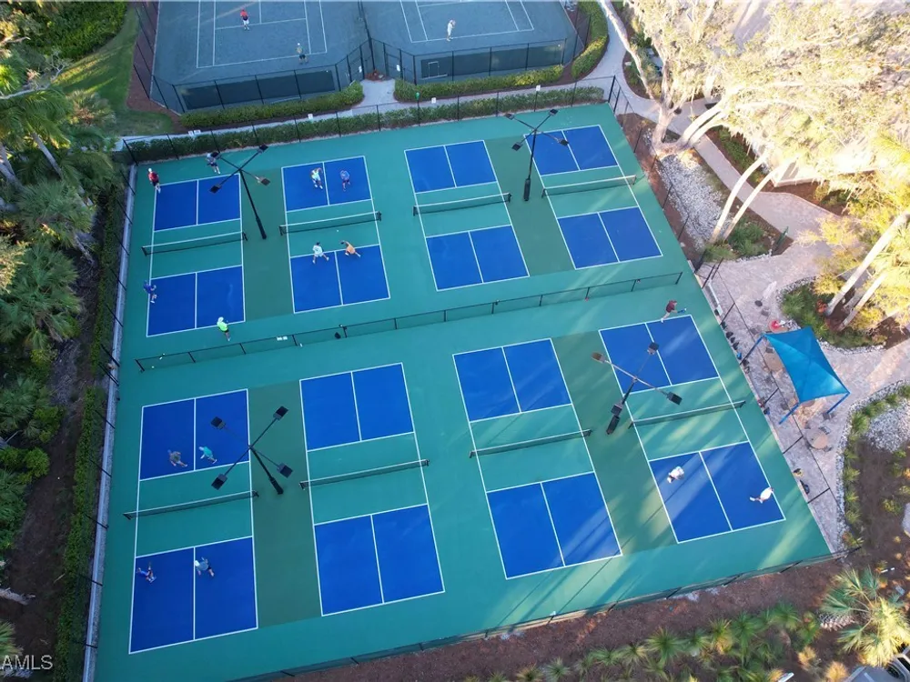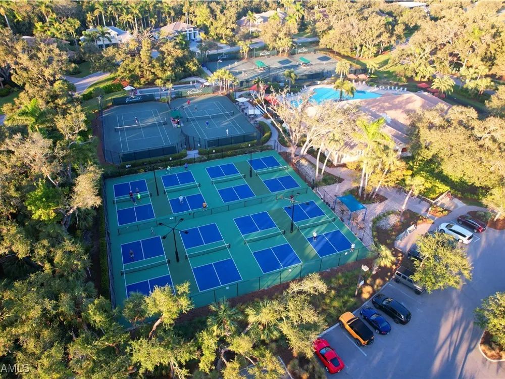 - Includes: Bocce Court, Business Center, Clubhouse, Dog Park, Fitness Center, Golf Course, Hobby Room, Library, Pier, Playground, Pickleball, Park, Private Membership, Pool, Putting Green(s), Restaurant, Sidewalks, Tennis Court(s), Trail(s), Management