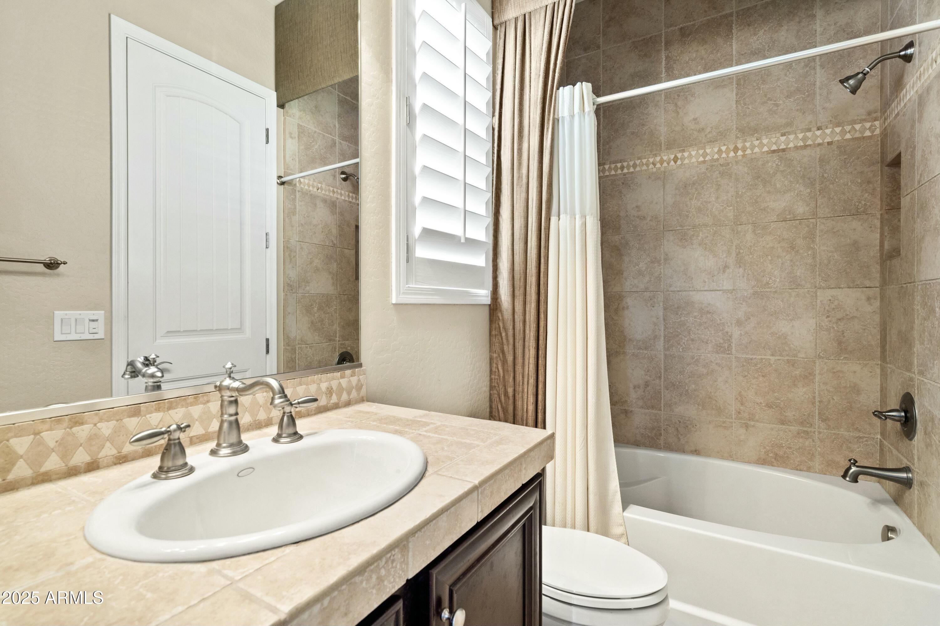 Spectacular Libertas floor plan backing pristine desert wash with a heated and cooled pool! Mature landscaping grace front and back yards with a luxurious cobblestone courtyard to welcome guests. The resort-style backyard boasts a fully equipped built-in BBQ, 400 sq ft of covered patio, an outdoor fireplace, ceiling fans & automatic sunshades. Designer travertine tile and rich hardwood flooring throughout. The gourmet kitchen features granite countertops with premium stainless-steel appliances. Custom plantation shutters accent every room for enhanced privacy and elegance. The temperature-controlled garage features high-end epoxy floors with a pop-out for extra storage & workstation. Enjoy living in a 55+ resort-style community with championship golf and country club amenities! OUTDOOR PARADISE: - Private courtyard with pavers, fountain, and new decorative wrought iron gate - Gorgeous fountain entrance with lush ferns and vine - Motorized outdoor shades for year-round comfort - Solar-heated and cooled Pebble-Tec pool with spillover spa - Built-in gas BBQ with rotisserie burner and dual storage drawers - Stone gas fireplace with new gas log set and built-in TV unit - Motorized sunshade and surround sound system - Extended paver patio and artificial turf - Landscape boulders and brand new irrigation system - Control unit for pool/jacuzzi operations DESIGNER INTERIOR: - Gorgeous travertine tile flooring throughout main areas - Hardwood floors in bedrooms - Custom built-ins in the den/office, guest bedroom, and great room - Electric fireplace in the great room with decorative tile hearth - Zebra sheer roller shades and plantation shutters throughout - Southwest blinds and ceiling fans - Recent interior painting GOURMET KITCHEN: - Granite slab countertops with rich, staggered cabinetry - Luxury stainless-steel appliance package - Built-in appliances including new microwave - Kinetico reverse osmosis water system - Menmax ice maker PREMIUM GARAGE & UTILITY: - 2-car garage with 4-foot bump-out extension - New split HVAC for climate control - Epoxy flooring with wall-mounted built-in cabinets - Custom built-in workstation - Loew's washer and dryer - Utility sink ADVANCED SYSTEMS & TECHNOLOGY: - Solar panel system for energy efficiency - New HVAC system - New water heater - New Kinetico water softener system - New Reverse osmosis system - Smart pool/jacuzzi control unit