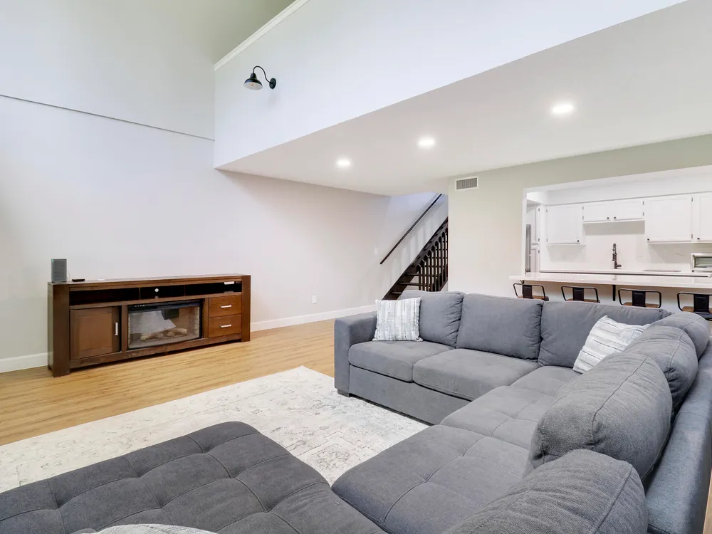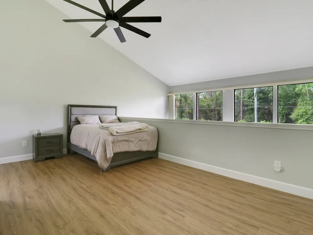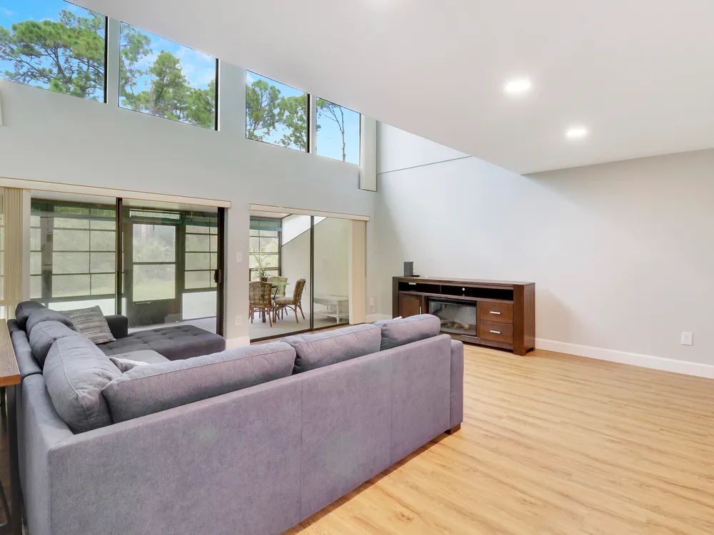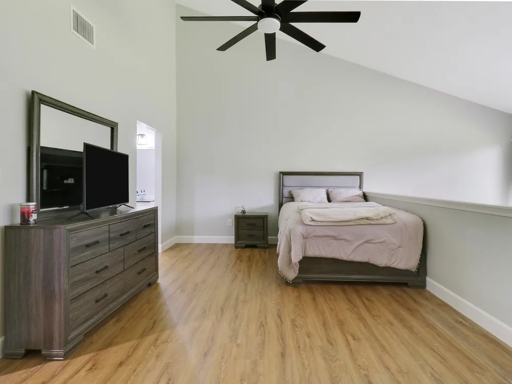 - Cathedral Ceiling(s), High Ceilings, Family Room, Upper Level Primary, Separate Shower
