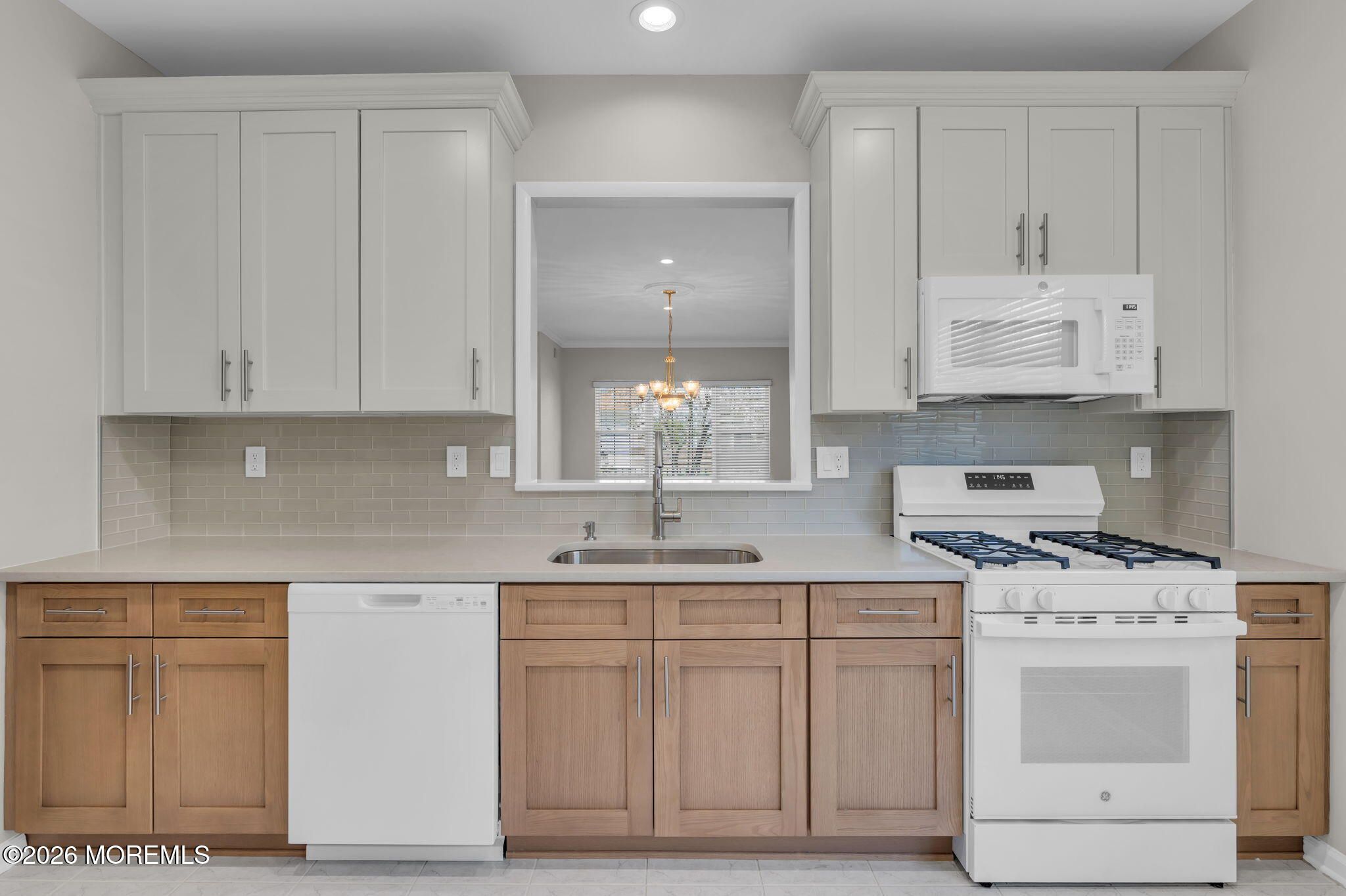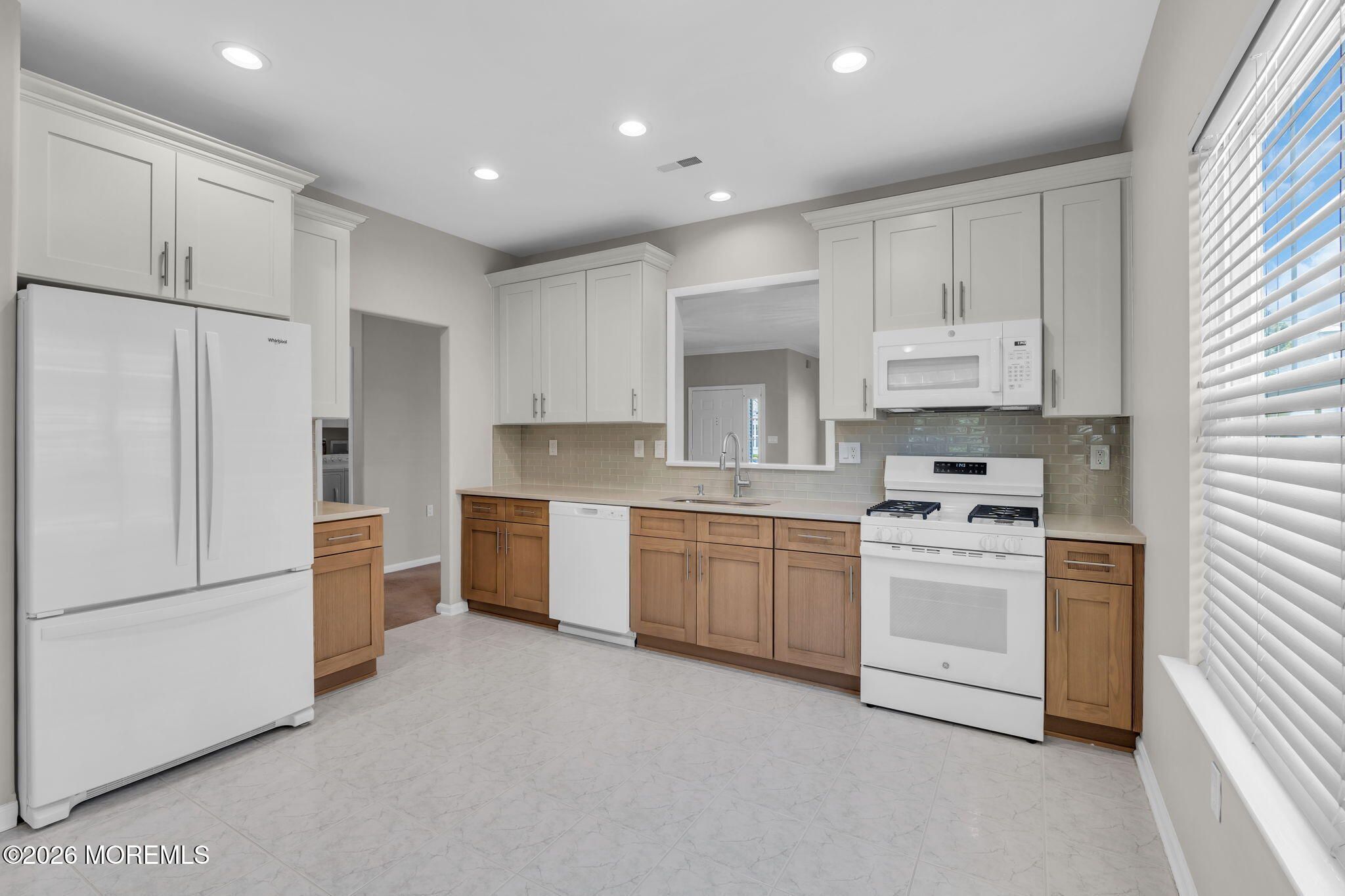 This is the home you've been waiting for! Welcome to 3 Belvedere Dr. S located in the prestigious gated-community, Renaissance at Manchester, a luxury resort-style living experience without the need to ever go through the TSA line. Conveniently situated across the street from the Annex building and Clubhouse, this move in ready Aragon Extended model consists of 2 bedrooms, 2 full bathrooms, a covered front porch entry perfect for sitting and greeting your neighbors and a single car garage with enough space for a car and a golf cart. Featuring a beautifully renovated kitchen with brand new 42'' cabinets, quartz countertops and an all-new appliance package including gas cooking. The primary ensuite has been fully renovated with a double-sink vanity and a curb-less shower stall with glass sliding doors, bench seating, and an oversized niche. Freshly painted throughout, and all of the carpets have been professionally cleaned. Enjoy the oversized paver patio located just off the open kitchen and living area. Surrounded by mature trees for added privacy, it's the perfect spot to sip your morning coffee or simply unwind. Residents of Renaissance enjoy a premier lifestyle with access to over 70+ active clubs and an impressive suite of world-class amenities. At the heart of the community sits a state-of-the-art fitness center, indoor and outdoor swimming pools & hot-tubs, sauna, and an 18-hole Arthur Hills-designed golf course. Whether you are hitting the tennis, shuffleboard, pickleball, or bocce courts, or relaxing in the café, billiards room, library, craft rooms, and woodworking shop, there is truly something for everyone. The community even caters to visiting family, offering a children's playground and a variety of fun-filled seasonal events specifically geared toward grandchildren. With a full calendar of social events and activities, this community perfectly combines comfort and convenience in one of New Jersey's most desirable 55+ neighborhoods. Set up your tour today!