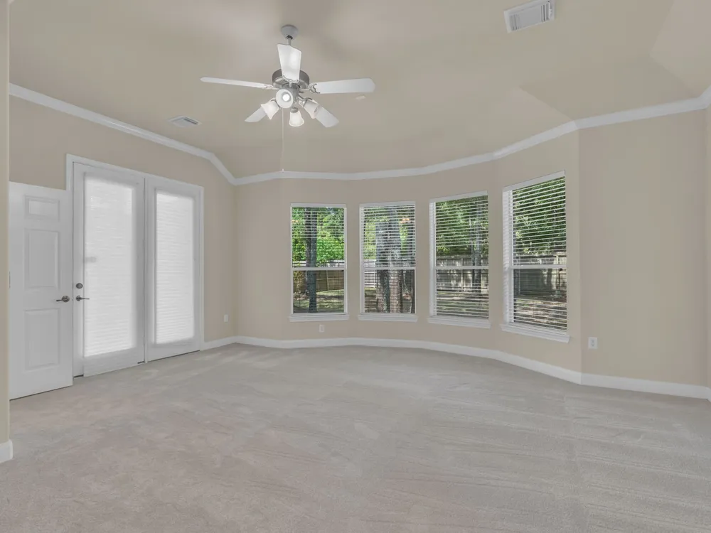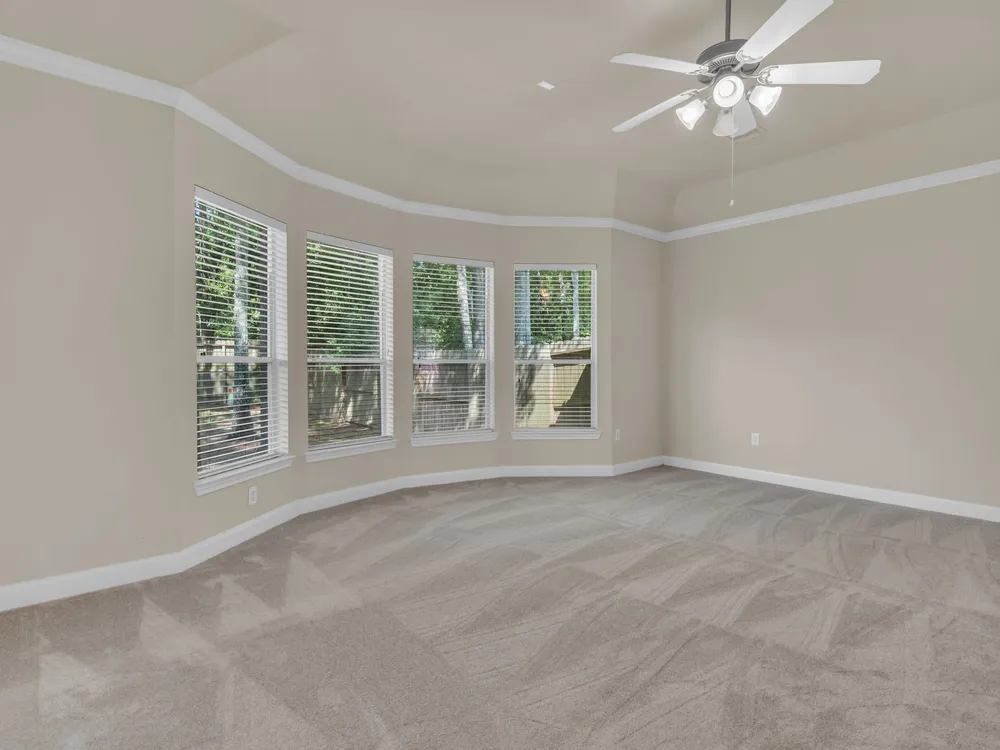 This is the home everyone has been waiting for. The Doral by Village Builders in the 55+ community of Windsor Lakes in The Woodlands, WITH A THREE-CAR GARAGE! Home is just over 2500 sf, 3 bedrooms, 2.5 bathrooms, plus a study and formal dining room. Home backs to woods for privacy and beautiful view. Oversized lot on cul-de-sac street. Home has been meticulously cared for and is in move-in condition. Windsor Lakes is a private, gated community of 572 homes with a clubhouse, full-time support staff, pool, pickleball courts, ballroom, fitness center, billiards room, craft room, library, lake with picturesque bridges and island, walking trails, and more. Conveniently located near the intersection of I45 and Hwy 242, just minutes from hospitals, medical offices, restaurants, shopping, and everything The Woodlands has to offer.