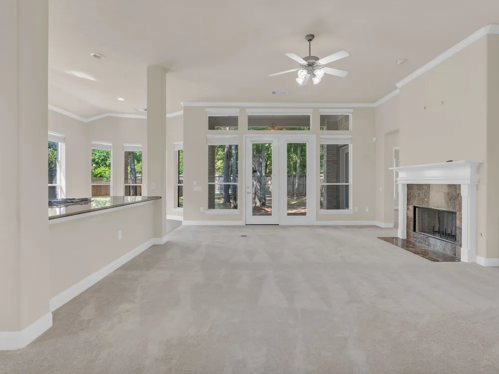 - Atrium, Breakfast Bar, Crown Molding, Double Vanity, Entrance Foyer, French Door(s)/Atrium Door(s), High Ceilings, Jetted Tub, Kitchen Island, Pots & Pan Drawers, Pantry, Separate Shower, Walk-In Pantry, Wired for Sound, Ceiling Fan(s)