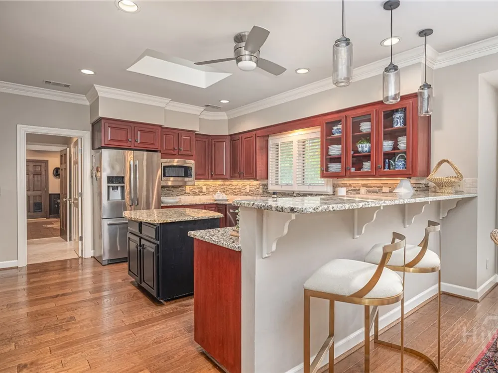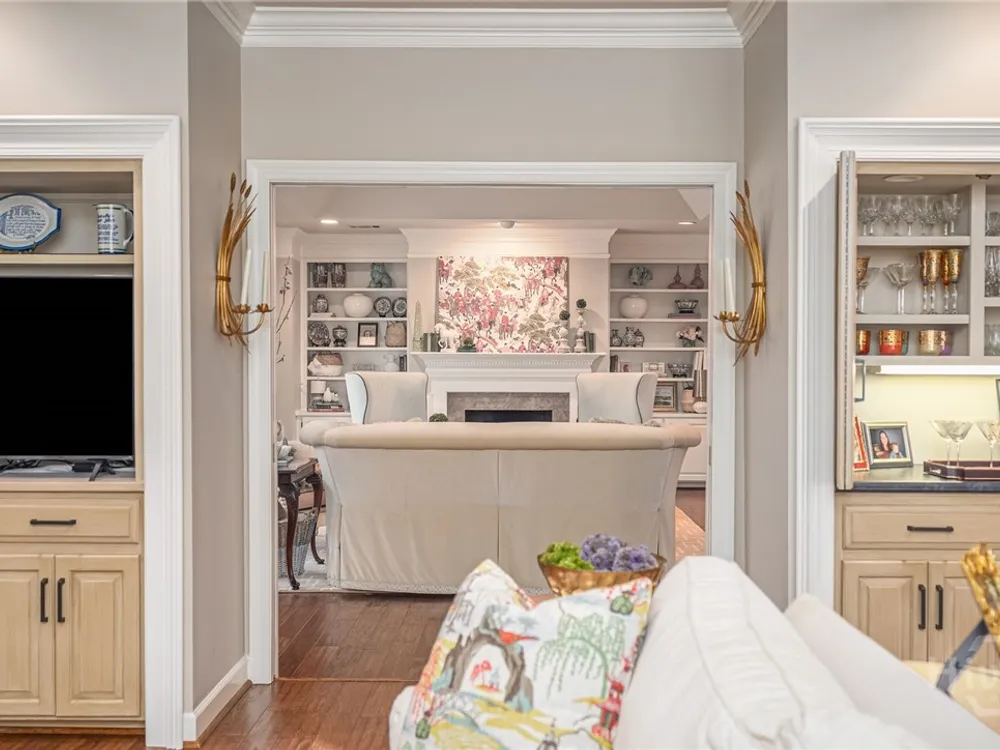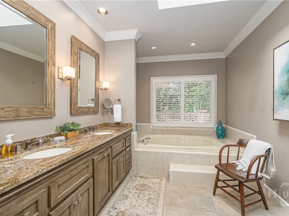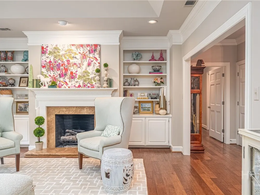 - Built-in Features, Breakfast Area, Bathtub, Tray Ceiling(s), Ceiling Fan(s), Double Vanity, Entrance Foyer, Fireplace, Kitchen Island, Main Level Primary, Pantry, Pull Down Attic Stairs, Recessed Lighting, Separate Shower