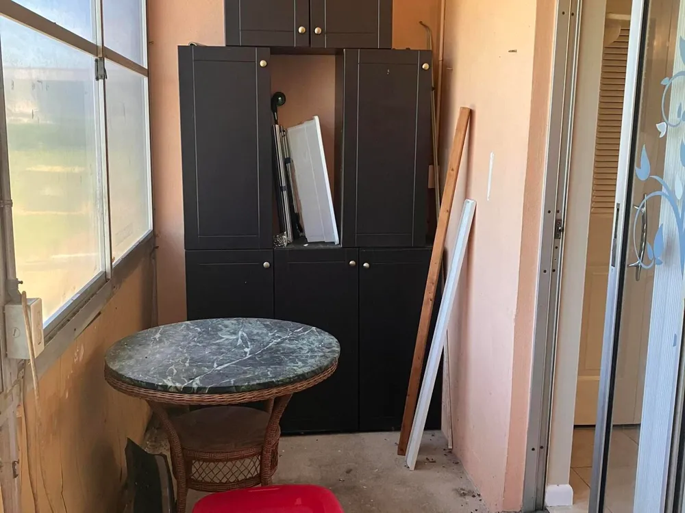 - Pantry, Living/Dining Room, Single Hung Metal Window(s), Window Vertical(s), Tub Shower, Storm Shutters