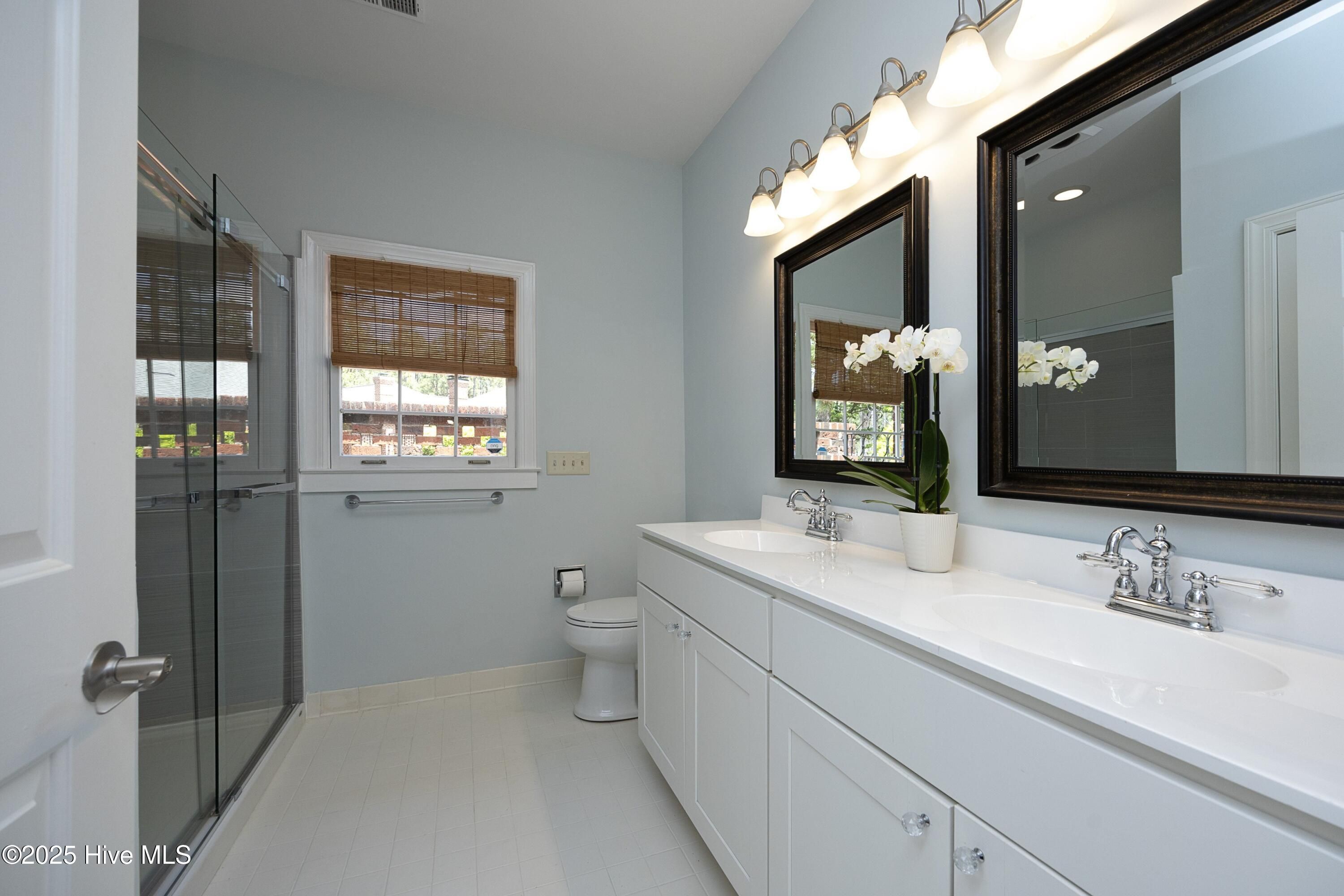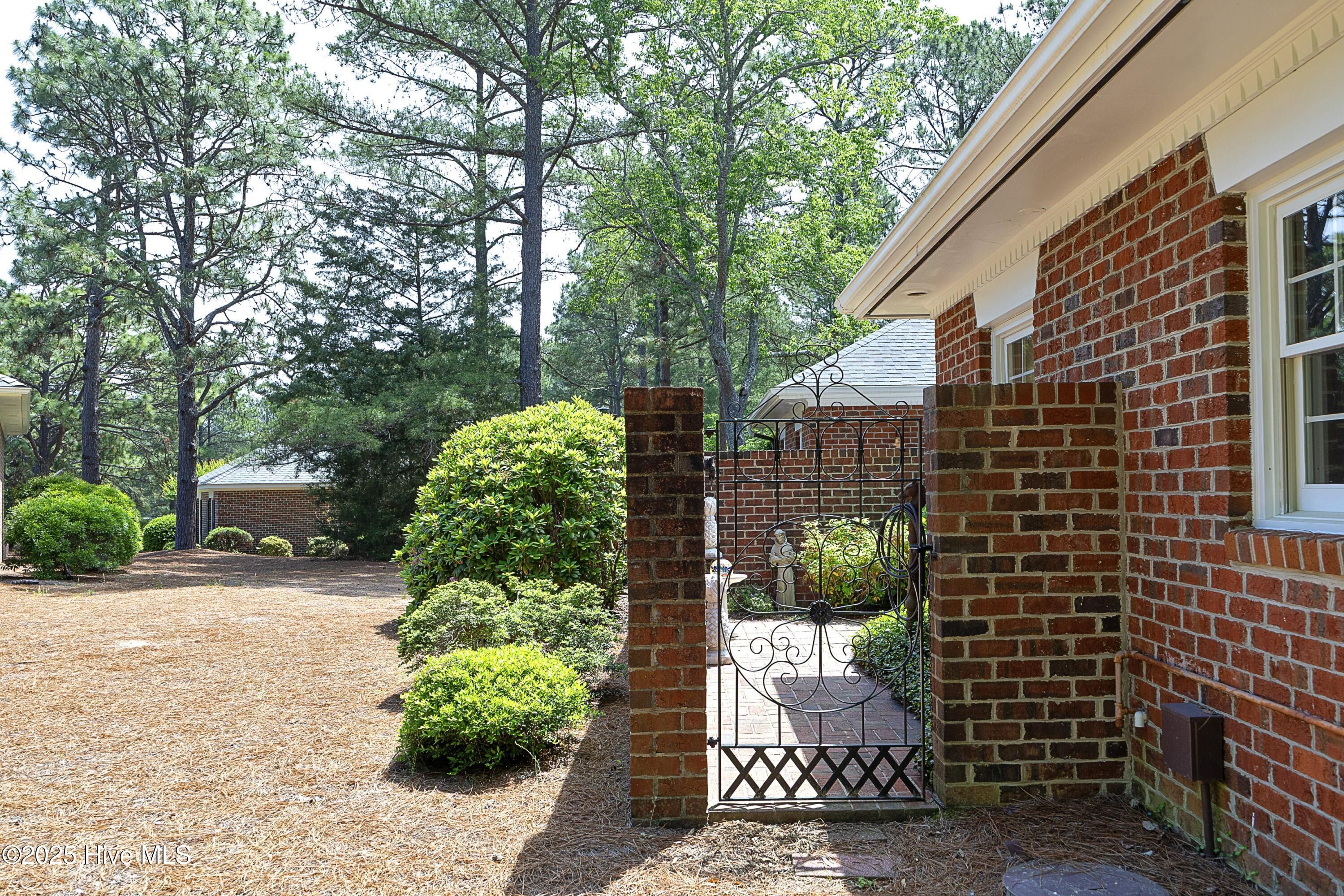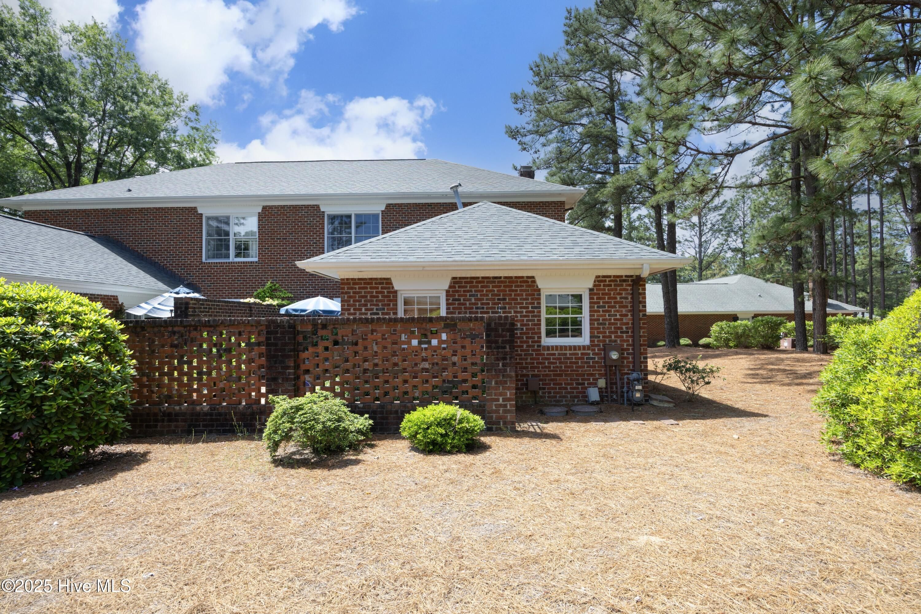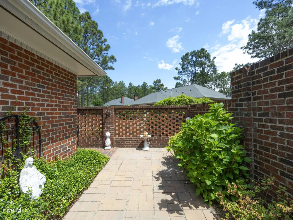 Located in one of the area's most coveted townhome neighborhoods & convenient to Southern Pines with its charming streets, boutiques & restaurants as well as steps away from golf at Pine Needles & Mid-Pines golf resorts, this beautifully updated & appointed townhome has all you need for year-round or part-time living. Nestled in among a quaint townhome neighborhood with brick exteriors & stately pine trees & magnolias, residents enjoy privacy, serenity & lock and leave living. The HOA covers everything from lawn maintenance to roof blowing, termite protection & so much more. Step inside & discover a two-level foyer which sets the stage for what's to follow. Fall in love with the spacious living room with a fireplace that opens to a formal dining room. The kitchen is bright & cheery with uplifting wallpaper, white cabinetry with solid surface counters & stainless Samsung appliances. Let's not forget about the courtyard view from the kitchen window which features a walled brick courtyard, beautiful hydrangeas & privacy. The main floor also hosts a bedroom suite with a large closet and access to the courtyard. The bath is perfect with double sinks & a walk-in shower. There's also a powder room just off the foyer. Upstairs is an upper primary bedroom with amazing views of the Carolina blue sky, large magnolias, & fountain that marks the entry to Middleton Place. This room is large enough for a king bed as well as a seating area focused around a second fireplace. A third bedroom and/or office faces the back of the house with views of the courtyard. A bathroom connects the two bedrooms. This townhome has wood floors that warm the main level and newly installed carpet on the upper level. The home has been freshly painted with soothing colors and has wallpaper in several rooms adding a classic touch. Come explore Southern Pines and the nearby Village of Pinehurst where world-class golf, a charming town & a vibrant village make each day feel like you're on vacation!