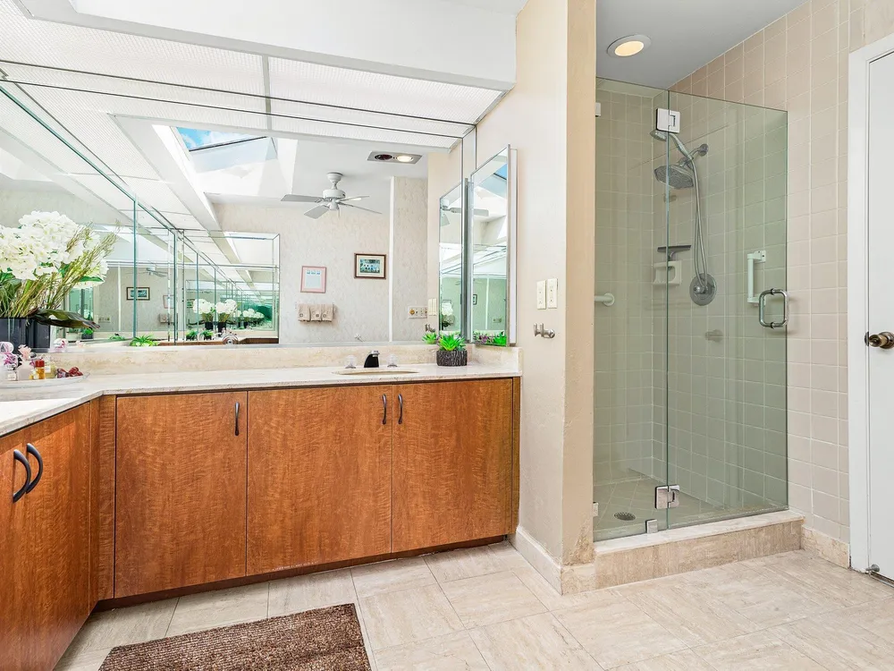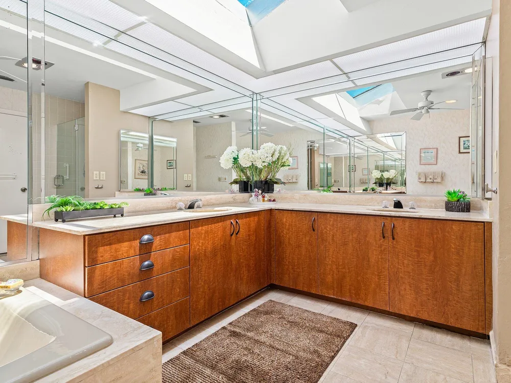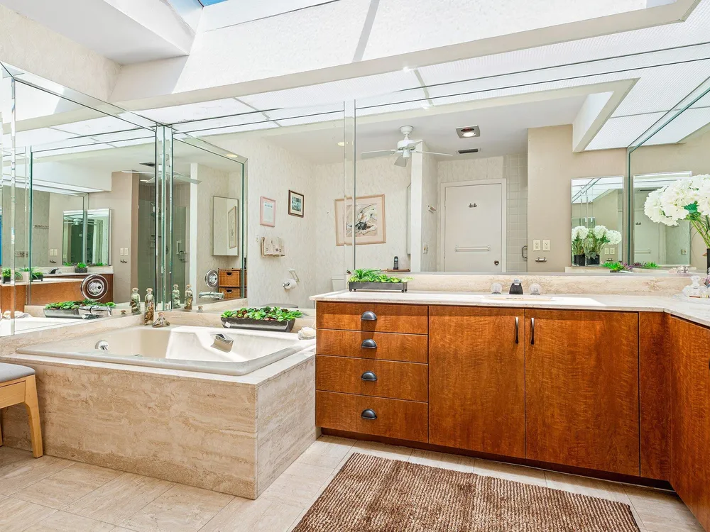 - Bar, Built-in Shelving, Cathedral Ceiling(s), Entrance Foyer, Garden Tub/Roman Tub, Skylights, Stacked Bedrooms, Walk-In Closet(s), Converted Bedroom, Living/Dining Room, Eat-in Kitchen, Single Hung Metal Window(s), Sliding Window(s), Dual Sinks, Separate Shower, Bathtub