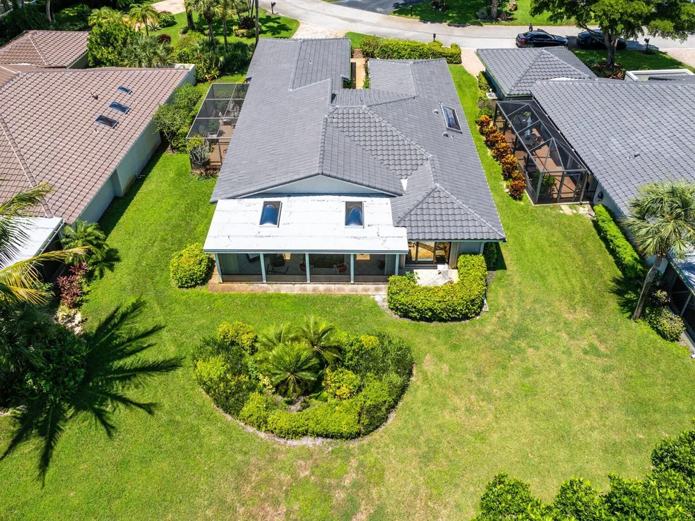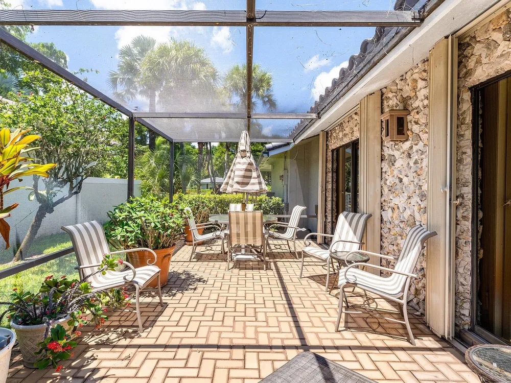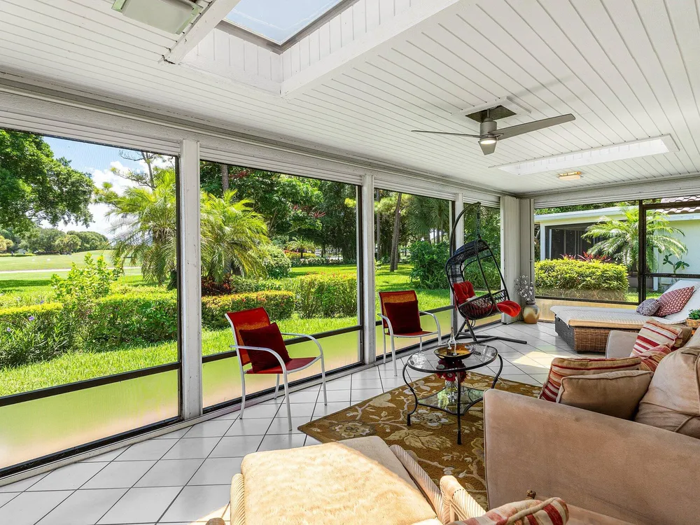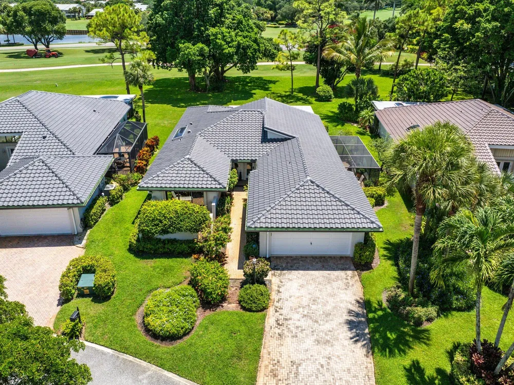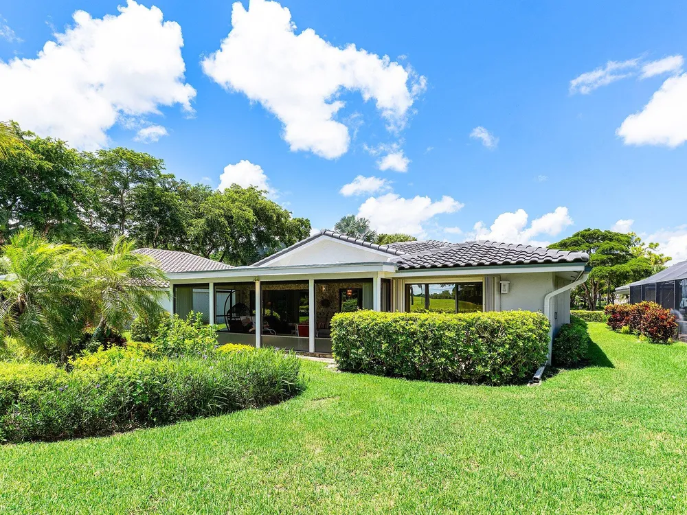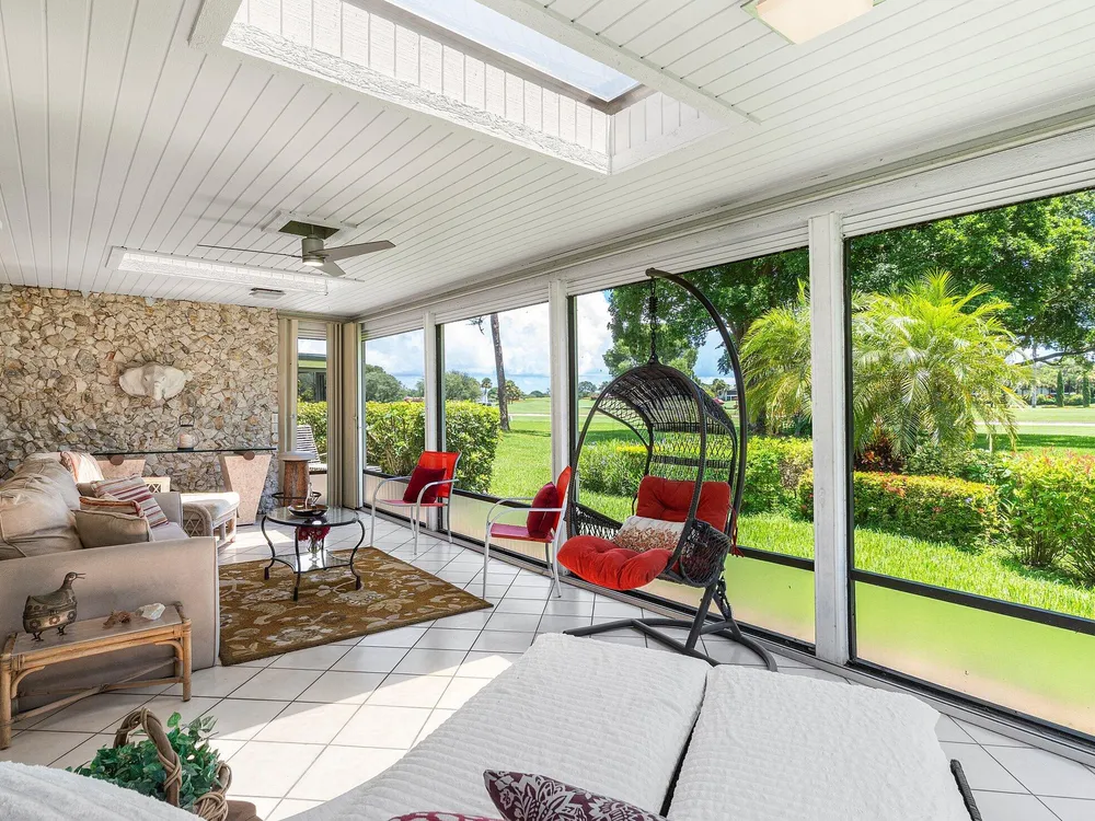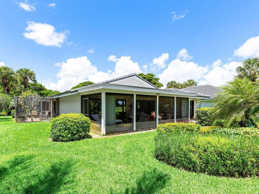Premium pool-lot home in the quiet enclave of Glens East at Hunters Run Country Club. This 2 bedroom + den residence features stunning east-facing views of the water and golf course. The great-room style layout offers 2,280sf of comfortable living space adorned with wet-bar vaulted ceilings, and clerestory windows. Two oversized bedroom suites offer private bathrooms, and generous closet space. Other highlights include an eat-in kitchen and two car garage. Enjoy beautiful sunrises on the screened porch and host a Sunday barbecue on the open-air patio. Just add a private pool to complete your Florida oasis! All club amenities are just a short walk or golf-cart ride away. The best of private club living is waiting for you!