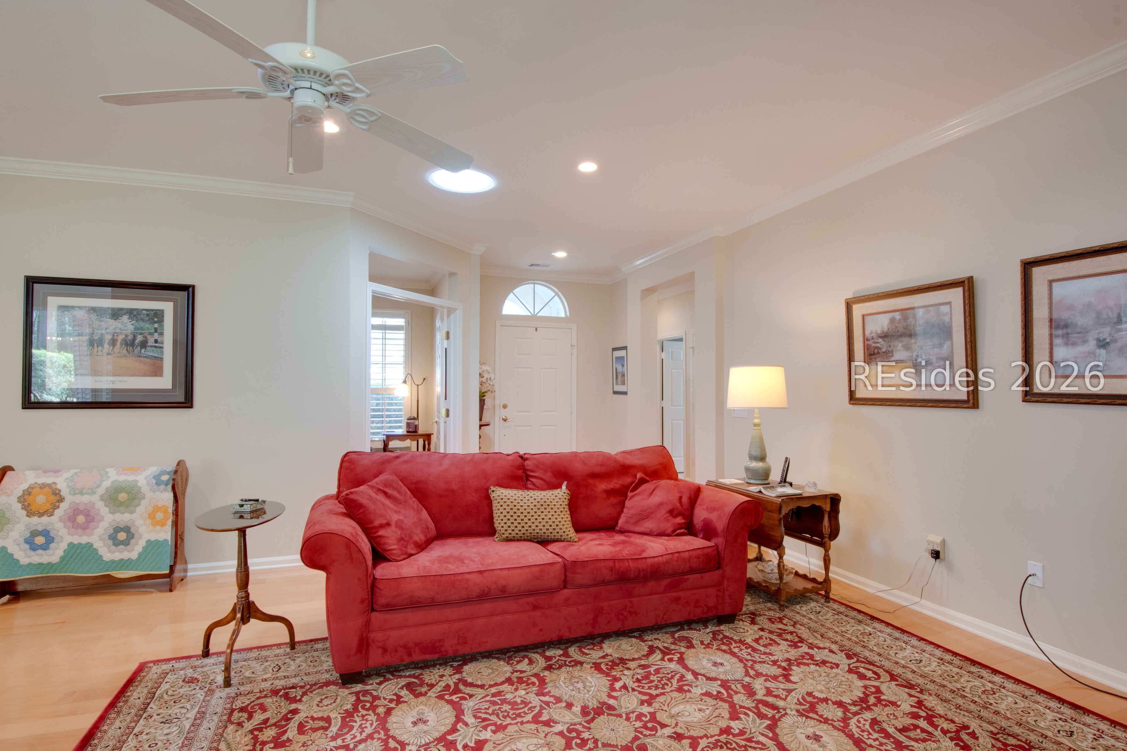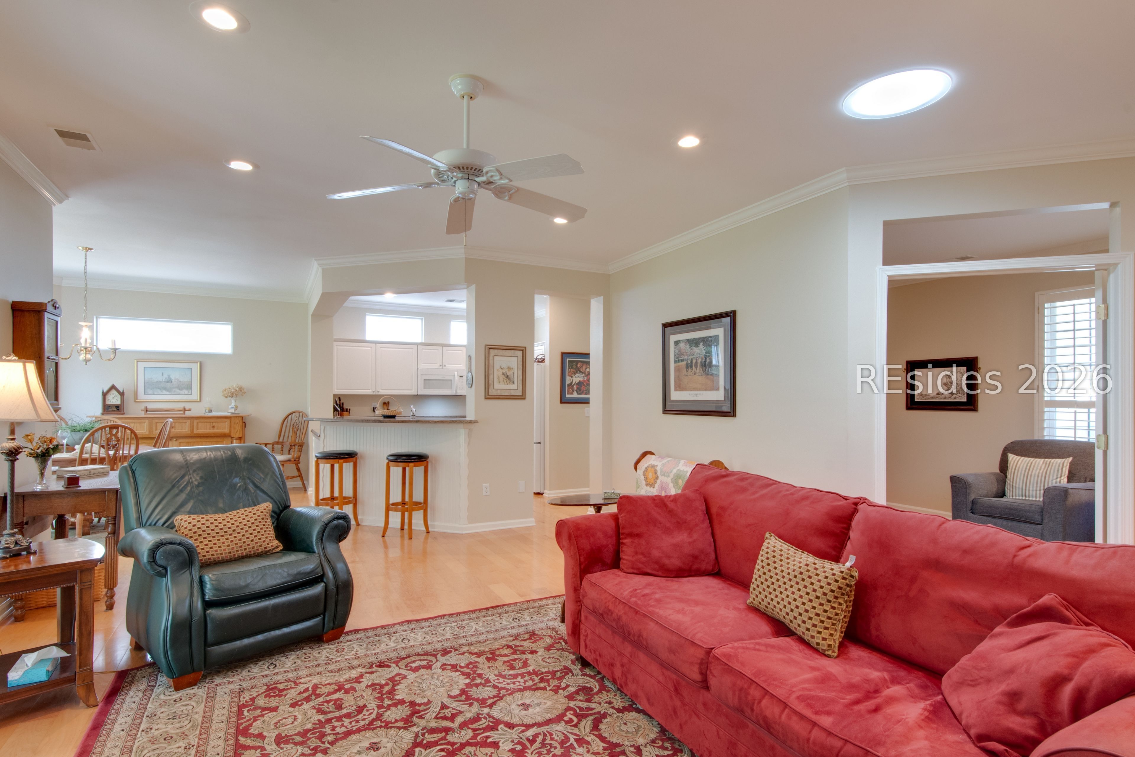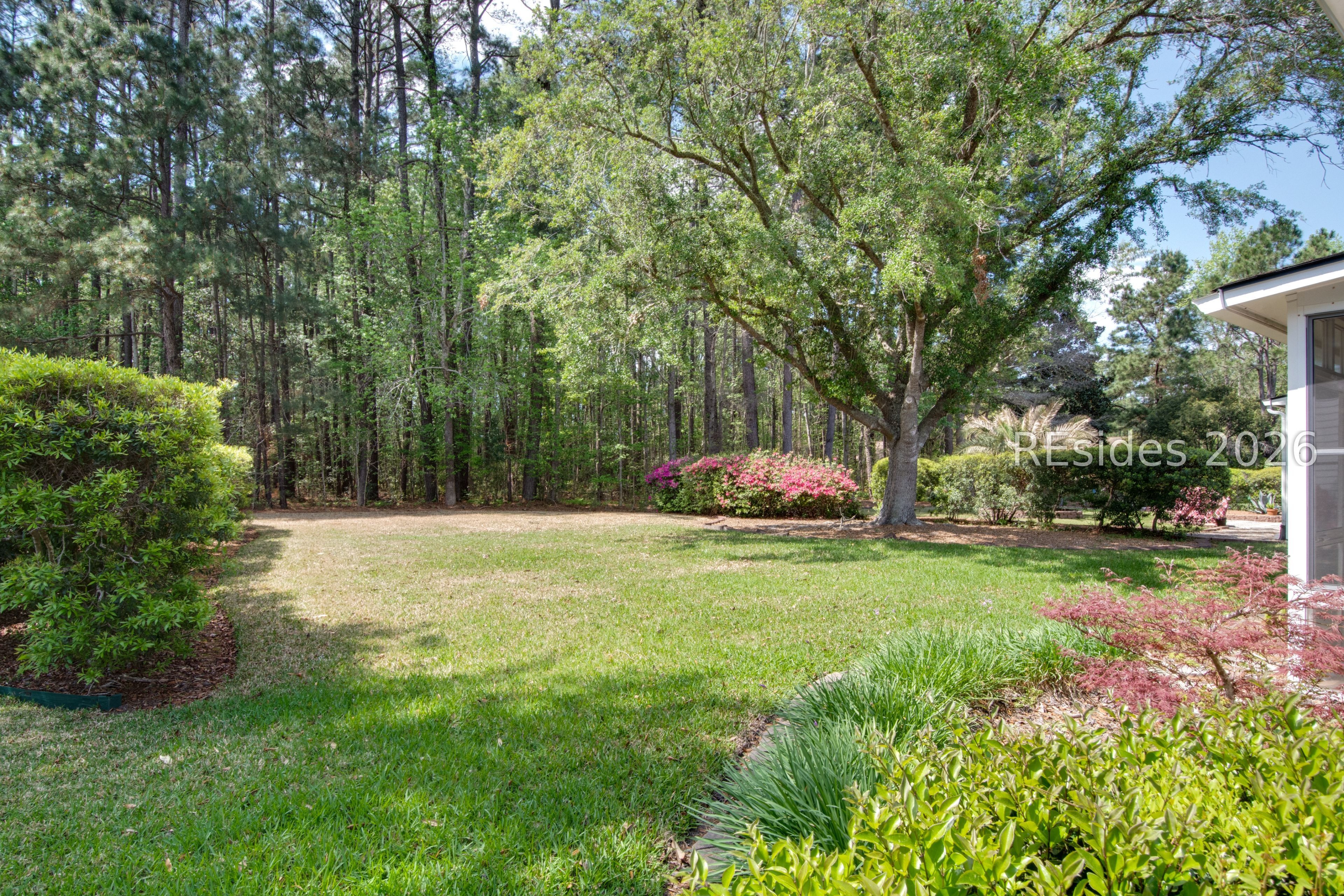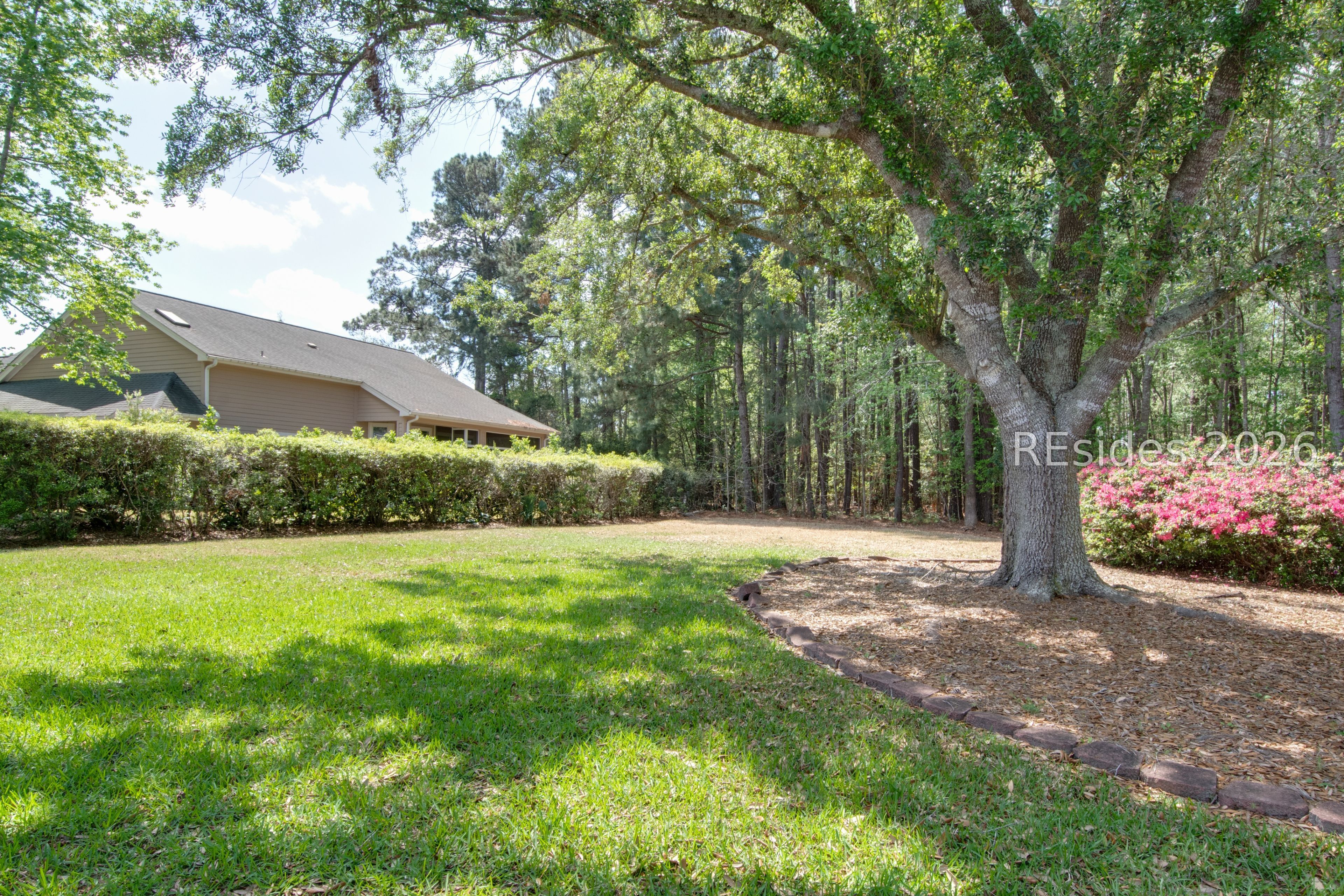 Beautiful Del Webb home with Hardiplank siding, ideally situated near the Lake Somerset area in Sun City Hilton Head. This floor plan was one of Del Webb more popular plans. The inviting Great Room features an 8-foot slider that opens to an extended enclosed porch, perfect for relaxing or entertaining. A charming dining area with a bay window flows into the light-filled kitchen, highlighted by clerestory windows, granite countertops, breakfast bar, and pantry. The primary suite offers a bay window, private access to the porch, a large walk-in closet, and an updated bath with a walk-in shower. A guest bedroom with bay window and adjoining bath provides comfort for visitors, while the den with solid doors offers flexibility as a home office or additional sleeping space. Enjoy the expanded enclosed porch with vinyl windows and screens, overlooking a deep, private backyard with a peaceful wooded backdrop. Additional features wood and tile flooring throughout, a laundry room and a two-car garage, brick paver walkway and driveway. Ideally located within the community, you're just a short walk to Lake Somerset, Town Square, Okatie Creek Clubhouse, and the scenic 3-mile walking trail - offering the best of Lowcountry living right outside your door.