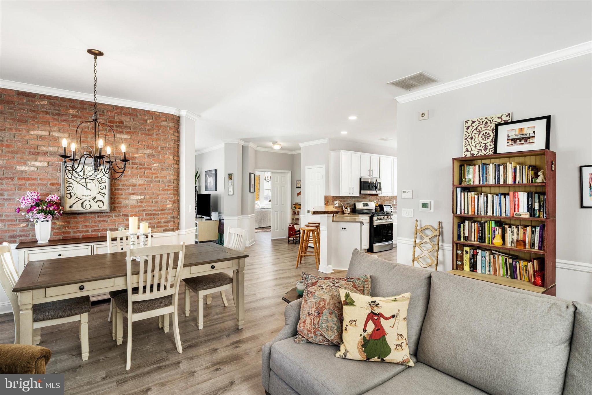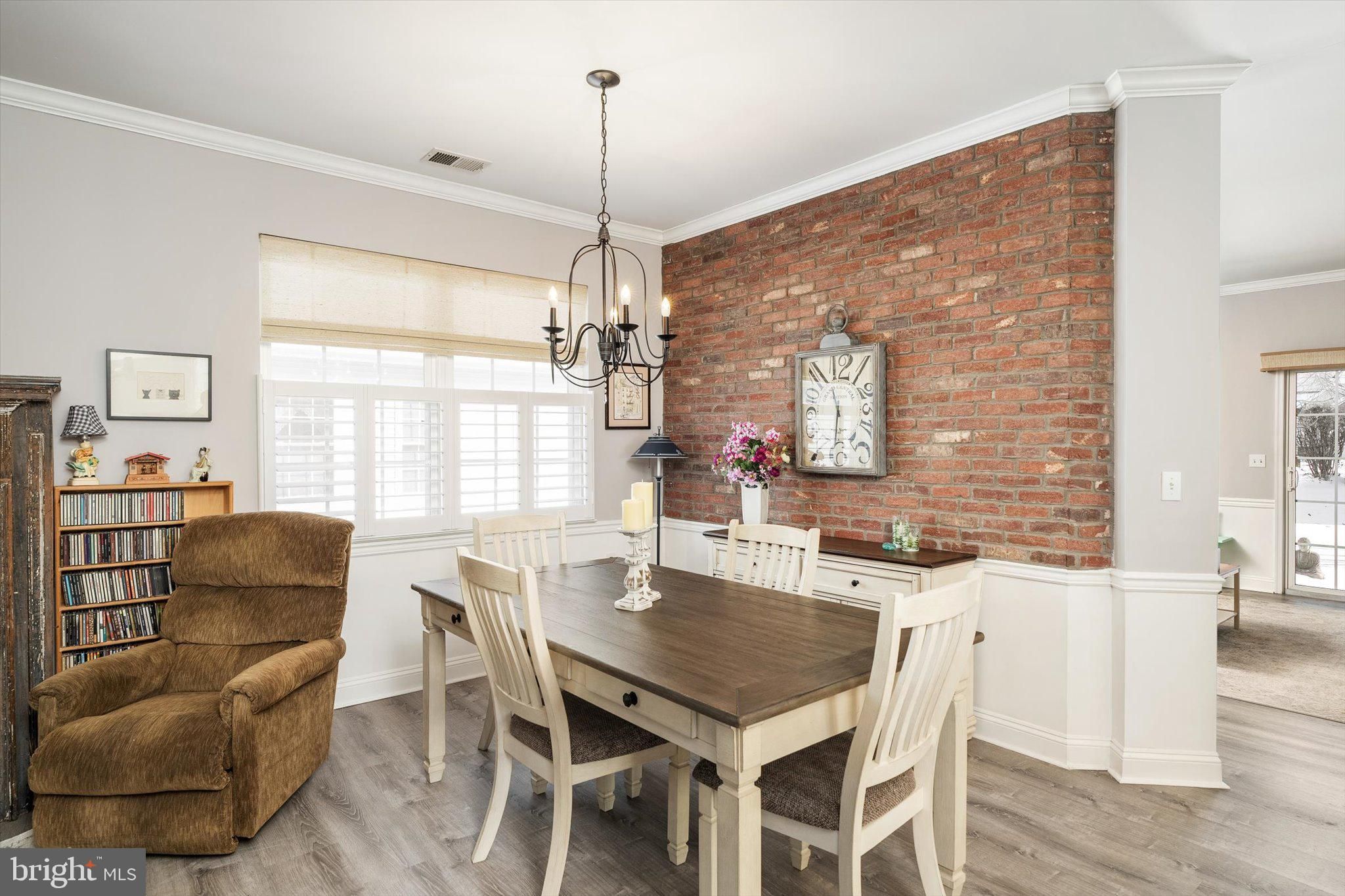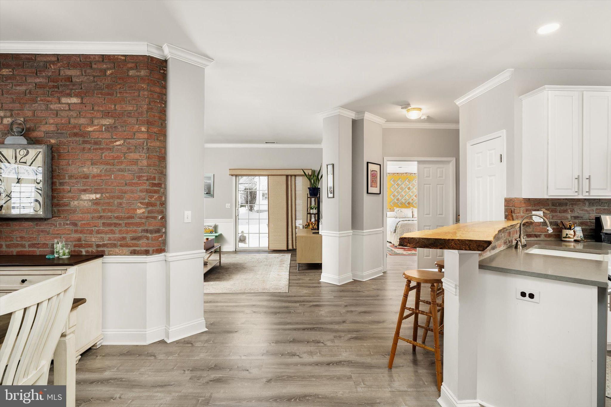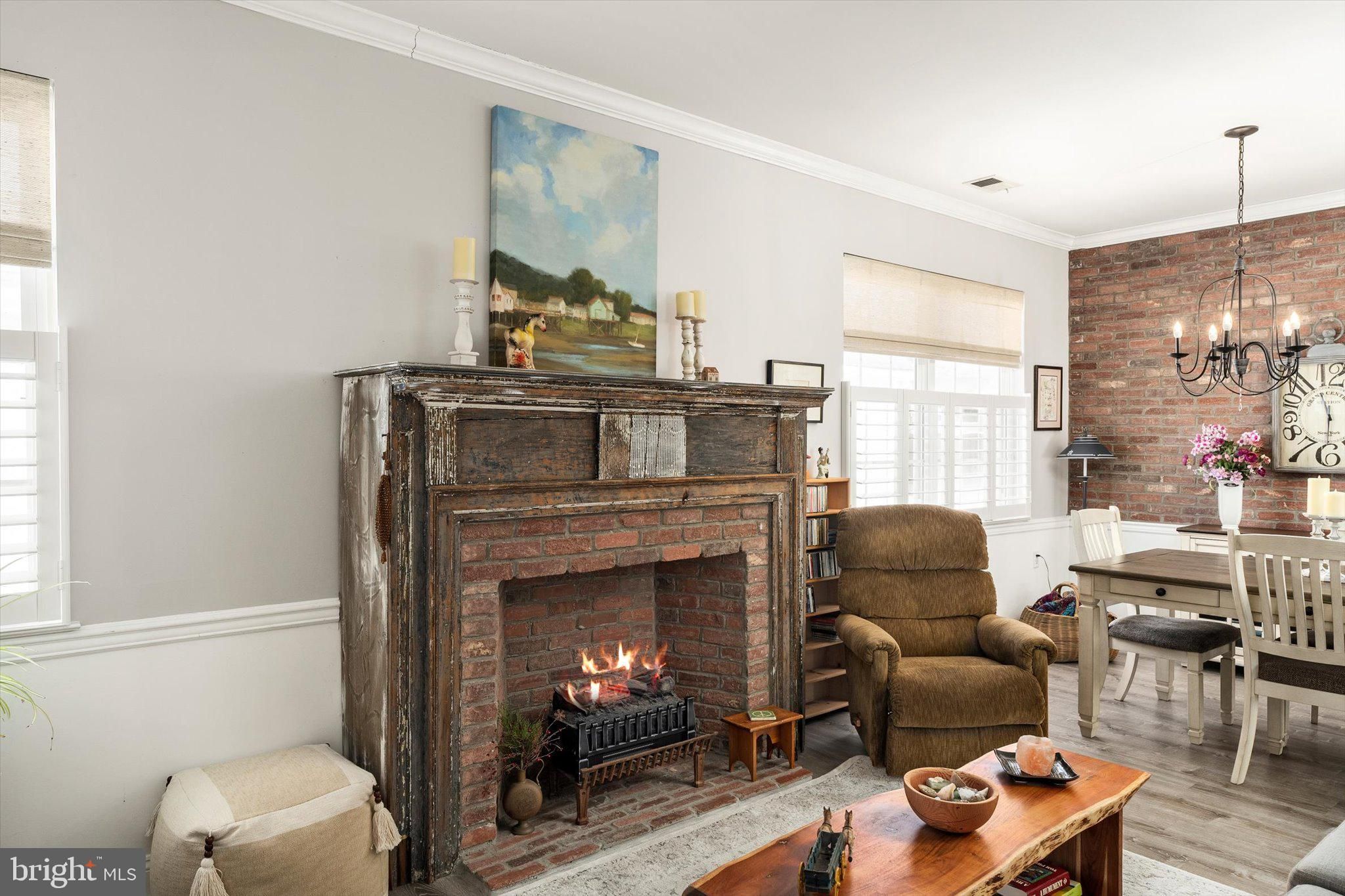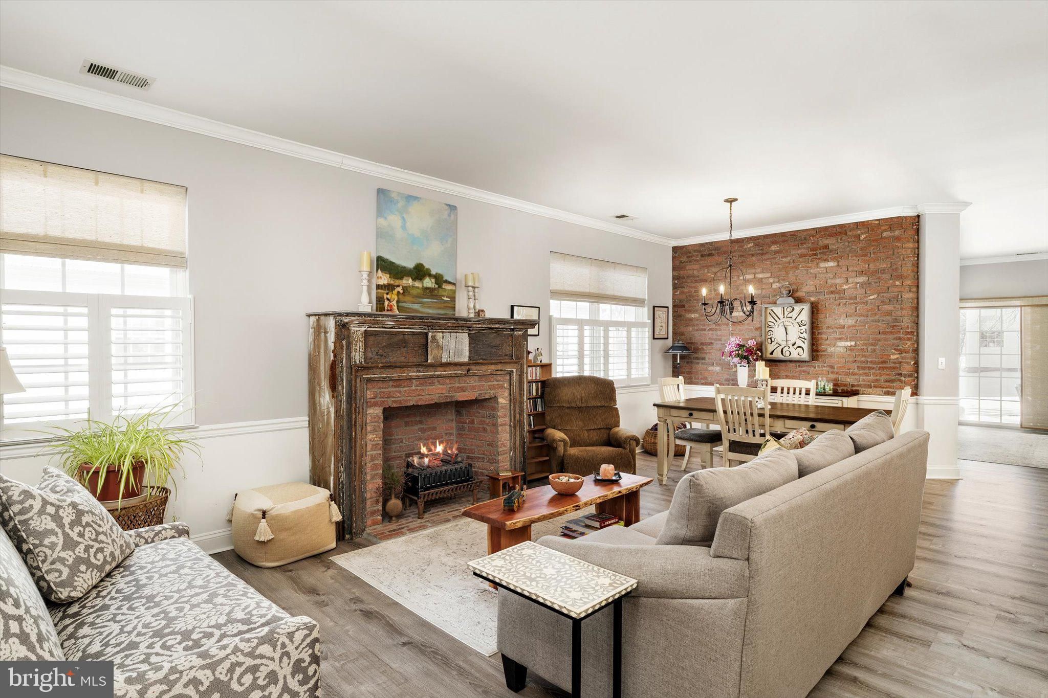 Absolutely beautiful and meticulously maintained Camilla model in the highly sought-after Evergreen community. From the moment you enter, you’ll appreciate the thoughtful craftsmanship and distinctive finishes that make this home truly special. The living room has a stunning antique salvaged built-in mantel framed by classic brick surrounding the fireplace, creating a warm and inviting focal point. The dining area is enhanced by a custom brick accent wall that adds character and charm. The kitchen is both stylish and functional, featuring stainless steel appliances, quartz countertops, and a striking brick backsplash. A one-of-a-kind upper countertop crafted from custom raw-edge treated wood adds warmth and architectural interest to the space. The primary bedroom offers a beautiful tray ceiling and two generously sized closets. The en-suite bath has a custom raw-edge treated wood vanity, porcelain sink, and an expansive walk-in shower adorned with subway tile. The additional full bath has been recently updated with a brand-new walk-in shower that includes a lifetime warranty. Beautiful vinyl flooring flows throughout the home, complemented by new custom window treatments featuring plantation shutters on the lower half and fabric blinds above, with a matching custom fabric blind in the family room. Elegant chair rail and crown molding detail the living room, dining room, and family room, adding a refined finishing touch. The HVAC system is just four years old, providing peace of mind and efficiency. A two-car attached garage completes this fabulous home, offering convenience and additional storage. This exceptional property is move-in ready and waiting for you to enjoy.
