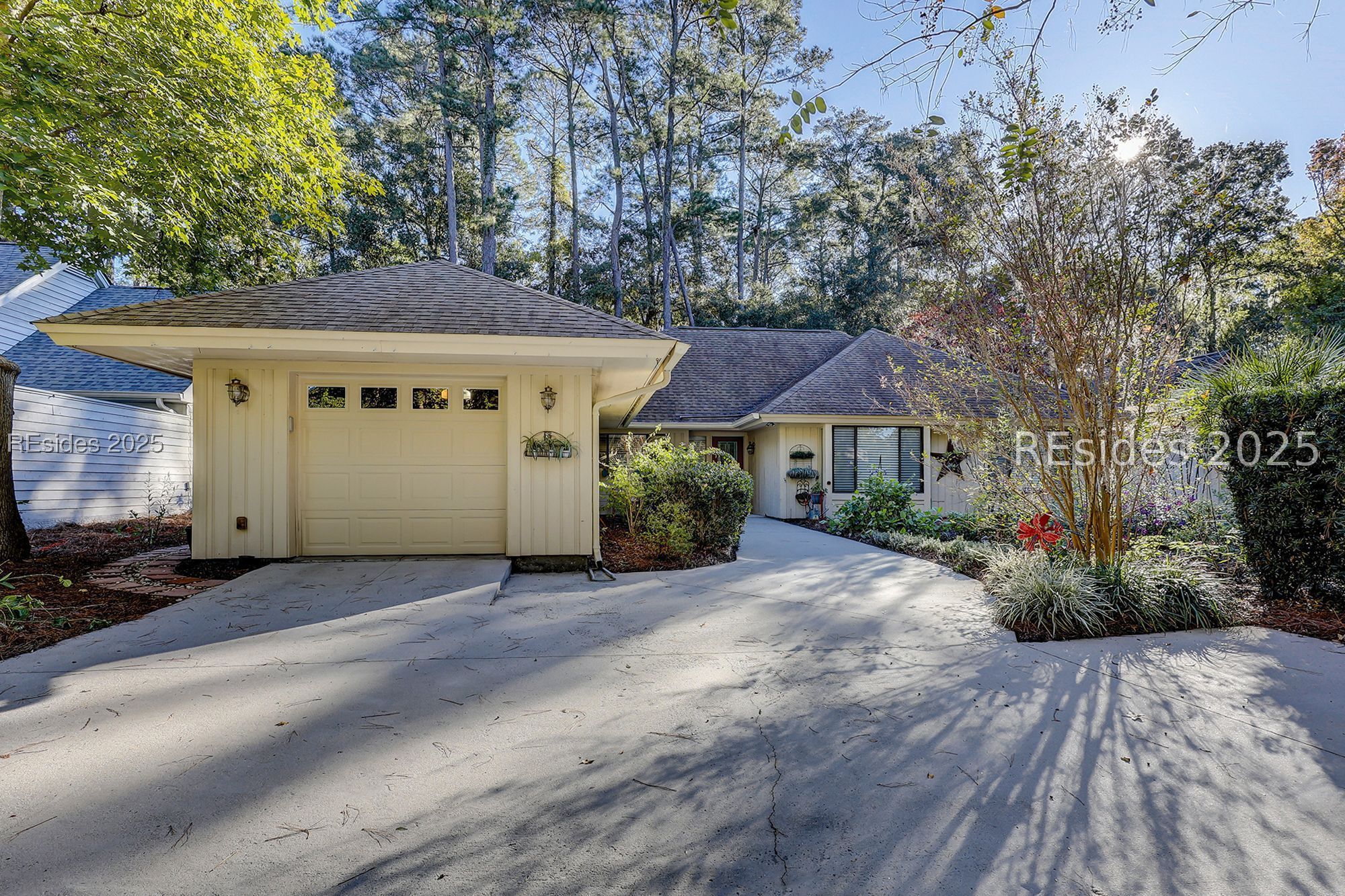 The "cutest house" in garden-like setting. Open floorplan and very bright. Screened porch converted to Carolina room (heated and cooled). Mud Room added connecting garage to house. All this is added square footage. Over-sized 1 car garage plus parking pad. Lots of built-ins and great storage. Kitchen features many cabinets, large pull-out draws with soft close, and under cabinent counter lighting. Termite bond with Hilton Head Exterminators. Crooked Pond has its own community pool, tennis & pickleball courts