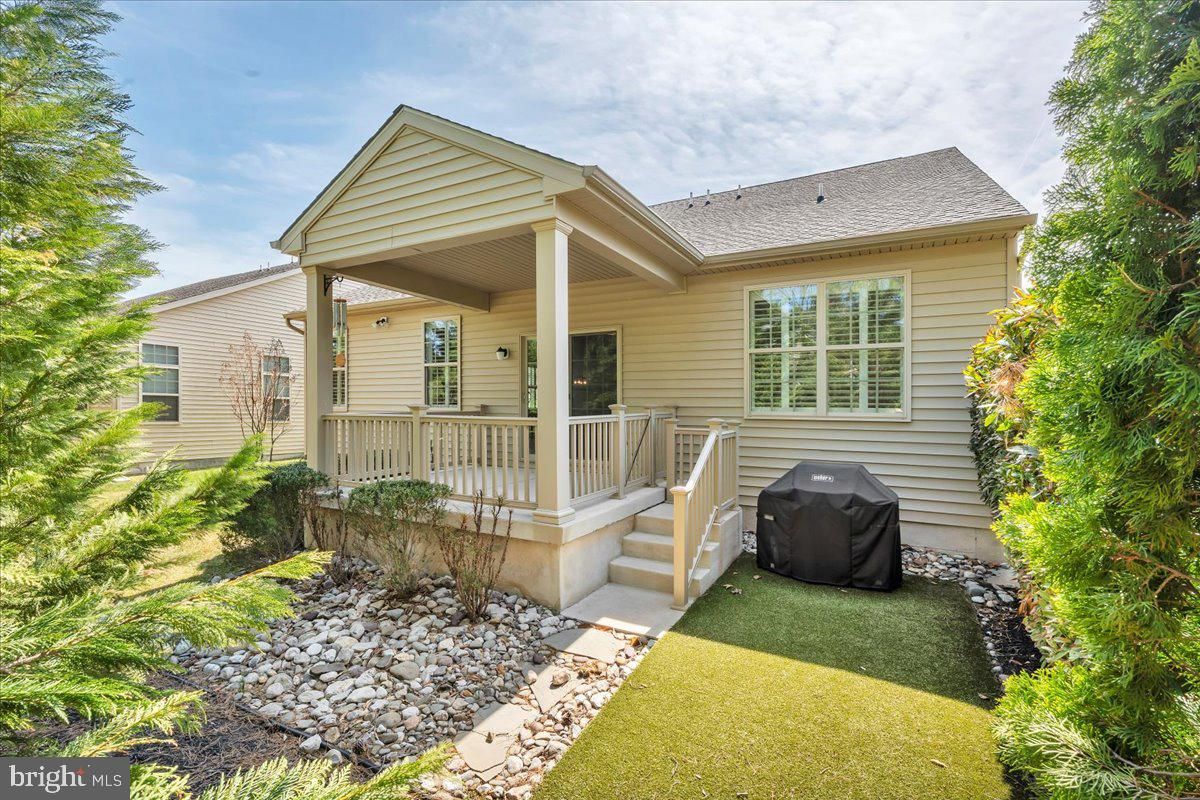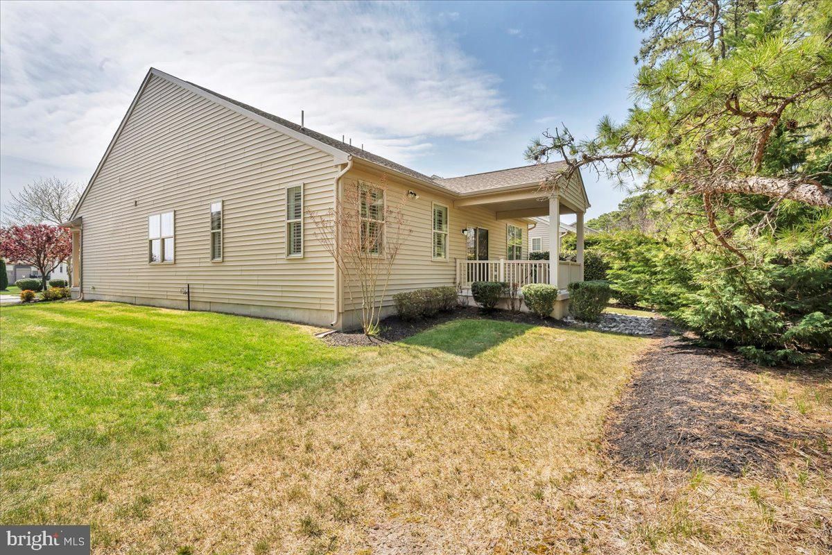 Sun-filled Montebello Ranch home with cozy front porch! This two bedroom two bathroom with separate study is like brand new in and out! Hardwood floors throughout, white kitchen with island, and both baths are upgraded! 4 ft crawlspace, walk up storage attic and two car garage! Come enjoy your covered porch with its private wooded view back into the Sturbridge section of Voorhees. This home is seconds from the clubhouse and shows great and has fast possession!
