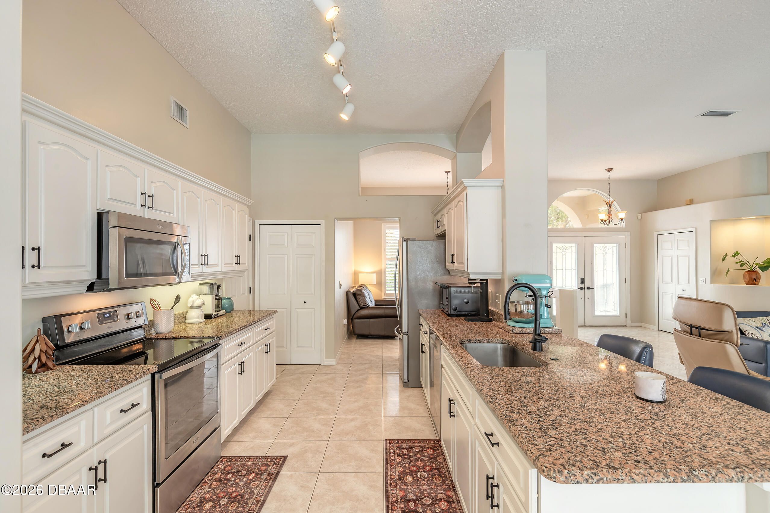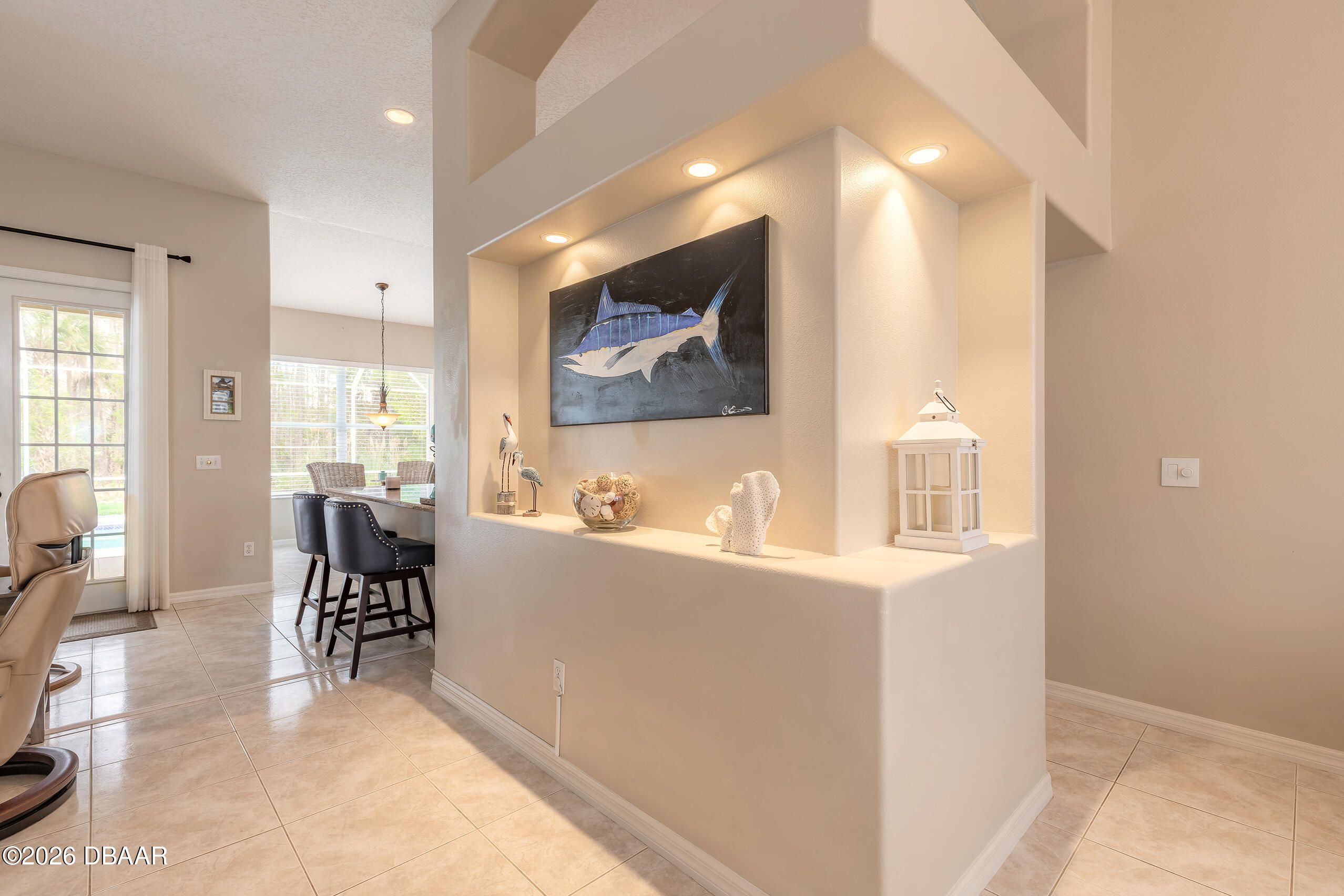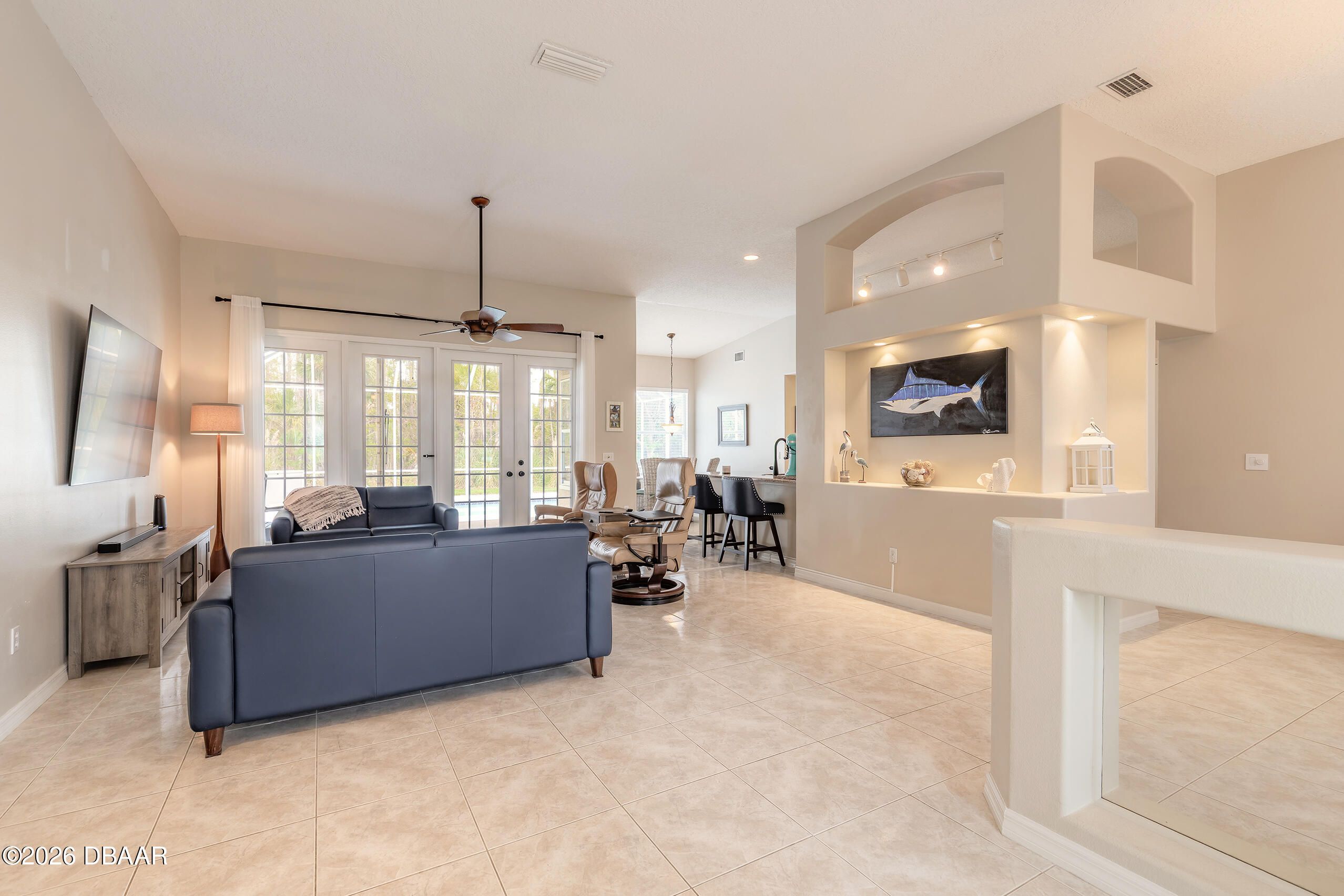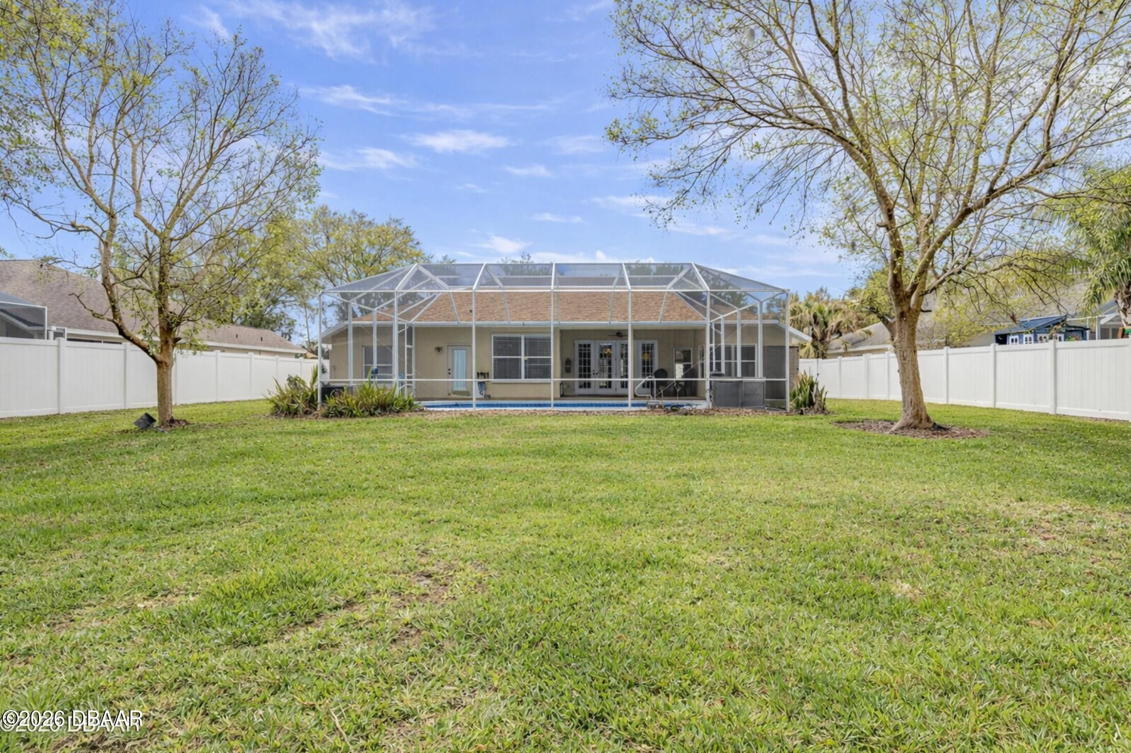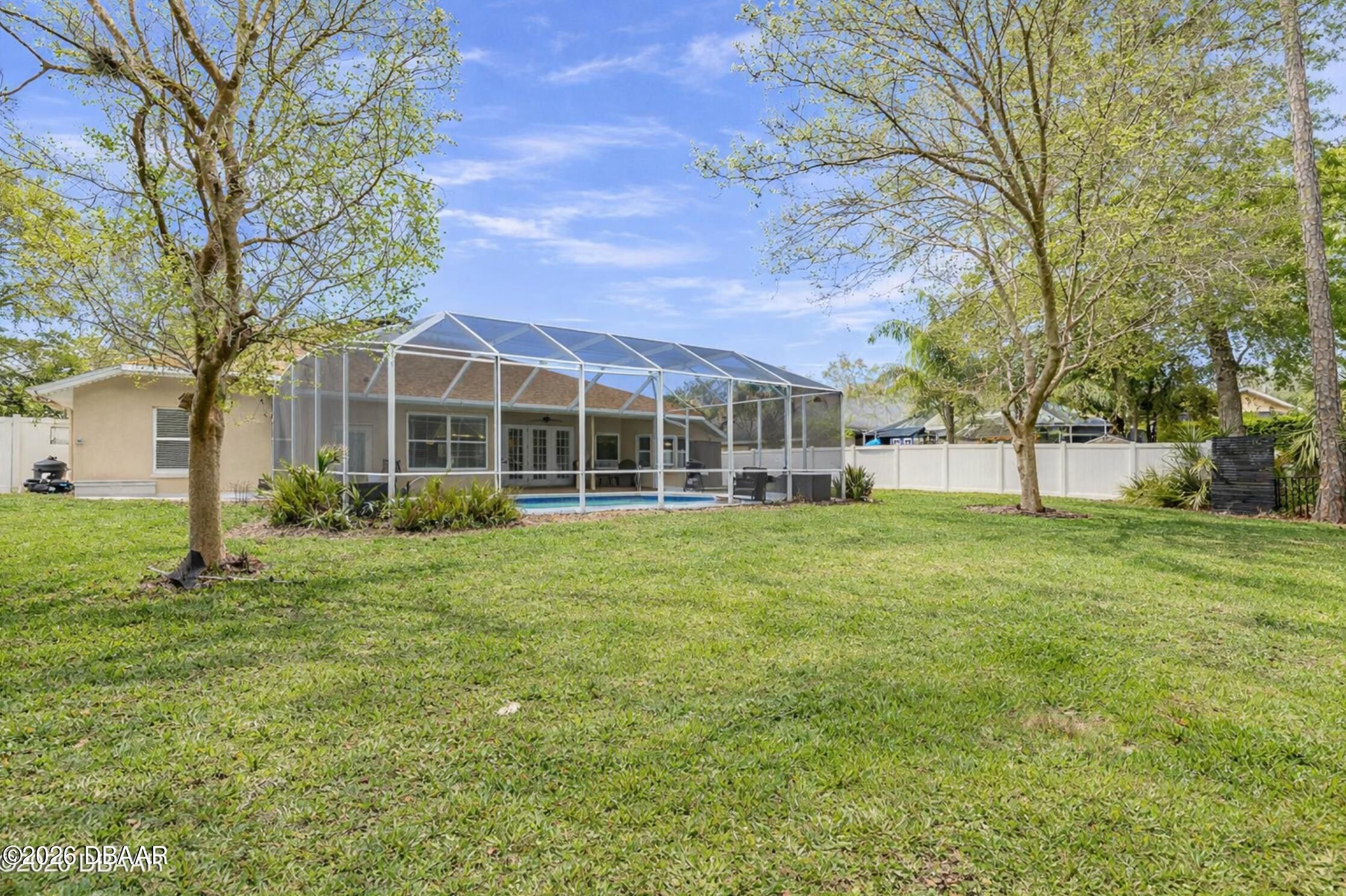 Nestled on a quiet cul-de-sac within the highly desirable gated community of Breakaway Trails, this meticulously maintained residence offers privacy, comfort, and the quintessential Florida lifestyle. Backing to peaceful conservation, the home enjoys a spacious backyard setting with no rear neighbors, creating a serene and private outdoor retreat. Inside, the thoughtfully designed split floor plan features three bedrooms and two full bathrooms, offering both functionality and privacy. The open-concept living areas are filled with natural light and flow seamlessly together, creating an inviting space ideal for everyday living and entertaining. The well-appointed kitchen serves as the heart of the home, featuring granite countertops, stainless steel appliances, timeless white shaker cabinetry, and ample workspace for cooking and gathering. Just beyond the main living area, sliding doors lead to your private screened-in pool--perfect for relaxing afternoons or hosting guests while enjoying the tranquil conservation backdrop. The extended primary suite provides a luxurious retreat, highlighted by an elegant tray ceiling and generous space for comfort and relaxation. The spa-inspired ensuite bath features dual vanities, an oversized walk-in shower, a soaker tub, and a spacious walk-in closet. Meticulously cared for and move-in ready, this home offers an exceptional opportunity to enjoy quiet cul-de-sac living within one of Ormond Beach's most sought-after gated communities.