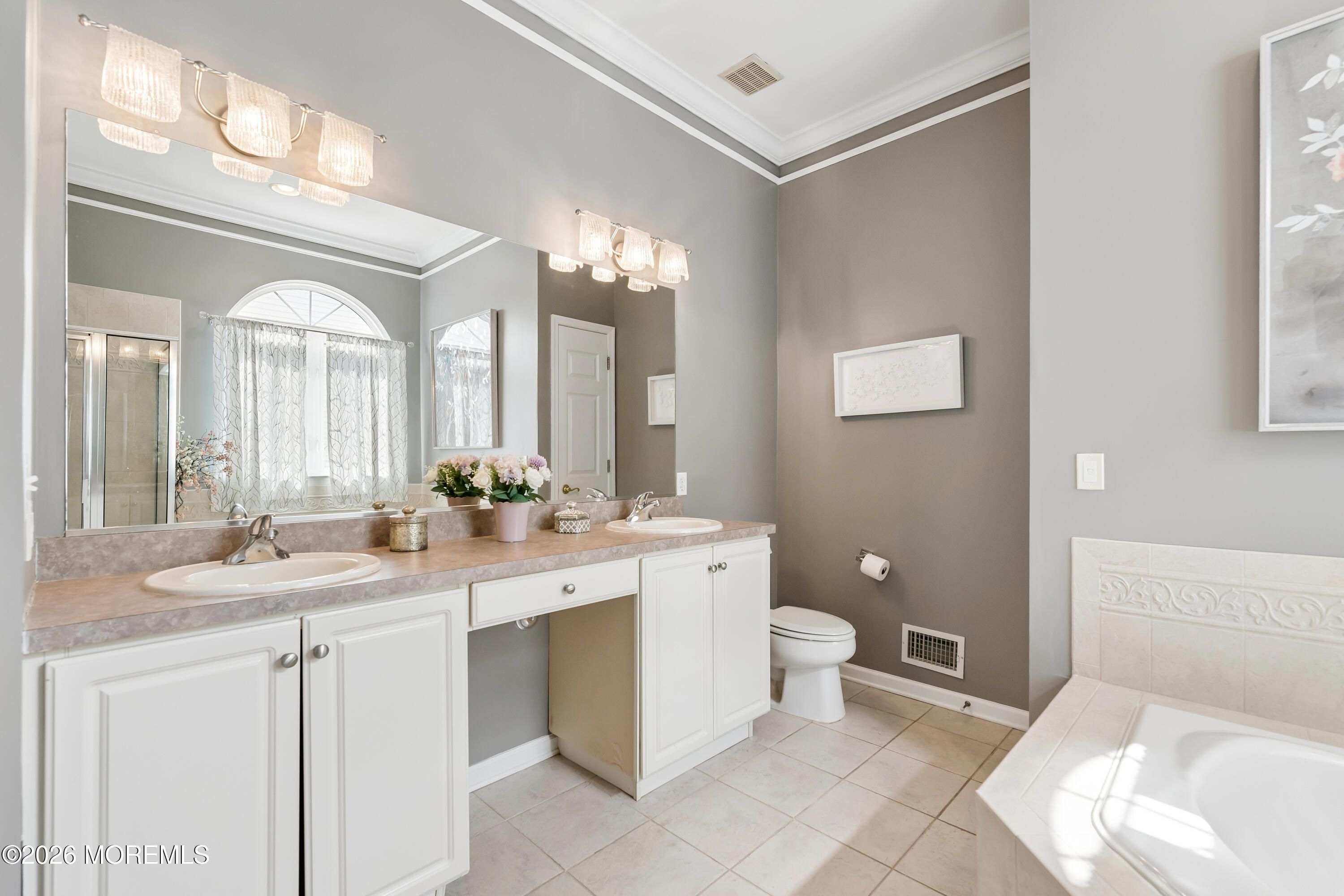 Welcome to Horizons at Barnegat! 3 Weymouth Court is a 2880 Sq Ft 3Br 3Bth home located in a prime private location, which features an open floor plan, a primary suite on the 1st fl and a guest suite w/ sitting area on the 2nd. Enjoy the Great Room w/ gas Fpl off the Kitchen, rear patio and low maintenance. Roof and main fl A/C replaced in 2025. This Home shows Pride of Ownership! Low Maintenance fees and a Clubhouse w/ fitness center, card room, Kitchen and more! Outside amenities include Pool, Bocci Courts and hiking paths, Original Owner.