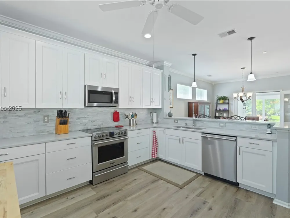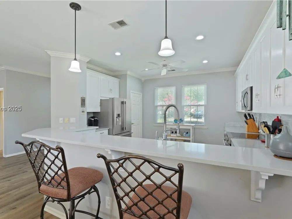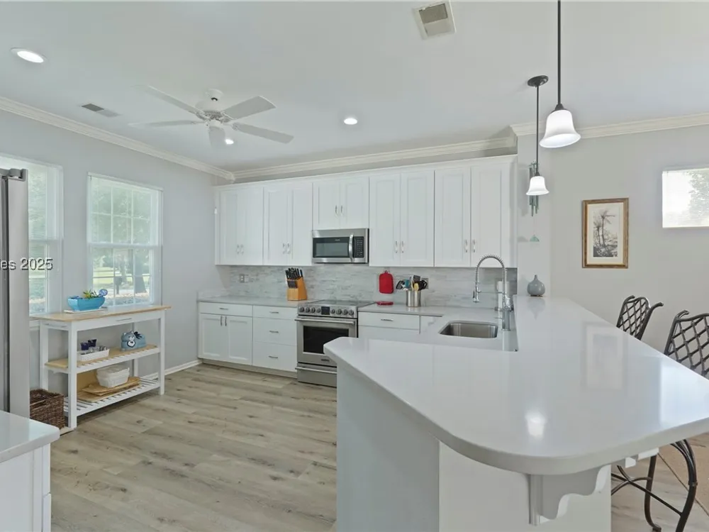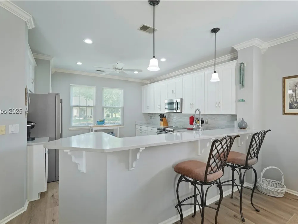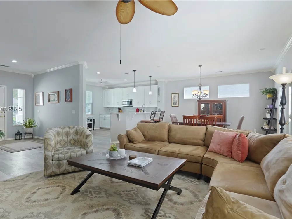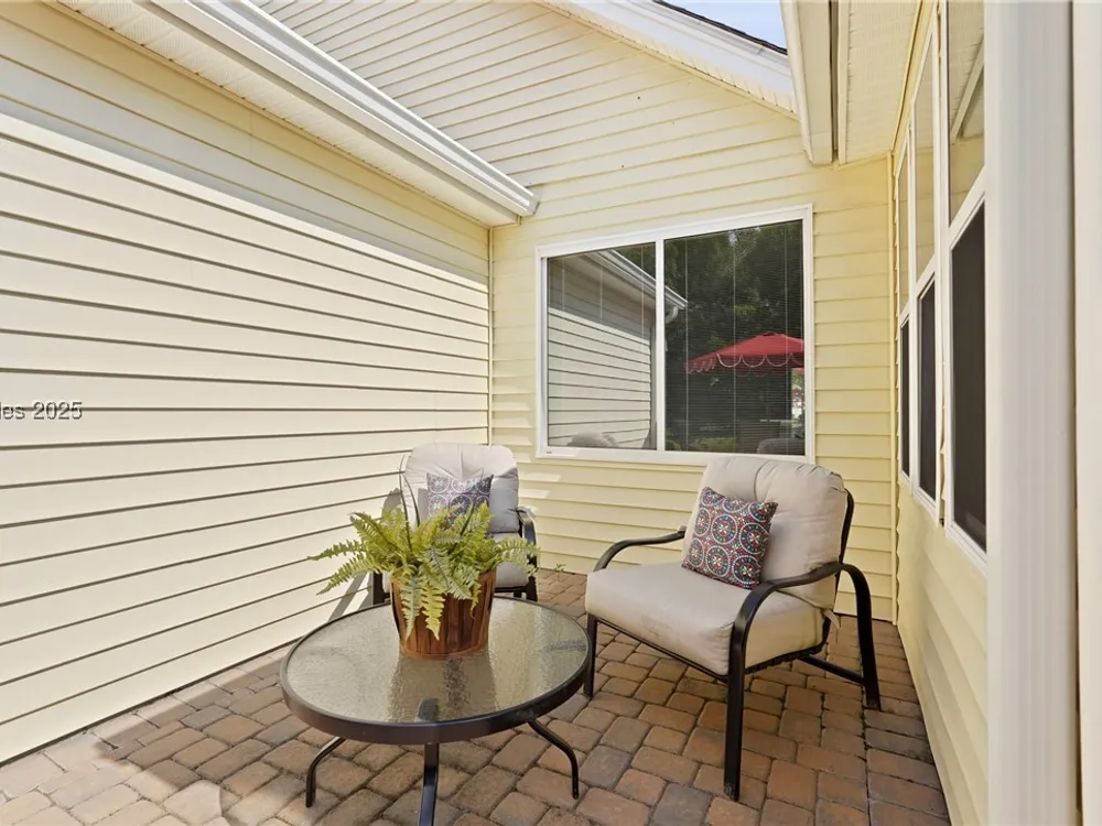 Located on a private cul-de-sac in the desirable SUN CITY HILTON HEAD community, this charming updated Washington model offers an open floor plan w/ 3 Bedrooms (or 2BD and flex/office), 2 full baths & a Carolina room you can enjoy all year round. A paver patio opens up to tranquil backyard. The kitchen was recently remodeled w/ stainless steel appliances, white cabinets & a stylish backsplash. Detailed crown molding in the main living areas. No stucco & Beaufort County taxes! Enjoy peaceful living just a short walk to scenic Lake Somerset amenity center. Sun City Hilton Head in Bluffton, SC, is a premier 55+ community spanning over 5,000 acres, offering an unmatched resort-style lifestyle. Residents enjoy 54 holes of golf across three scenic courses, six pools (including indoor lap and leisure pools), and three fully equipped fitness centers with classes and studios. The sports park offers tennis, pickleball, bocce, softball, volleyball, croquet, and more. Social and creative outlets abound with a ballroom, 16,000 sq ft performing arts theater, arts and crafts studios, woodworking shop, billiards, card rooms, and a library. Outdoor enthusiasts appreciate the Lake Somerset and Riverbend Docks, fishing, miles of walking and nature trails, community gardens, and three dog parks. There are over 150 clubs covering everything from arts and music to technology and lifelong learning. Additional amenities include on-site restaurants, RV and boat storage, and a secure, gated environment with convenient access to Hilton Head beaches, Historic Savannah and Charleston along with local shopping, dining, and healthcare. Sun City is also expanding with a new multimillion-dollar resort style amenity center coming soon!
