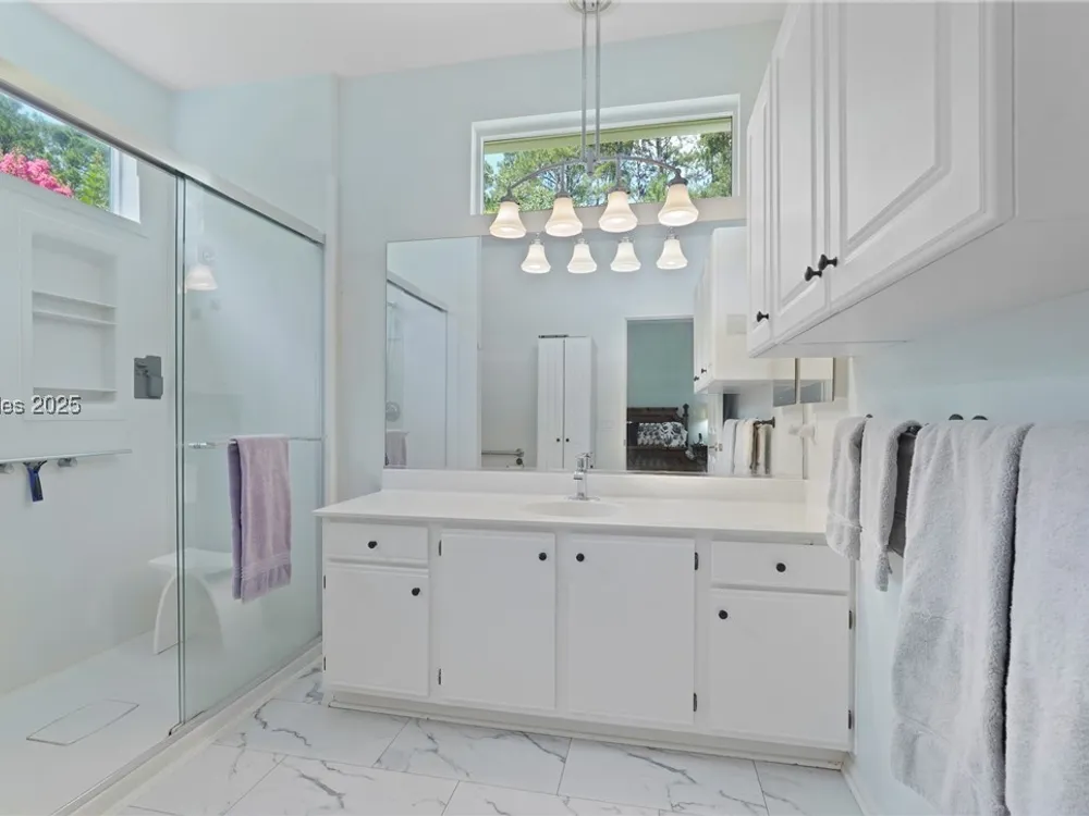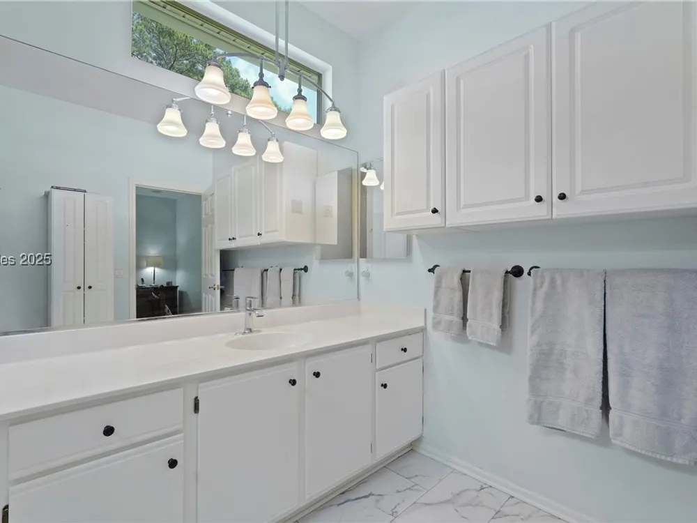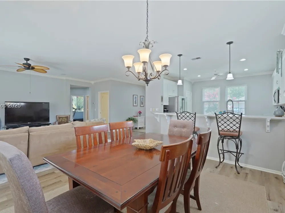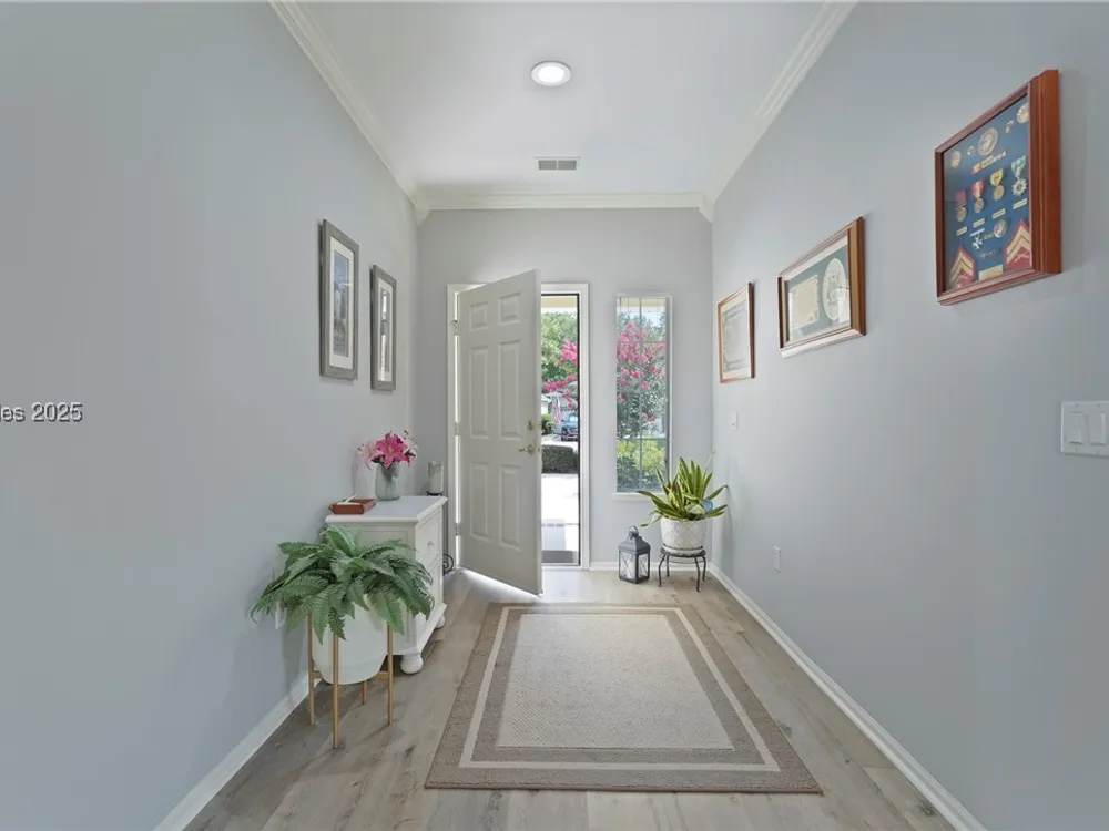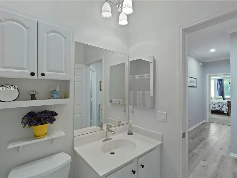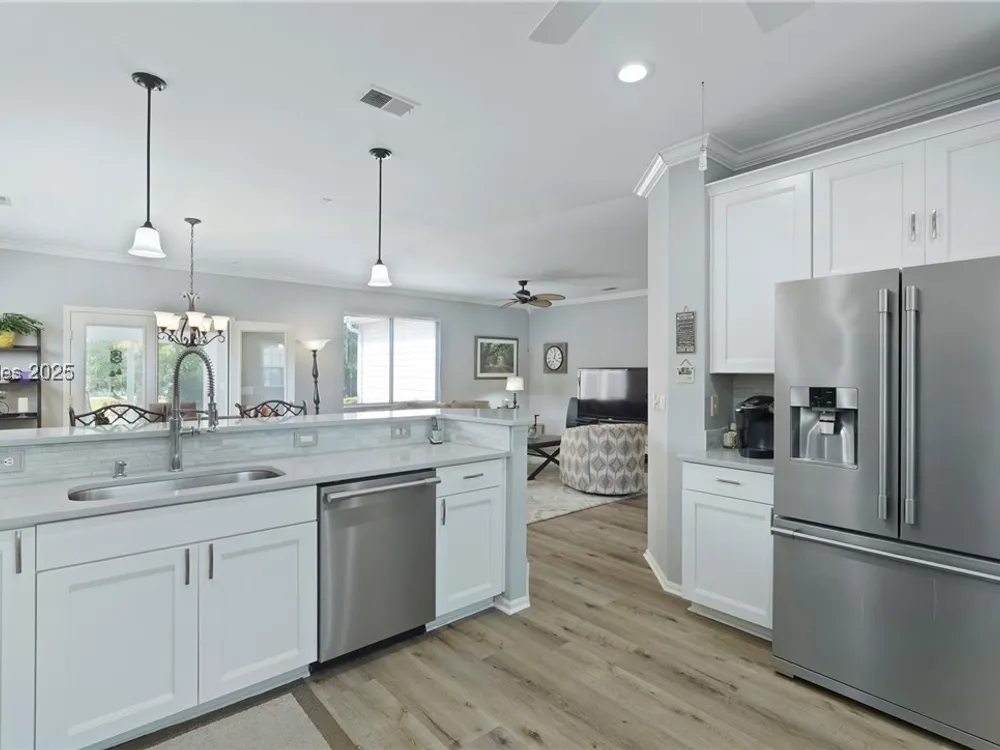 Located on a private cul-de-sac in the desirable SUN CITY HILTON HEAD community, this charming updated Washington model offers an open floor plan w/ 3 Bedrooms (or 2BD and flex/office), 2 full baths & a Carolina room you can enjoy all year round. A paver patio opens up to tranquil backyard. The kitchen was recently remodeled w/ stainless steel appliances, white cabinets & a stylish backsplash. Detailed crown molding in the main living areas. No stucco & Beaufort County taxes! Enjoy peaceful living just a short walk to scenic Lake Somerset amenity center. Sun City Hilton Head in Bluffton, SC, is a premier 55+ community spanning over 5,000 acres, offering an unmatched resort-style lifestyle. Residents enjoy 54 holes of golf across three scenic courses, six pools (including indoor lap and leisure pools), and three fully equipped fitness centers with classes and studios. The sports park offers tennis, pickleball, bocce, softball, volleyball, croquet, and more. Social and creative outlets abound with a ballroom, 16,000 sq ft performing arts theater, arts and crafts studios, woodworking shop, billiards, card rooms, and a library. Outdoor enthusiasts appreciate the Lake Somerset and Riverbend Docks, fishing, miles of walking and nature trails, community gardens, and three dog parks. There are over 150 clubs covering everything from arts and music to technology and lifelong learning. Additional amenities include on-site restaurants, RV and boat storage, and a secure, gated environment with convenient access to Hilton Head beaches, Historic Savannah and Charleston along with local shopping, dining, and healthcare. Sun City is also expanding with a new multimillion-dollar resort style amenity center coming soon!