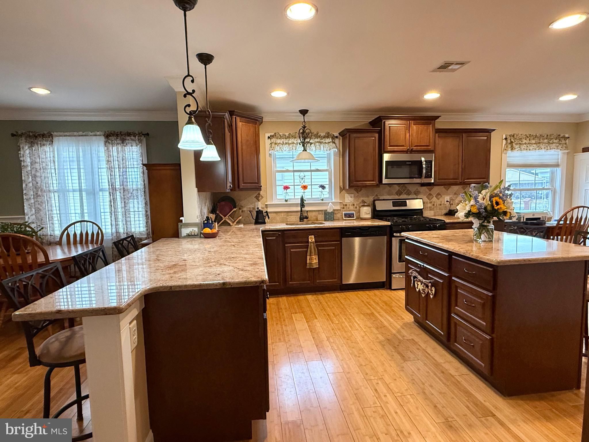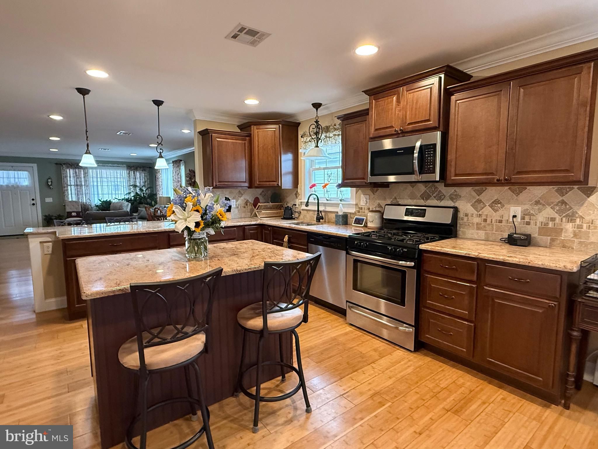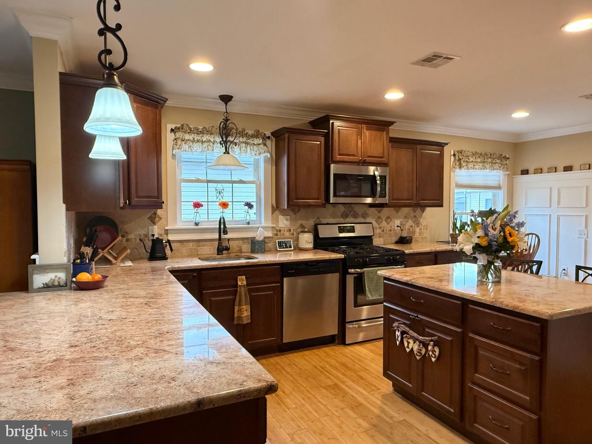 - Attic, Breakfast Area, Ceiling Fan(s), Crown Moldings, Entry Level Bedroom, Dining Area, Floor Plan - Open, Kitchen - Eat-In, Kitchen - Island, Recessed Lighting, Wainscotting, Sprinkler System