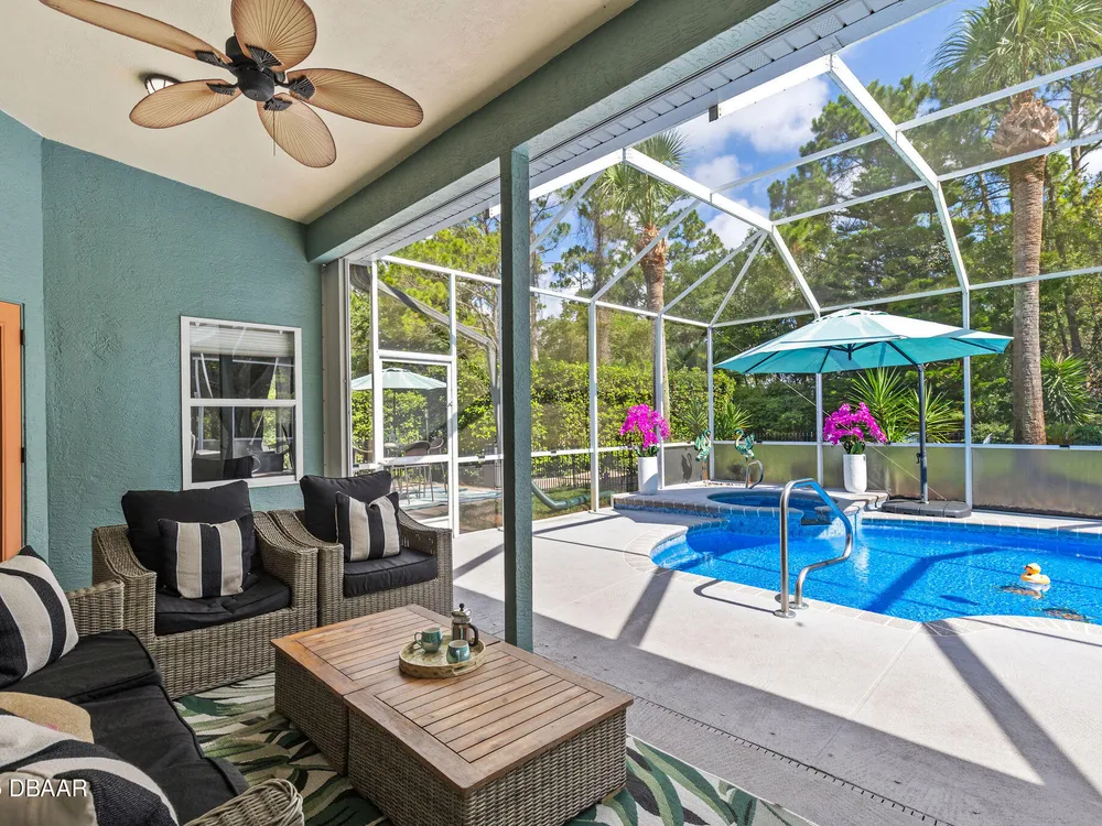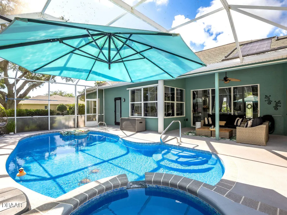 Opportunity knocks — This one is priced to sell and the seller is ready to talk numbers! Don't miss your chance to make it yours. This beautiful home located in the Gated Golf Community of Plantation Bay! Step into coastal Florida feel at its finest in this move-in ready, completely updated pool home, located on a beautifully landscaped corner lot with total backyard privacy—no rear neighbors! As you arrive, you'll immediately notice the custom curbing, lush new landscaping, and undeniable curb appeal. Once inside, you're greeted by an open, split-bedroom floor plan designed for both comfort and entertaining. The luxury vinyl plank flooring flows seamlessly throughout the home, while trey ceilings and abundant LED lighting add a modern touch. To your right, the newly remodeled chef's kitchen takes center stage with brand new cabinetry in the coffee bar, a WiFi-connected Samsung smart appliance suite (including a touch screen oven) The triple glass sliders draw your eyes outside, opening up to your heated pool and spa oasis, resurfaced in 2021. With no homes behind you, you'll enjoy peace, privacy, and sunshine year-round. Solar Pool Season Extender (2023) ensures warm dips even in the cooler months. Back inside, both bathrooms are fully renovated, offering spa-like finishes that elevate daily routines. The primary suite is a serene escape with ample natural light and direct access to the lanai. Additional features include: - 2020 Roof, Water Heater, and AC - Accordion hurricane shutters, impact-rated garage and front doors - Indoor laundry room - Guarded gutter system - Model: Chatham by ICI Homes All of this comes with the lifestyle only Plantation Bay offers: - A gated community with three private entrances - 45 holes of Championship Golf - Tennis, pickleball, fitness center, multiple resort-style pools. - Renowned golf course and a brand-new $30M state-of-the-art country club Only minutes to I-95, top-rated restaurants, and 10-15 minutes to the beach This home is the full packageover $80,000 in upgrades, completely turnkey, and located in one of Ormond Beach's most desirable communities. Schedule your private tour today and experience the lifestyle that only Plantation Bay can deliver!