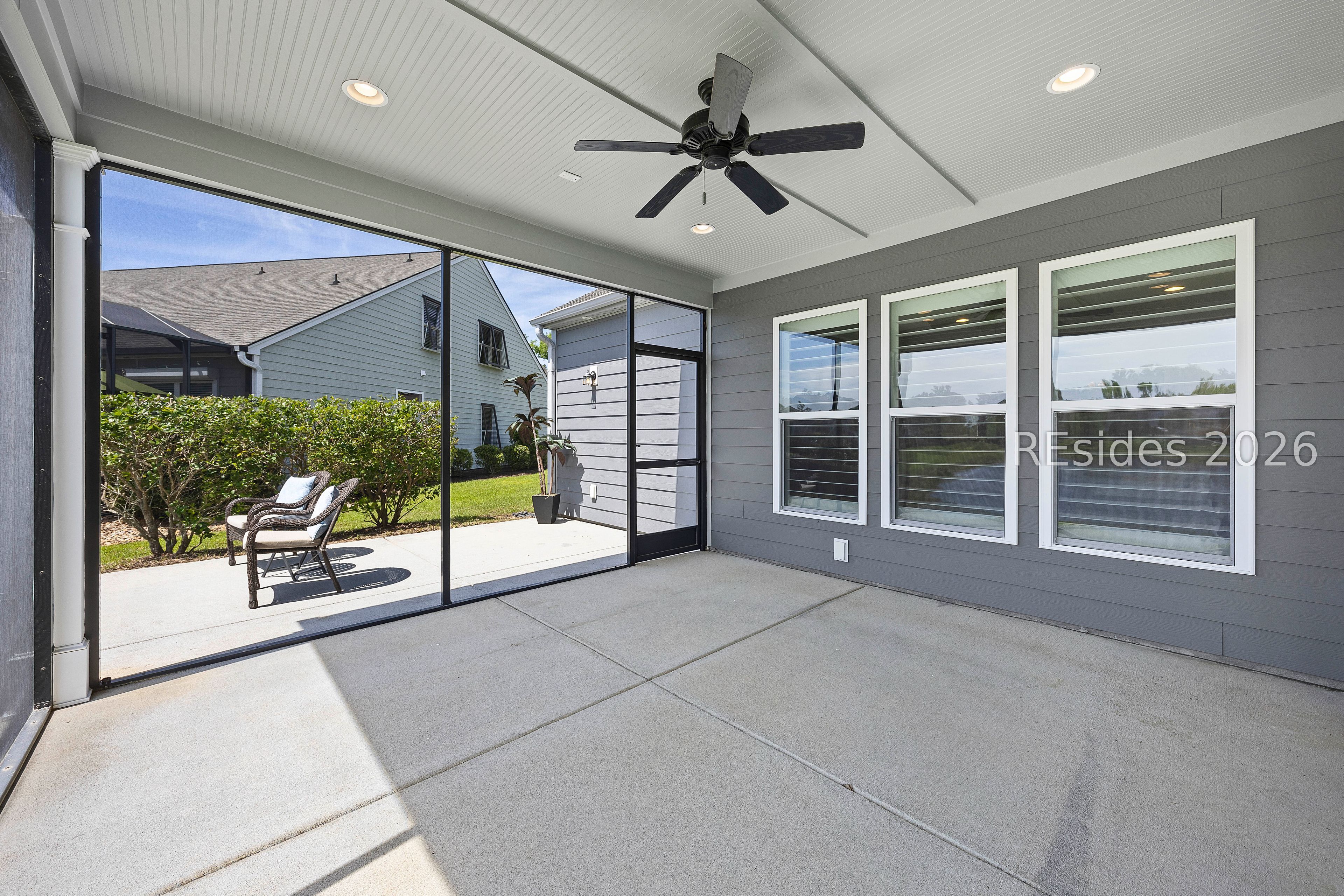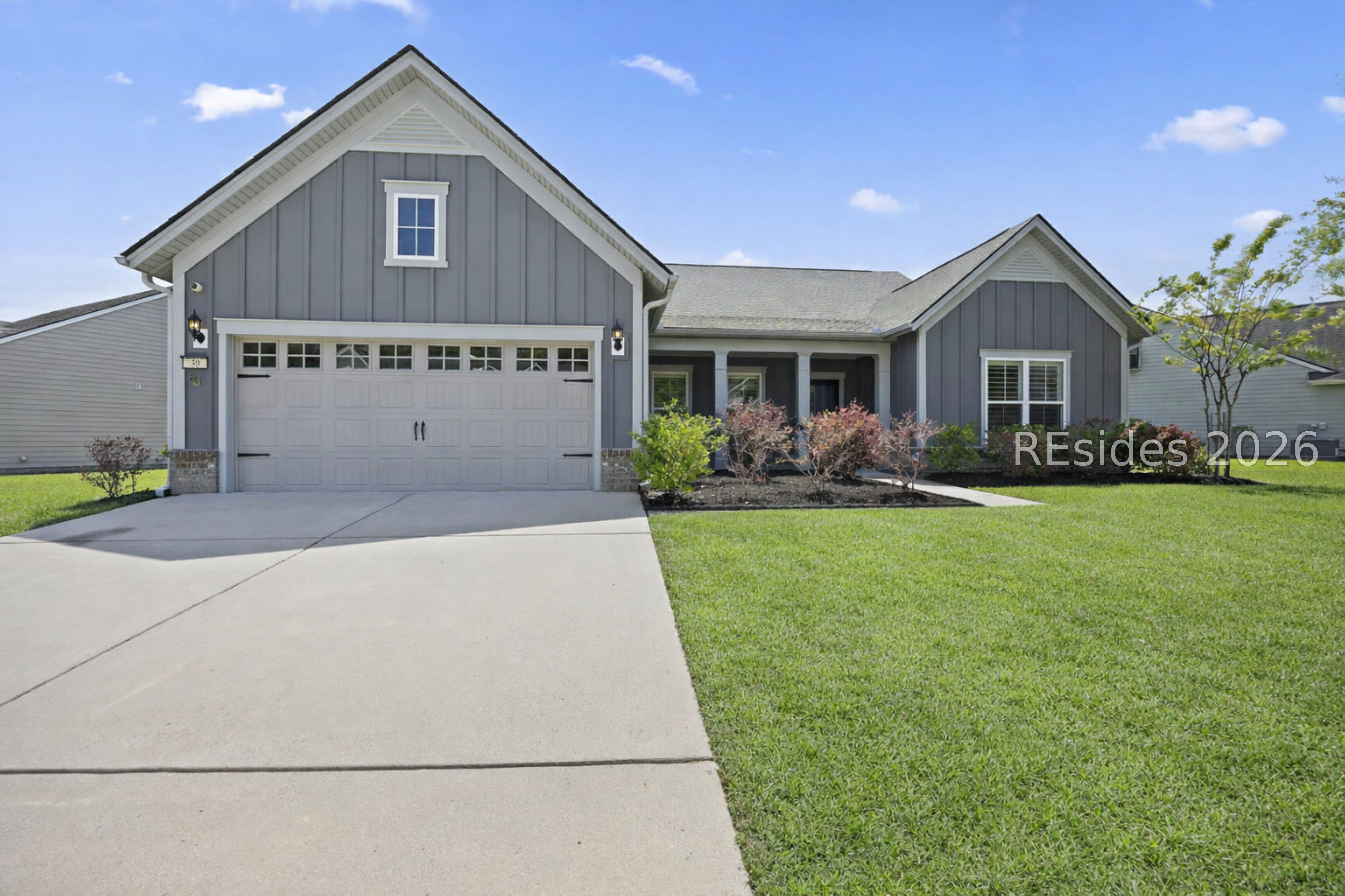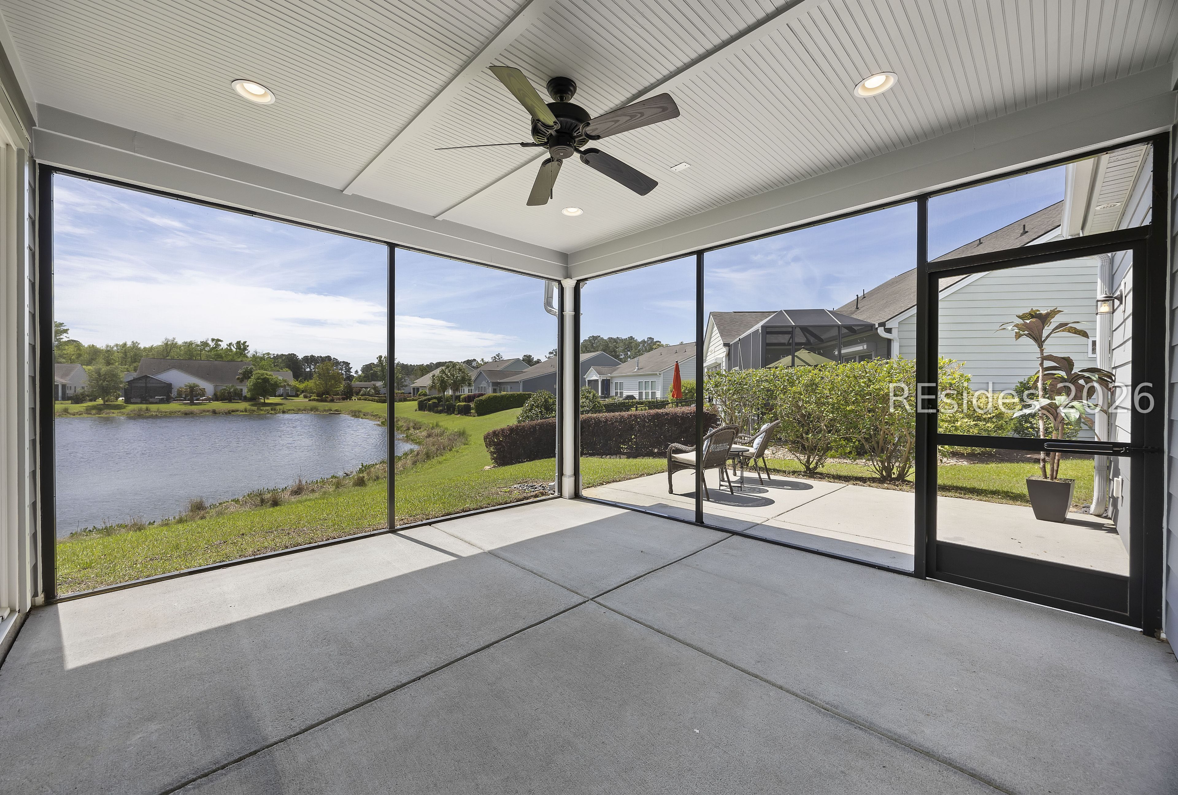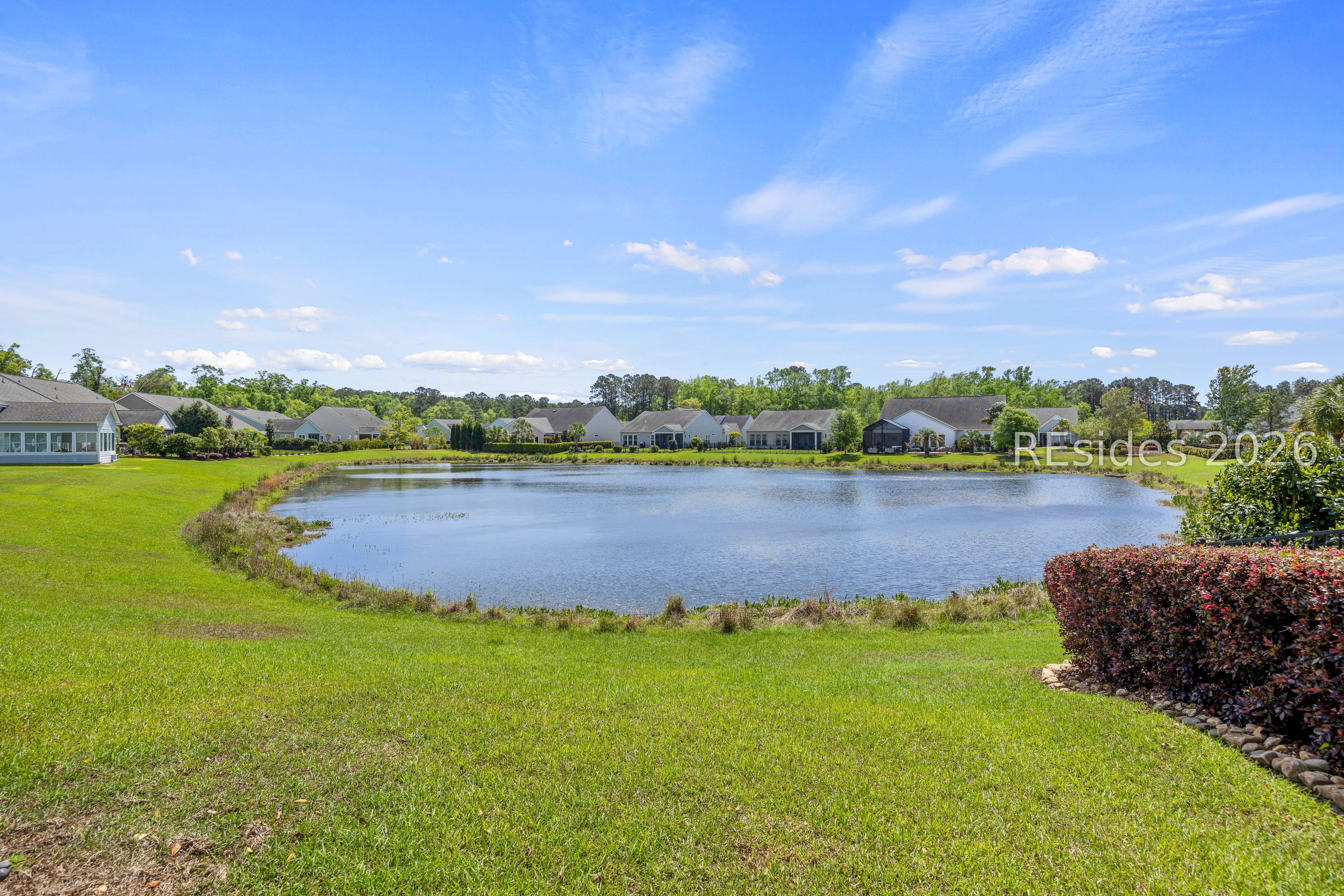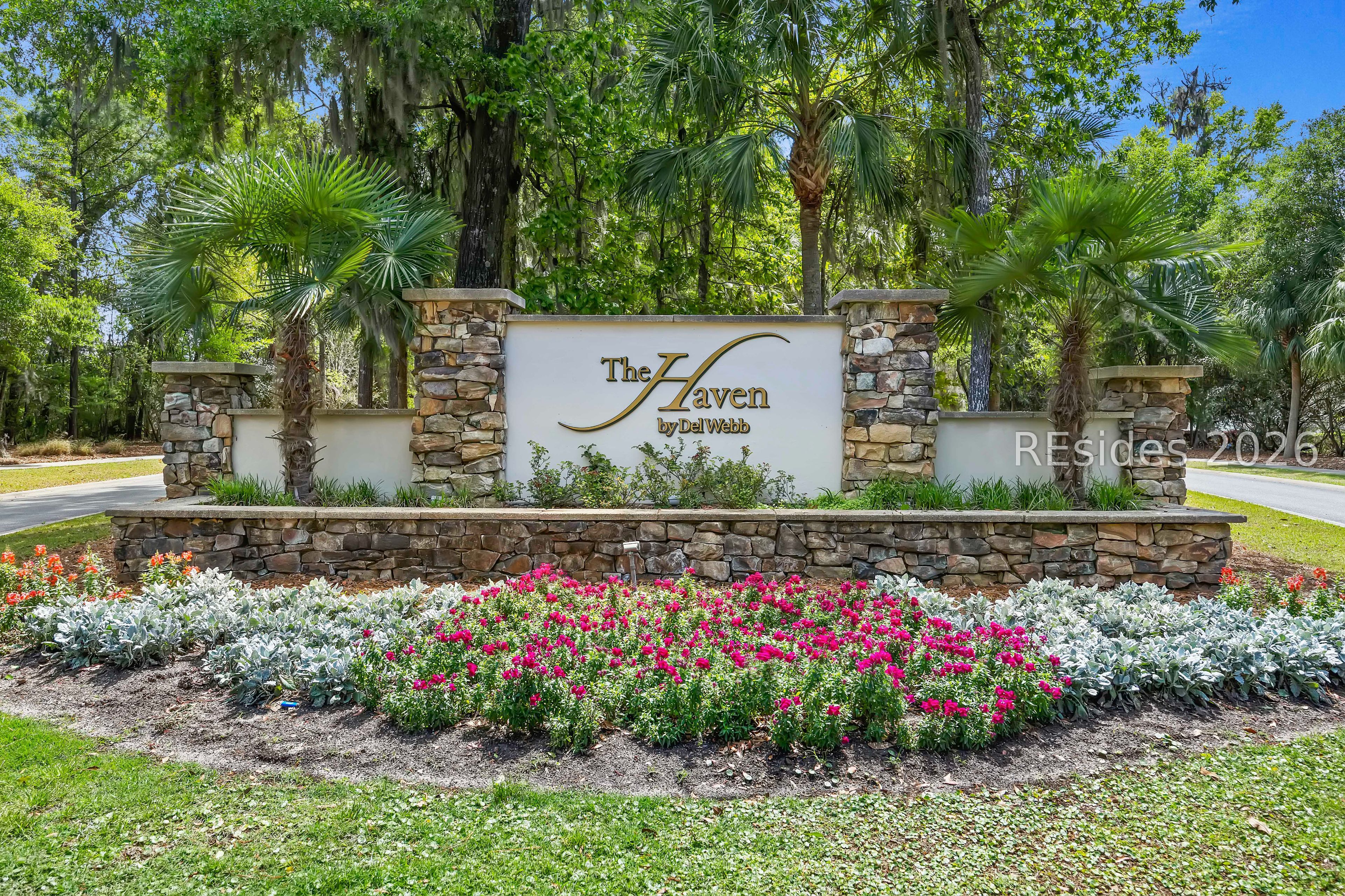 Don't miss out on this Rare South-facing full lagoon view Tangerly Oak model in The Haven at New Riverside, Bluffton's 55+ community. This beautifully upgraded single-story home, has 2,700+ square ft, features 3 bedrooms, 2 and a half baths, smooth ceilings, spacious open floorpan with $75,000 in upgrades. Enjoy a gorgeous lagoon view even from front door. gracious entry provides ample room. Attractive batten/board, Hardie plank ext siding along with brick accents & front porch, new interior and exterior paint, fresh landscaping, plantation shutters throughout, custom crown moulding, attractive wood grain plank tile flooring. A gourmet updated kitchen in this single level home boasts granite ctops, custom walk-in pantry, black Whirlpool appliances, new dishwasher, 6-burner gas cooktop, a porcelain farmhouse sink w/water view from kit. The kit has large island with seating, breakfast bar and upgraded cabinetry w/pull out shelving and soft close drawers/doors. This open floorplan of one level living also features a bright, light filled Sun Room/Carolina Room with tri-fold sliding doors opening to a screen lanai/screen porch & separate patio overlooking lagoon.The trifold sliding doors are great for entertaining making the Screen Porch & Sun Room seem like one open sun drenched space to enjoy your Outdoor Retreat. The primary suite offers a beautiful lagoon view, tray ceiling, luxurious tiled rain shower, custom walk-in closet w/direct pass-thru to laundry rm for convenience. The 4' extended garage w/added storage for a golf cart or workshop, includes a walk-up attic and Lifestyle garage screen. Off the garage is a spacious drop zone for convenience and storage. This is the perfect gated community for the active adult lifestyle and popular retirement community, The Haven at New Riverside allows you to enjoy resort-style amenities including a Jr. Olympic pool, jacuzzi, newly remodeled Club House, fitness center, 4 Har-tru lighted tennis courts, Pickleball, Dog park, miles of walking & biking trails, garden plots, playground and social clubs. Located near Old Town Bluffton, Hilton Head Island, Savannah, Beaufort, shopping, dining. Added features: whole home security system including smoke detection/alarms keeping your home safe while you are away; sound system wiring; drip watering system on most landscaping; and Ring doorbell w/additional camera keeps you informed of visitors & when important deliveries arrive. Low HOA & property taxes!! Don't miss out!