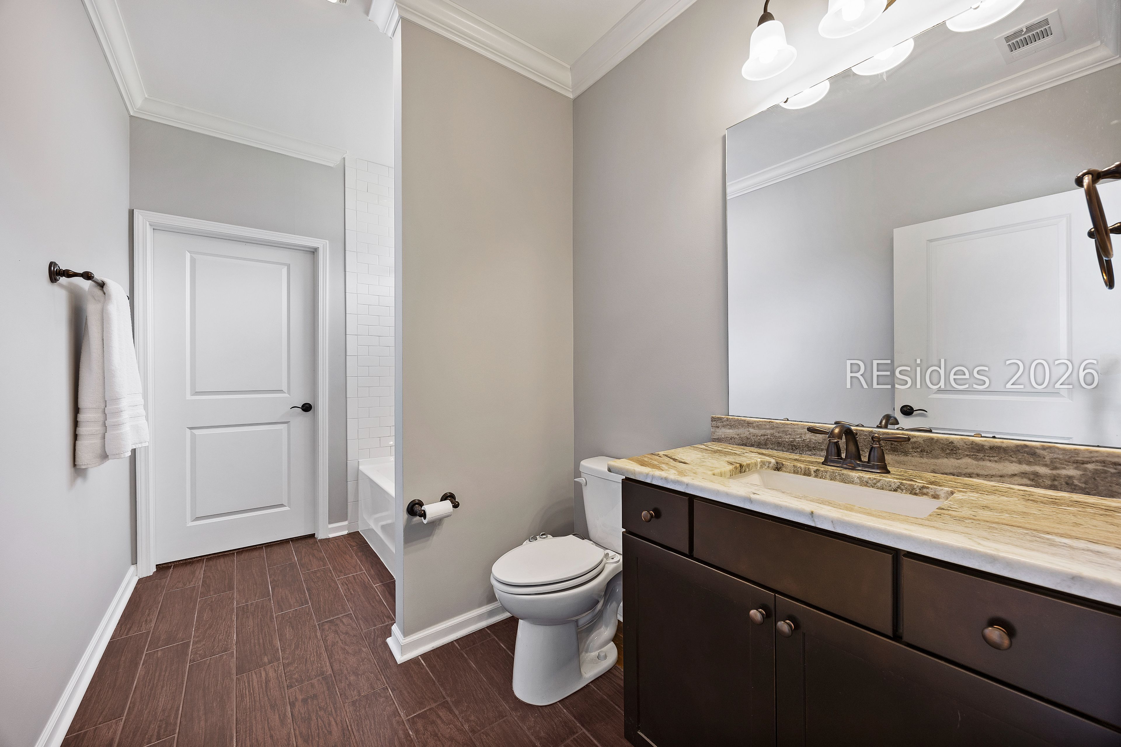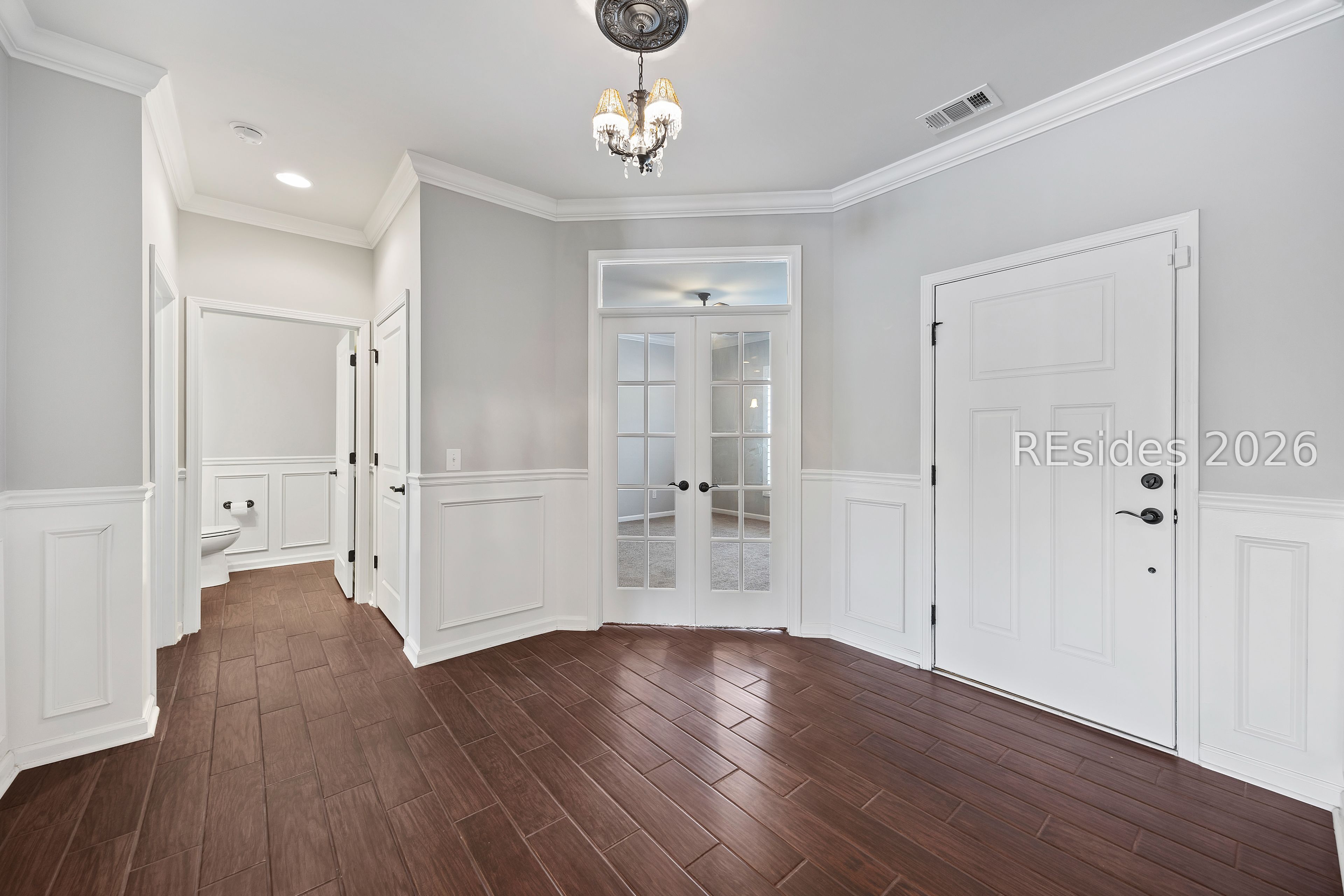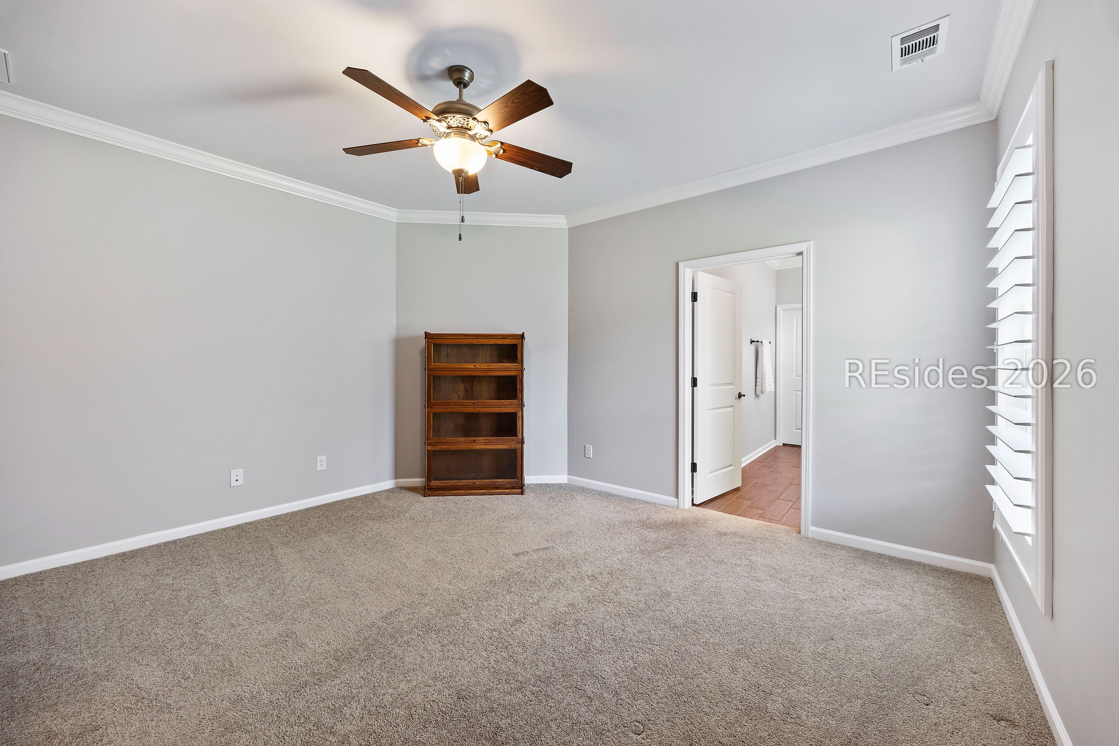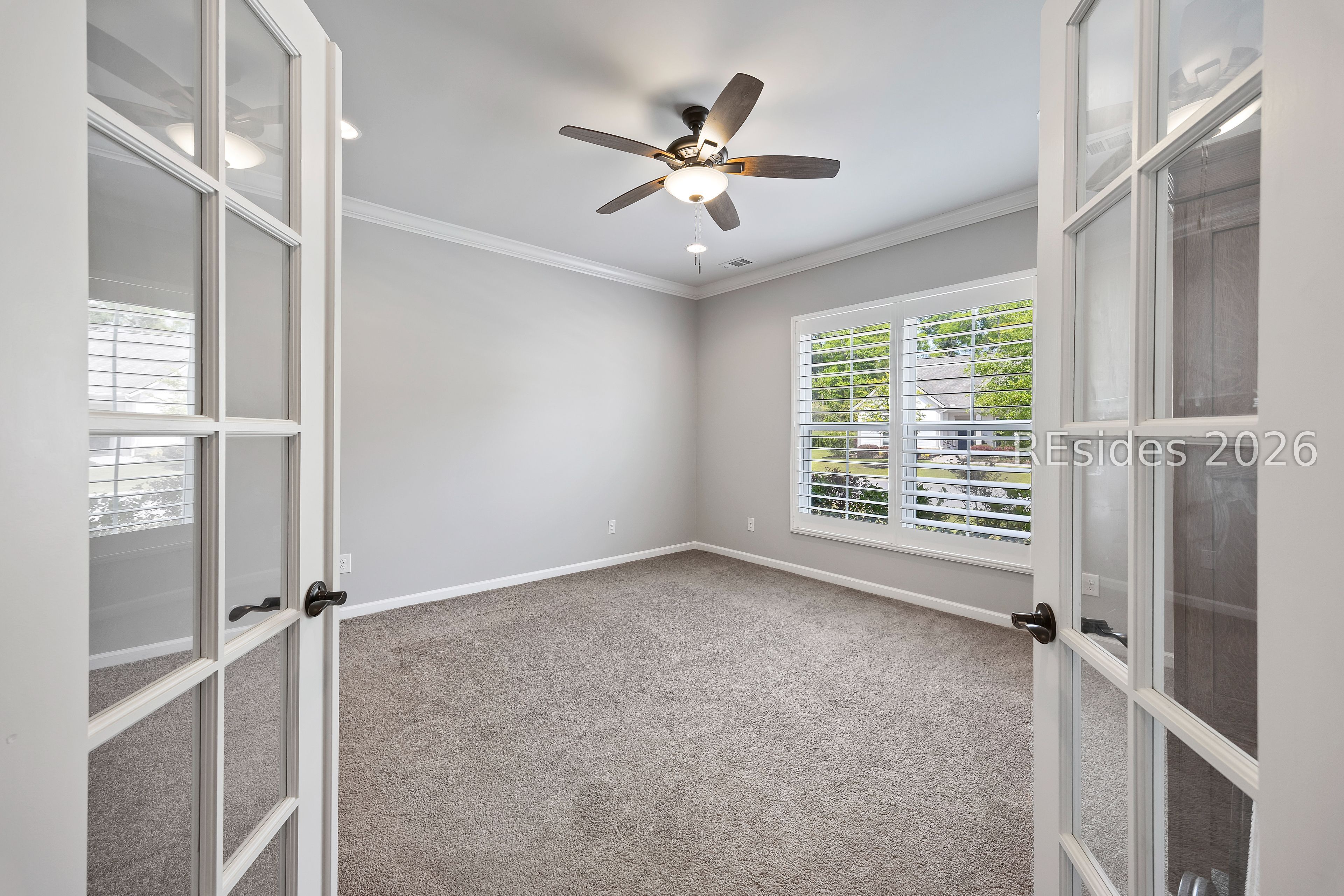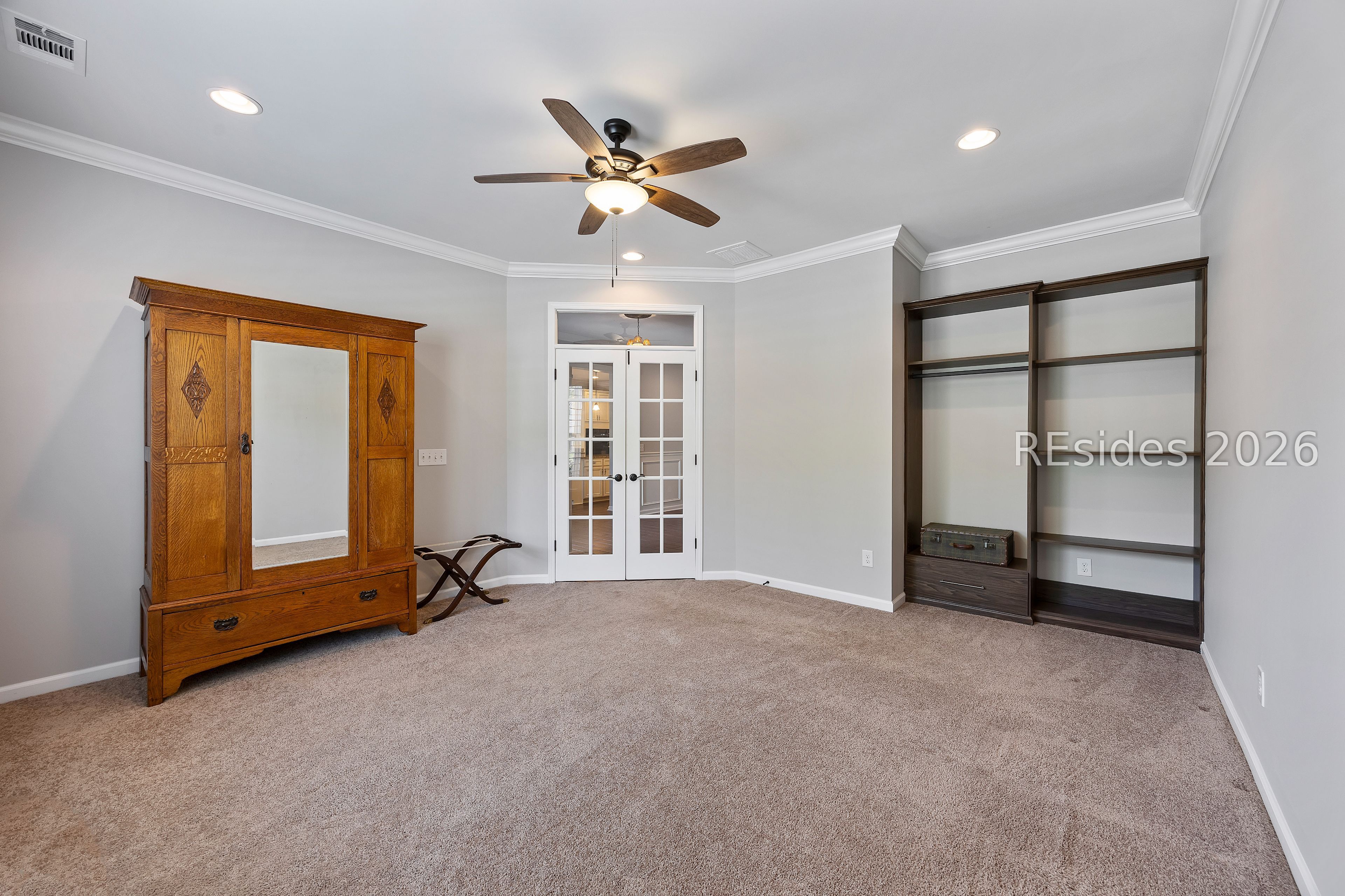 Don't miss out on this Rare South-facing full lagoon view Tangerly Oak model in The Haven at New Riverside, Bluffton's 55+ community. This beautifully upgraded single-story home, has 2,700+ square ft, features 3 bedrooms, 2 and a half baths, smooth ceilings, spacious open floorpan with $75,000 in upgrades. Enjoy a gorgeous lagoon view even from front door. gracious entry provides ample room. Attractive batten/board, Hardie plank ext siding along with brick accents & front porch, new interior and exterior paint, fresh landscaping, plantation shutters throughout, custom crown moulding, attractive wood grain plank tile flooring. A gourmet updated kitchen in this single level home boasts granite ctops, custom walk-in pantry, black Whirlpool appliances, new dishwasher, 6-burner gas cooktop, a porcelain farmhouse sink w/water view from kit. The kit has large island with seating, breakfast bar and upgraded cabinetry w/pull out shelving and soft close drawers/doors. This open floorplan of one level living also features a bright, light filled Sun Room/Carolina Room with tri-fold sliding doors opening to a screen lanai/screen porch & separate patio overlooking lagoon.The trifold sliding doors are great for entertaining making the Screen Porch & Sun Room seem like one open sun drenched space to enjoy your Outdoor Retreat. The primary suite offers a beautiful lagoon view, tray ceiling, luxurious tiled rain shower, custom walk-in closet w/direct pass-thru to laundry rm for convenience. The 4' extended garage w/added storage for a golf cart or workshop, includes a walk-up attic and Lifestyle garage screen. Off the garage is a spacious drop zone for convenience and storage. This is the perfect gated community for the active adult lifestyle and popular retirement community, The Haven at New Riverside allows you to enjoy resort-style amenities including a Jr. Olympic pool, jacuzzi, newly remodeled Club House, fitness center, 4 Har-tru lighted tennis courts, Pickleball, Dog park, miles of walking & biking trails, garden plots, playground and social clubs. Located near Old Town Bluffton, Hilton Head Island, Savannah, Beaufort, shopping, dining. Added features: whole home security system including smoke detection/alarms keeping your home safe while you are away; sound system wiring; drip watering system on most landscaping; and Ring doorbell w/additional camera keeps you informed of visitors & when important deliveries arrive. Low HOA & property taxes!! Don't miss out!